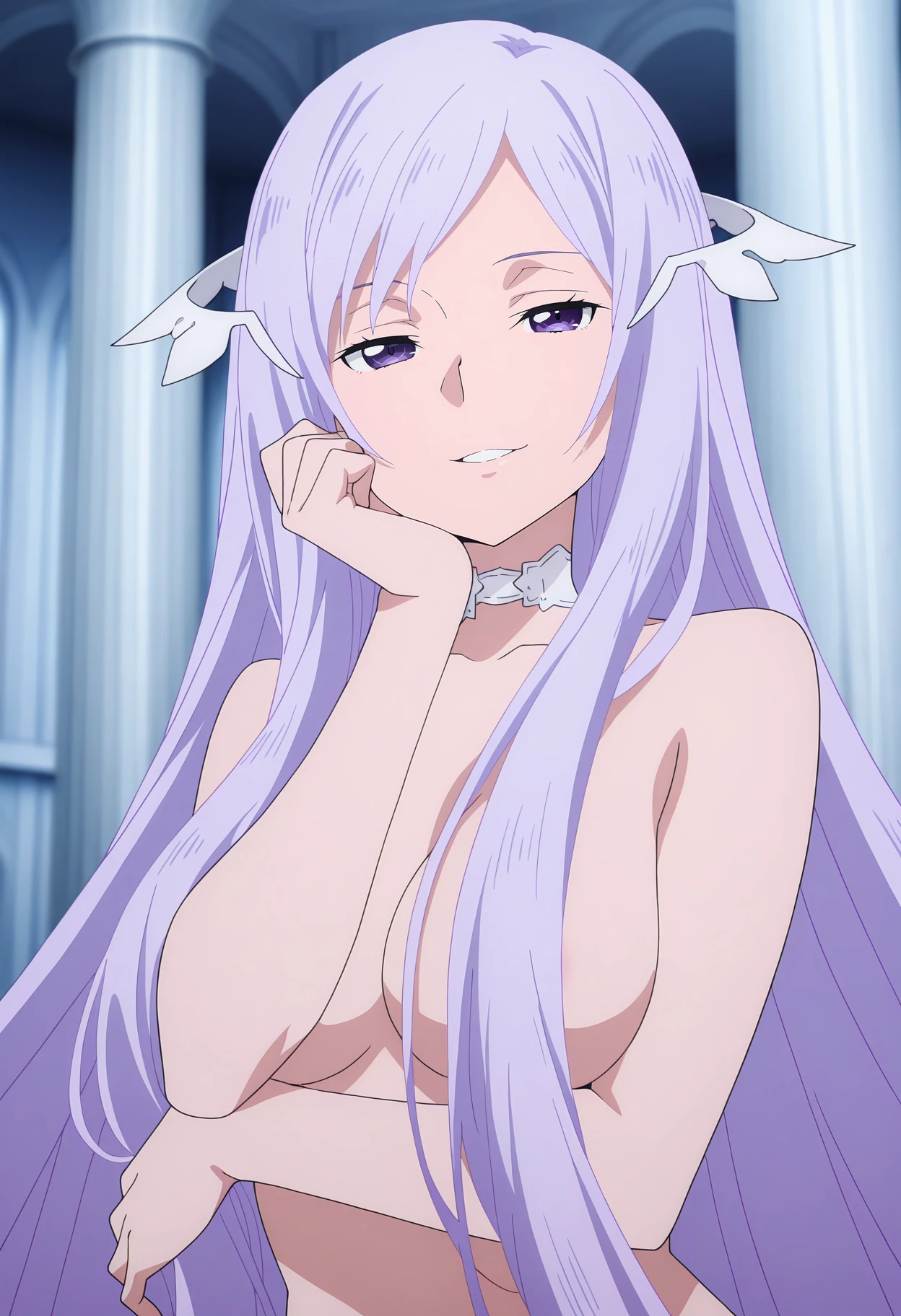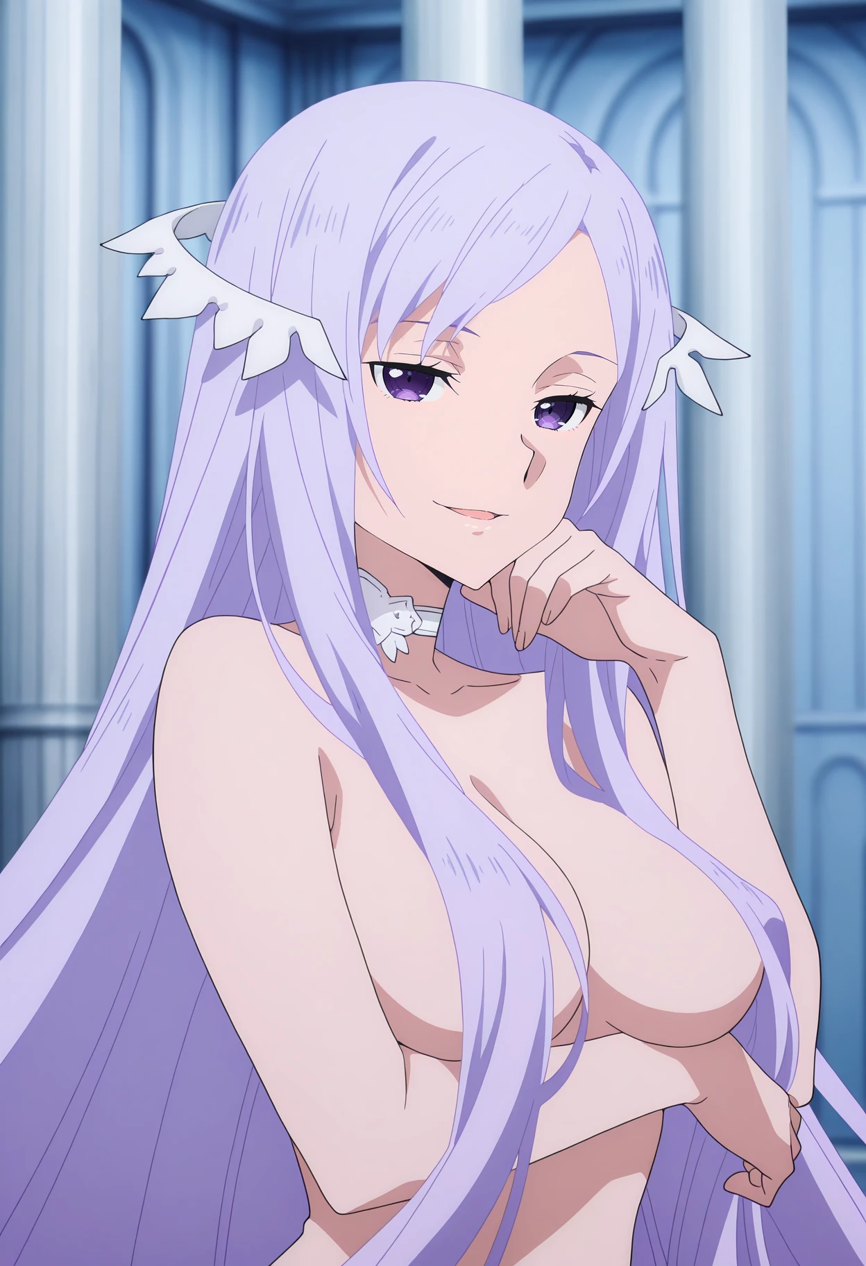 absurdly long hair, light purple hair, purple eyes, hair ornament