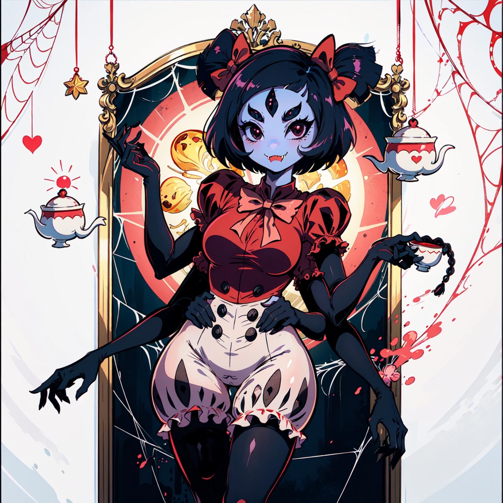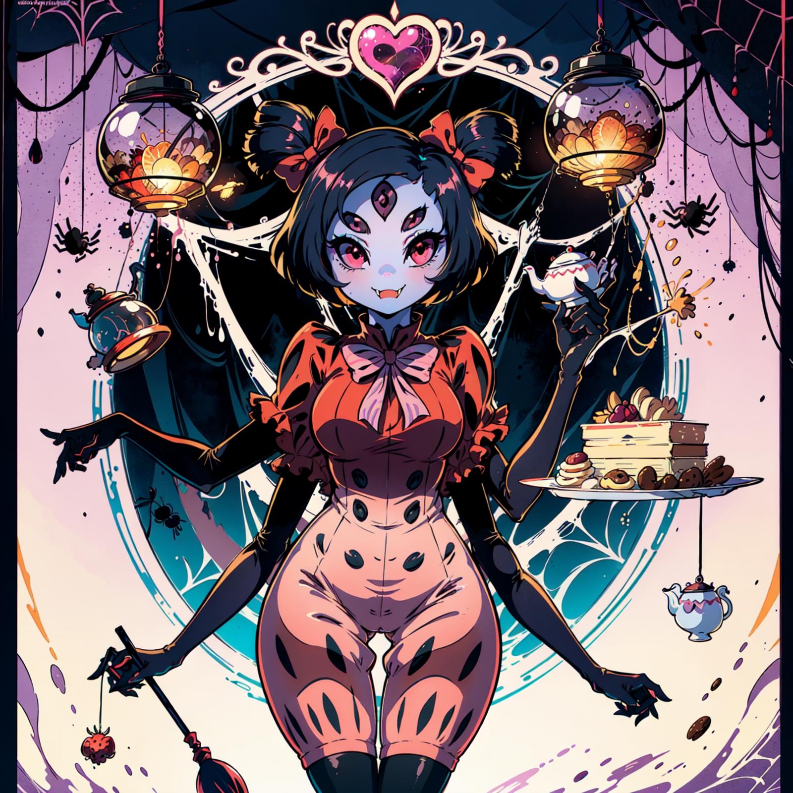 The good: a relatively sizeable dataset lora that can produce okayish images of Muffet. You can use the activation word "muffetwear" to get a more accurate representation of her usual garb.