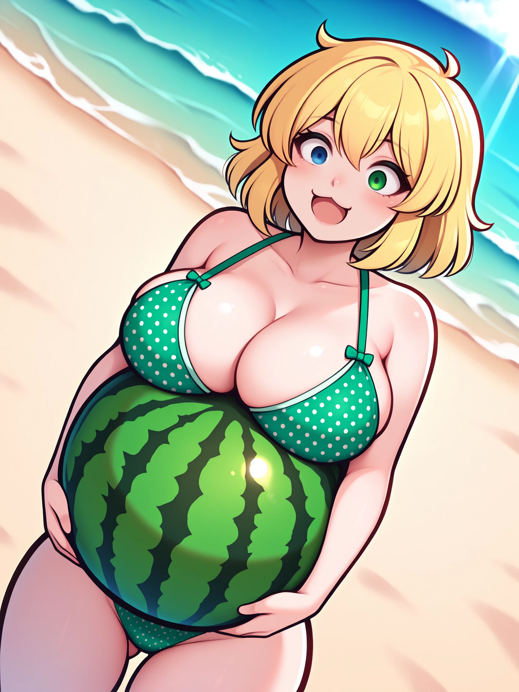 Trigger Words for her swimsuit are "Ryona_swim, green swimsuit, polka dot swimsuit, green bra, polka dot bra, green panties, polka dot panties".