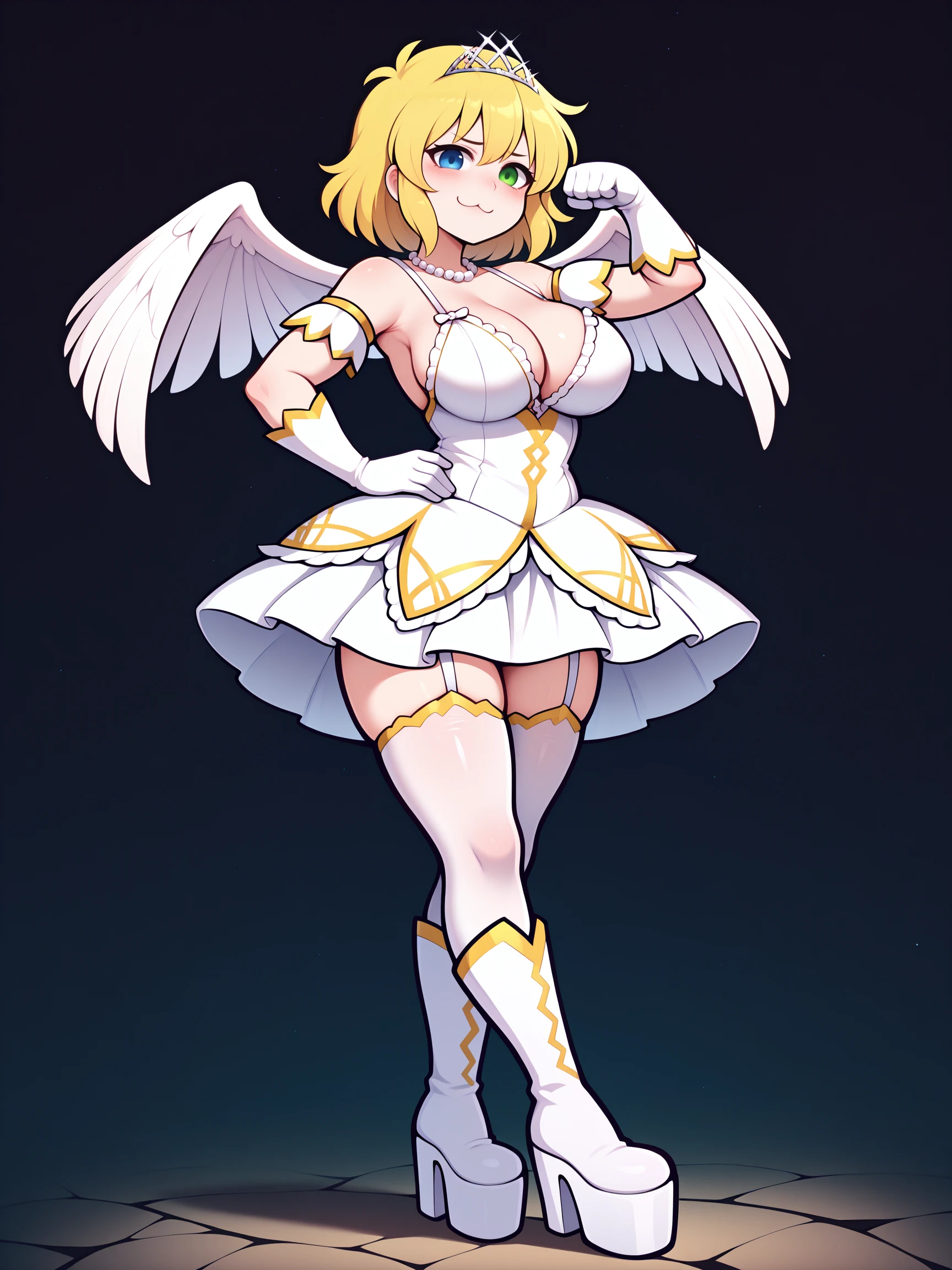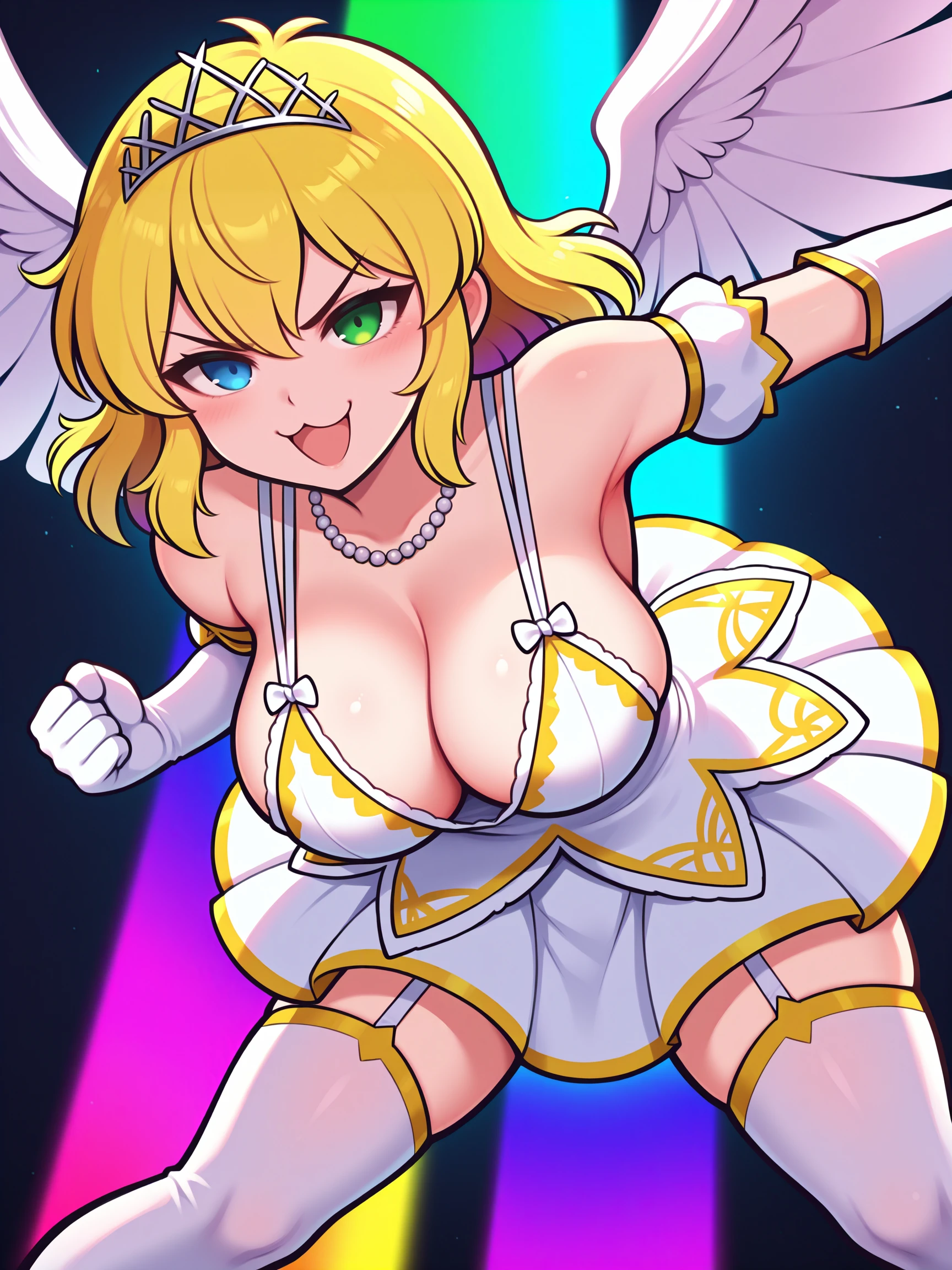 Trigger Words for shinobi outfit is "shinobi suit, wings, white thighhighs, cleavage, white dress, white gloves, tiara".