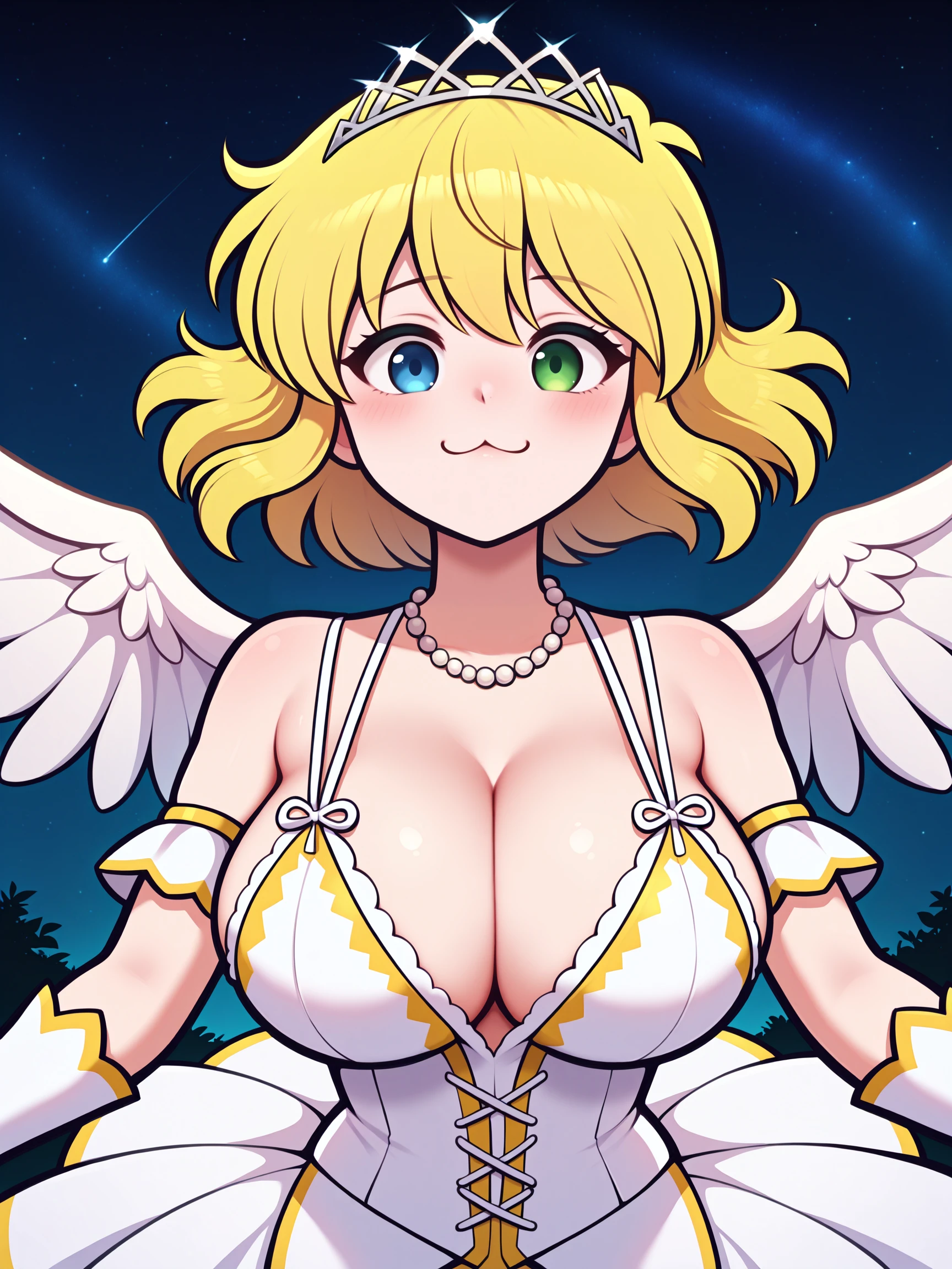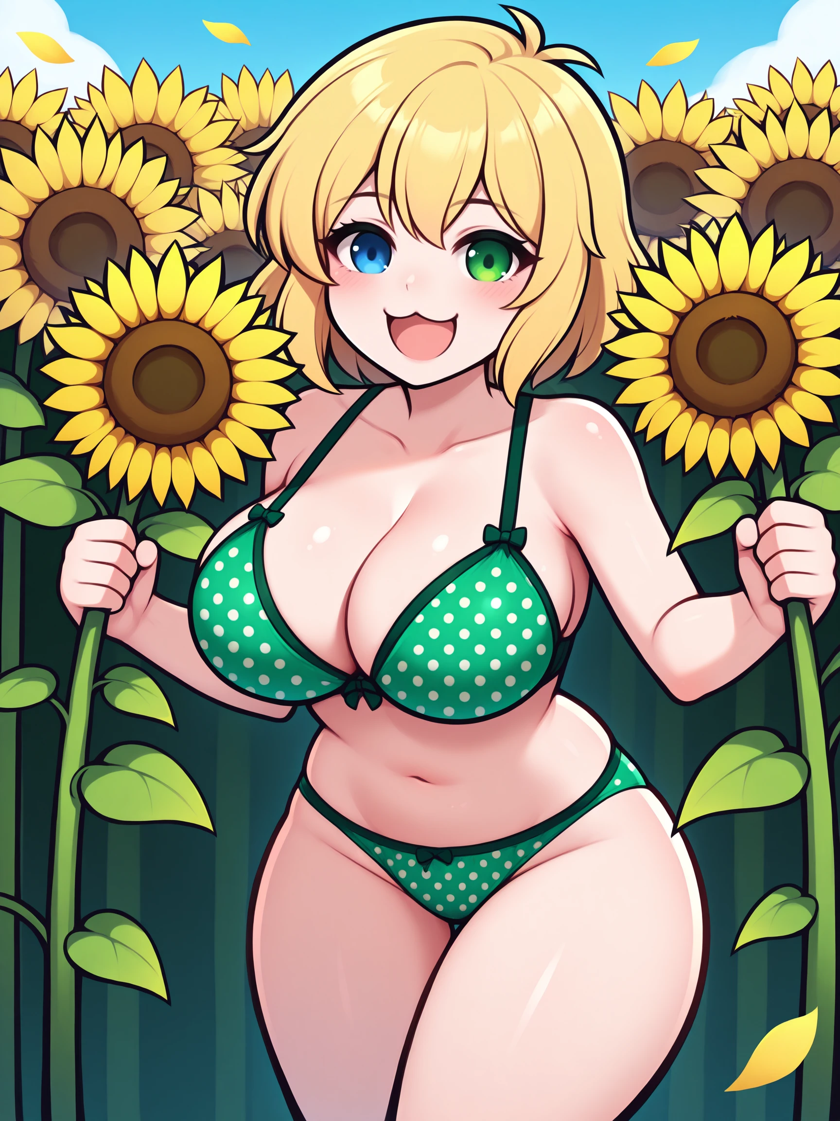 Trigger Word for the LoRA is "Ryona_XL, blonde, short hair, heterochromia, green eyes, blue eyes, large breasts, :3,".