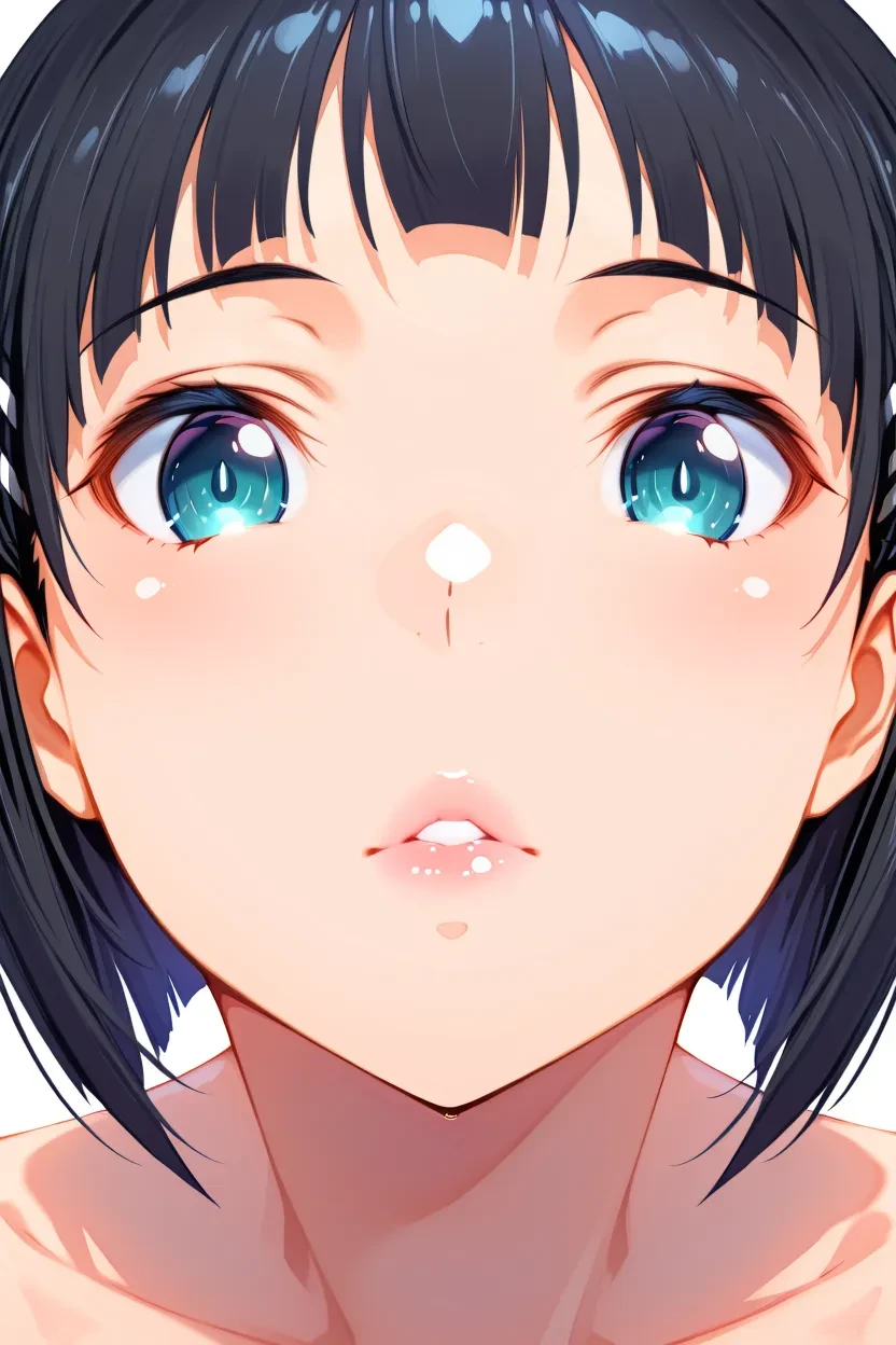 1girl, Suguha Kirigaya (Sword Art Online), blue_eyes, black_hair, short_hair, lips, thick lips, glossy lips, massive_breasts, Sword Art Online_art_style, HD, hi-res, 4k, superb quality