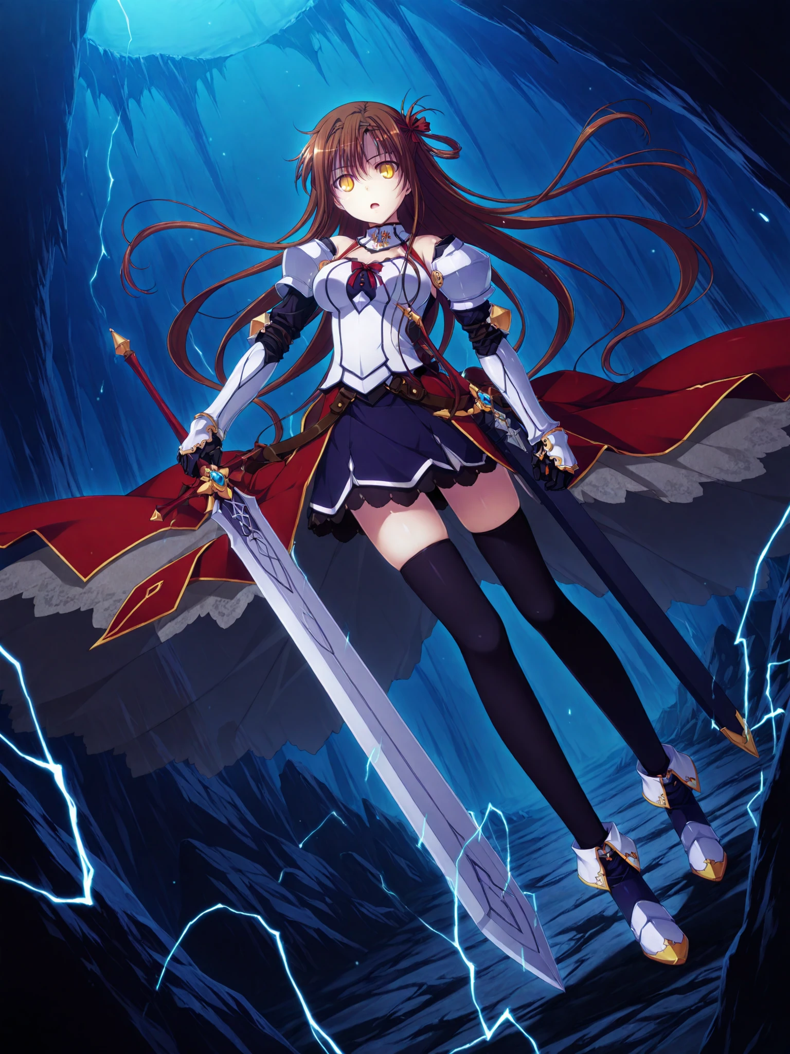 <lora:Reonav4:0.9>,lace,1girl,reona_ilv1,(black thighhighs:0.9),(zettai ryouiki:0.9),(skindentation:0.9),(bare shoulders:0.7),skinny,gloves,(white_pauldrons:0.9),(belt buckle:0.9),(gauntlets:0.9),skirt,see-through,dress,long_red_overskirt,(white_ankle_boots:0.7),(blue_ankle_boots:0.7),(pointy footwear:0.7),yellow sole,white_top_dress,