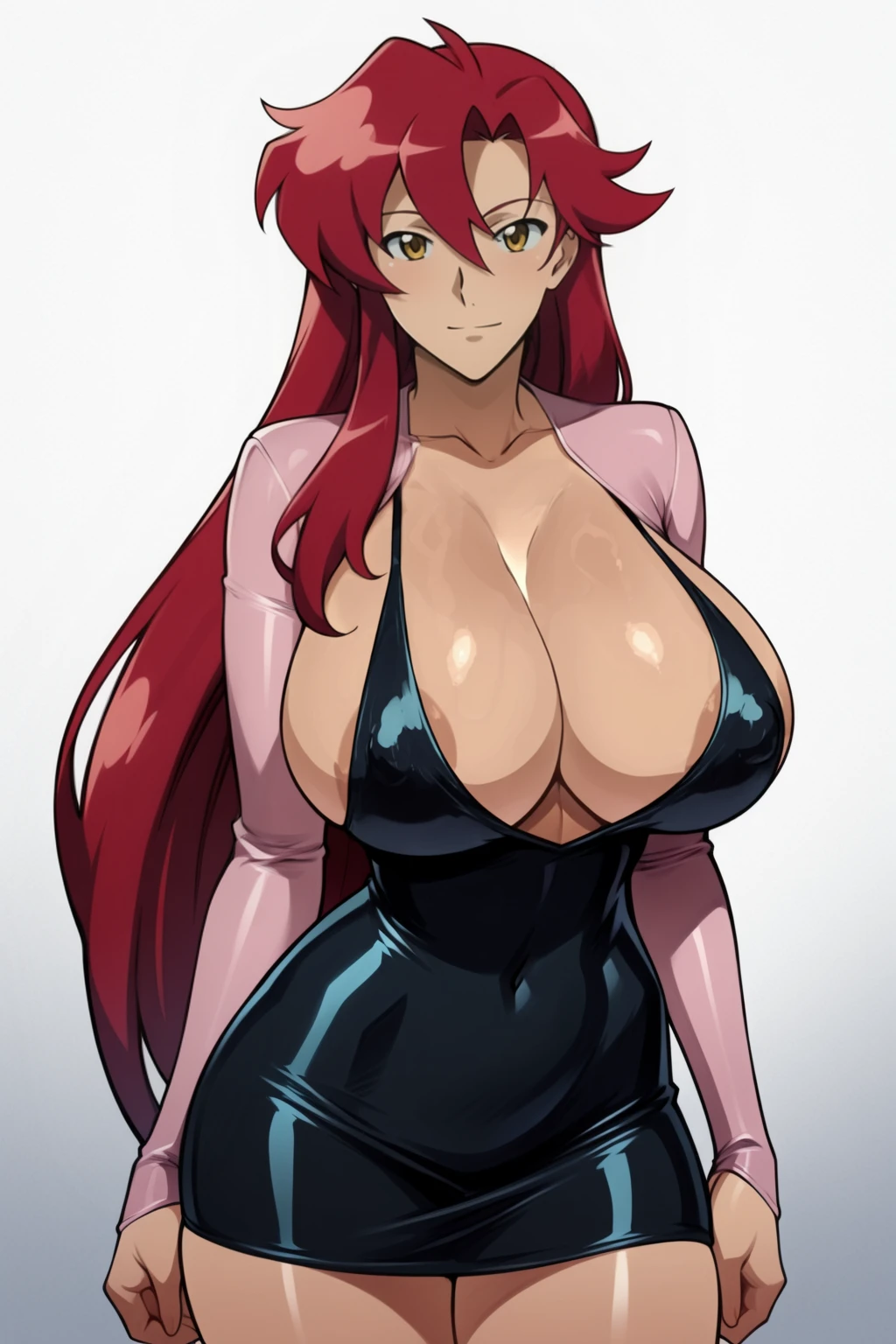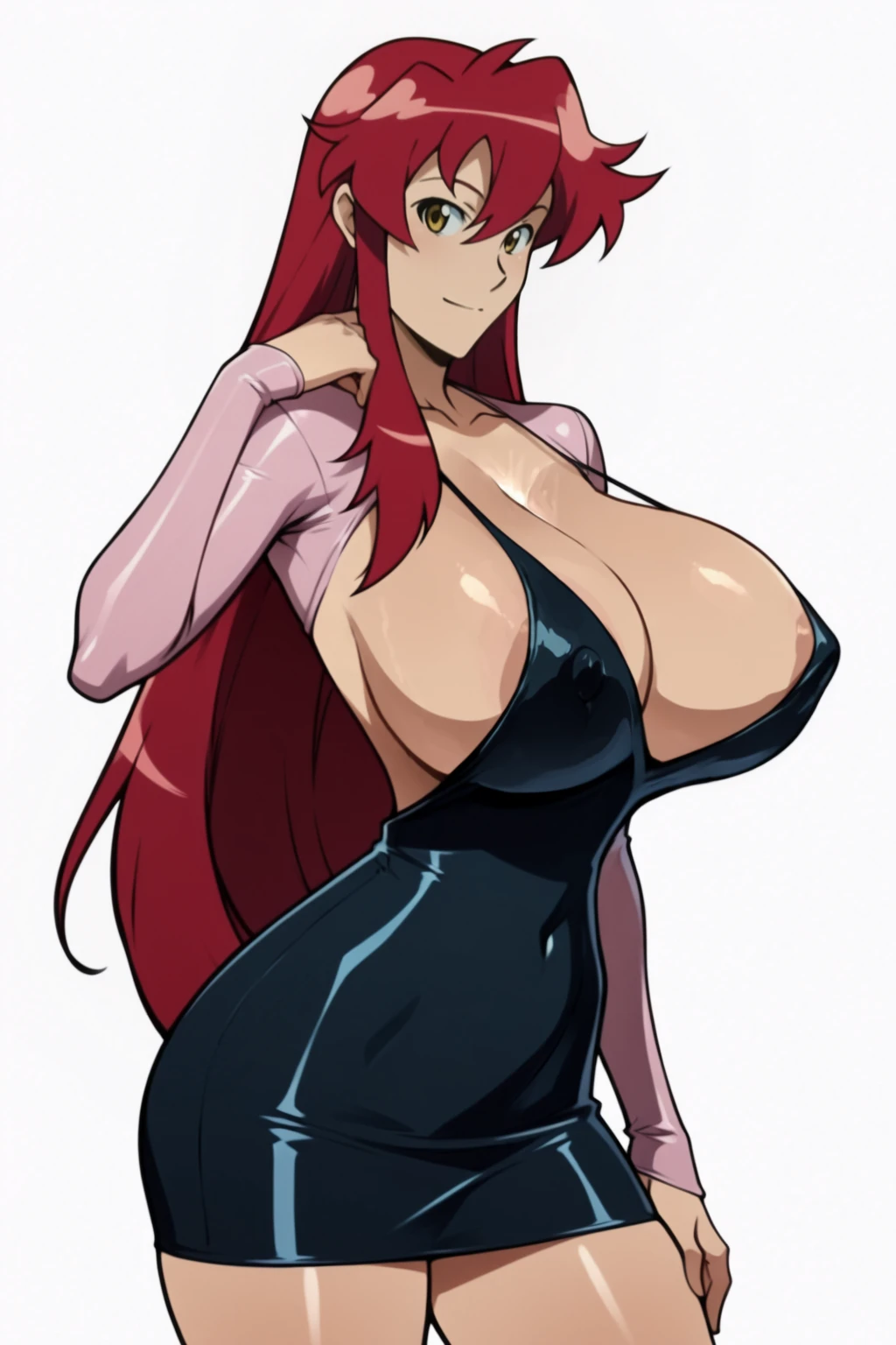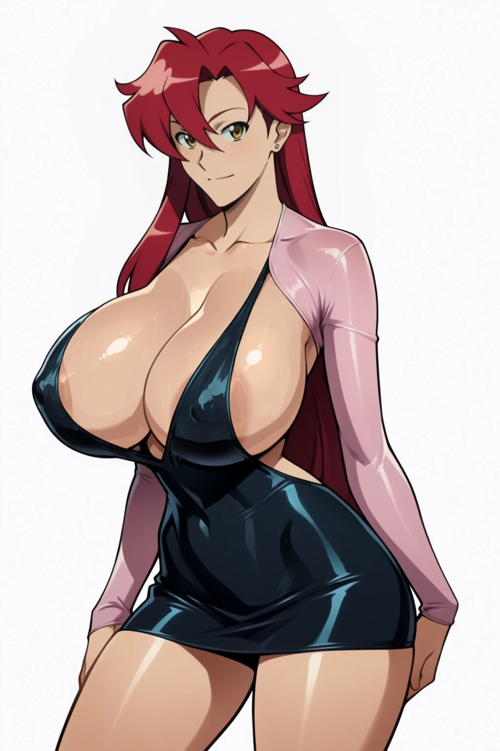SayakoDressV1, bolero, see-through bolero, bolero print, cropped jacket, pink jacket, see-through jacket, print jacket, breasts, large breasts, sideboob, breasts apart, no bra, black dress, shiny dress, short dress, dress, halter dress, skin tight, long sleeves, plunging neckline