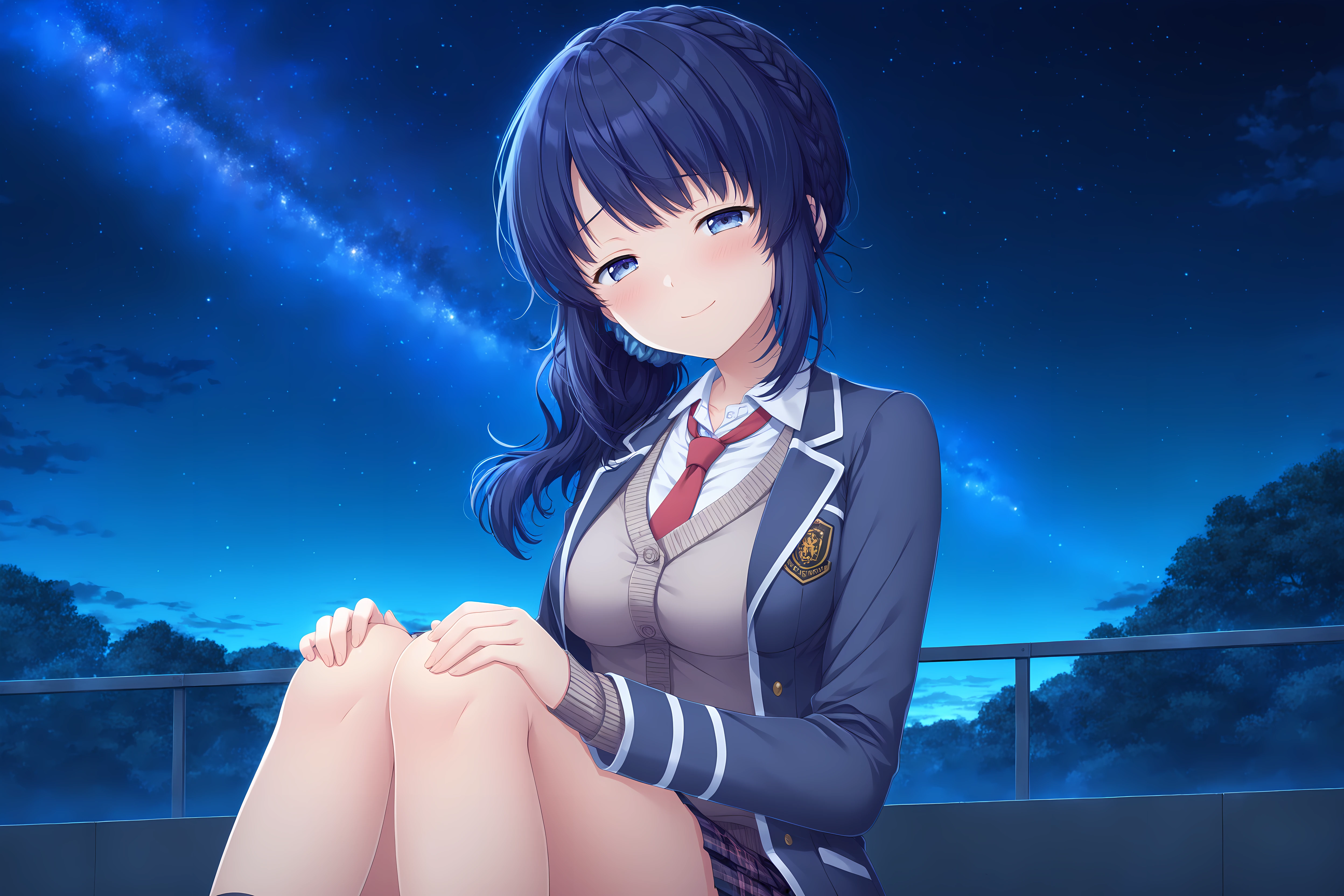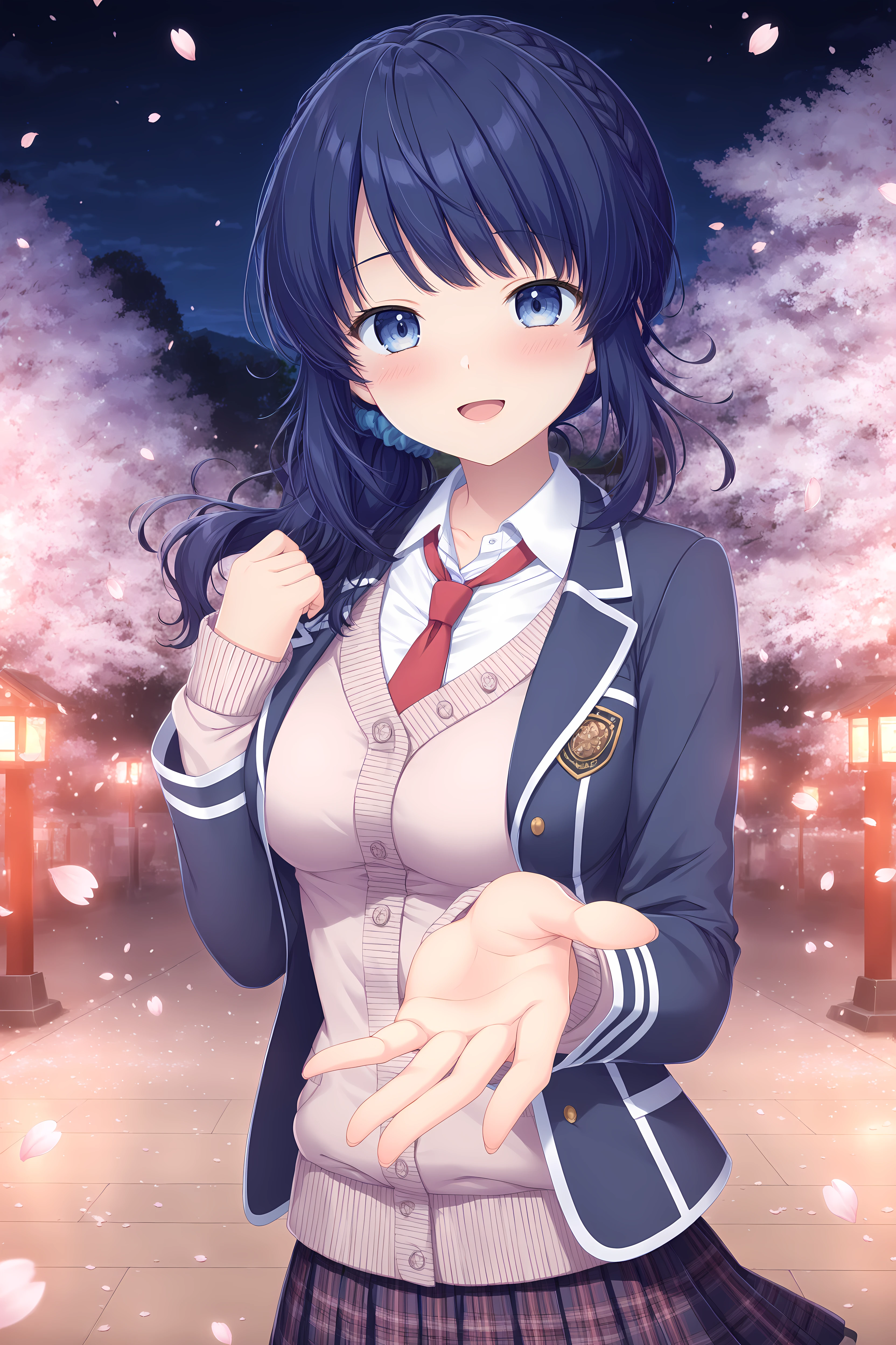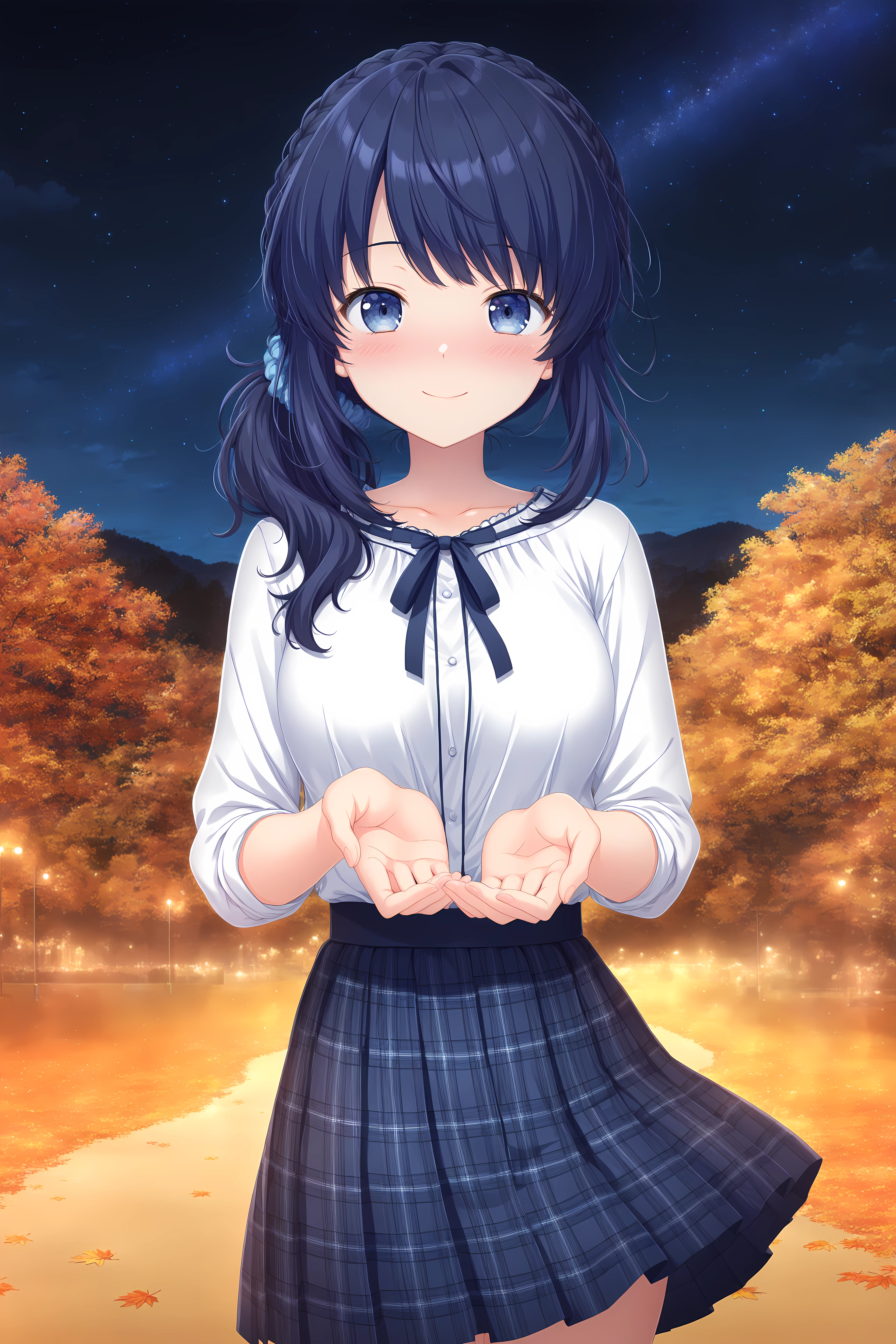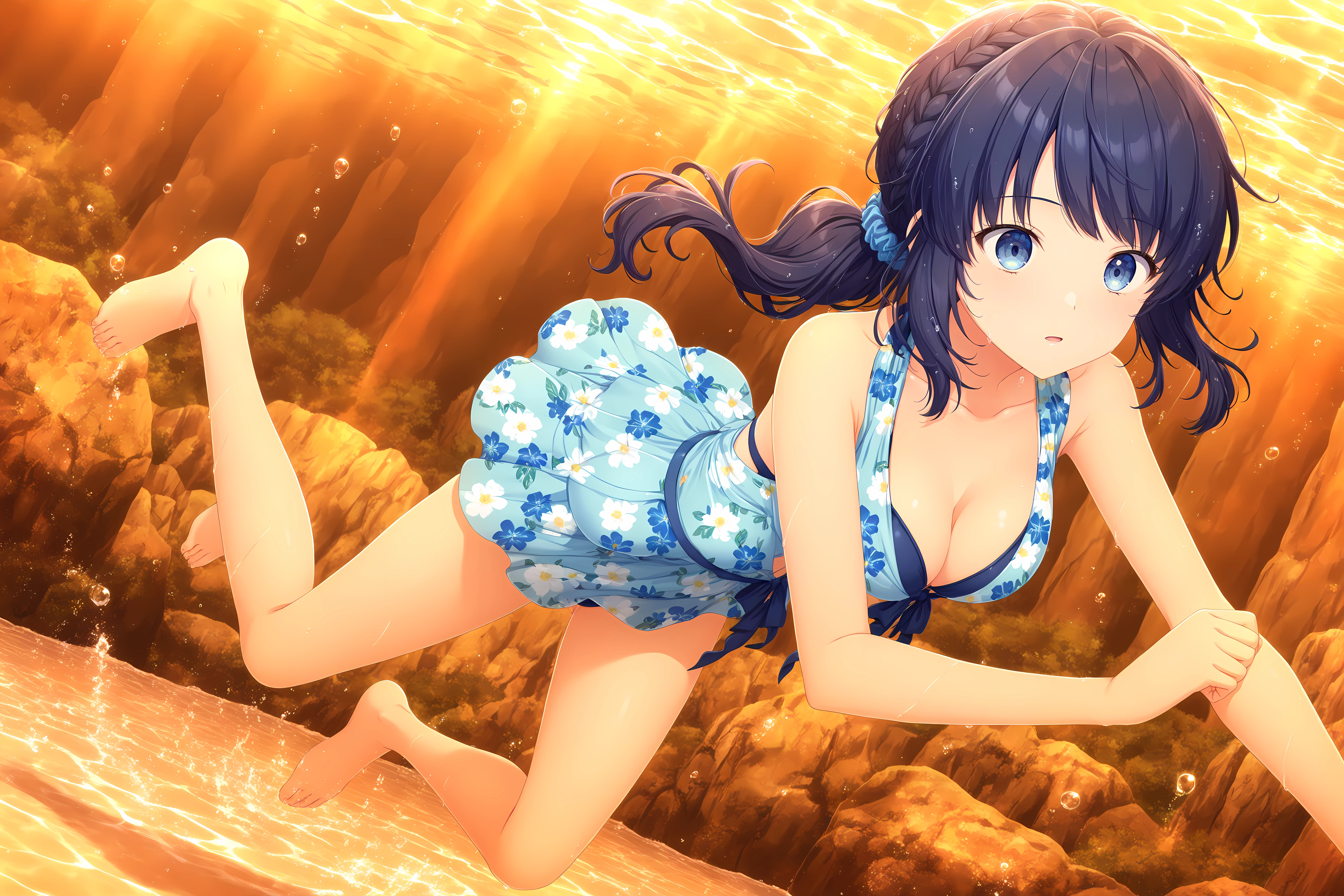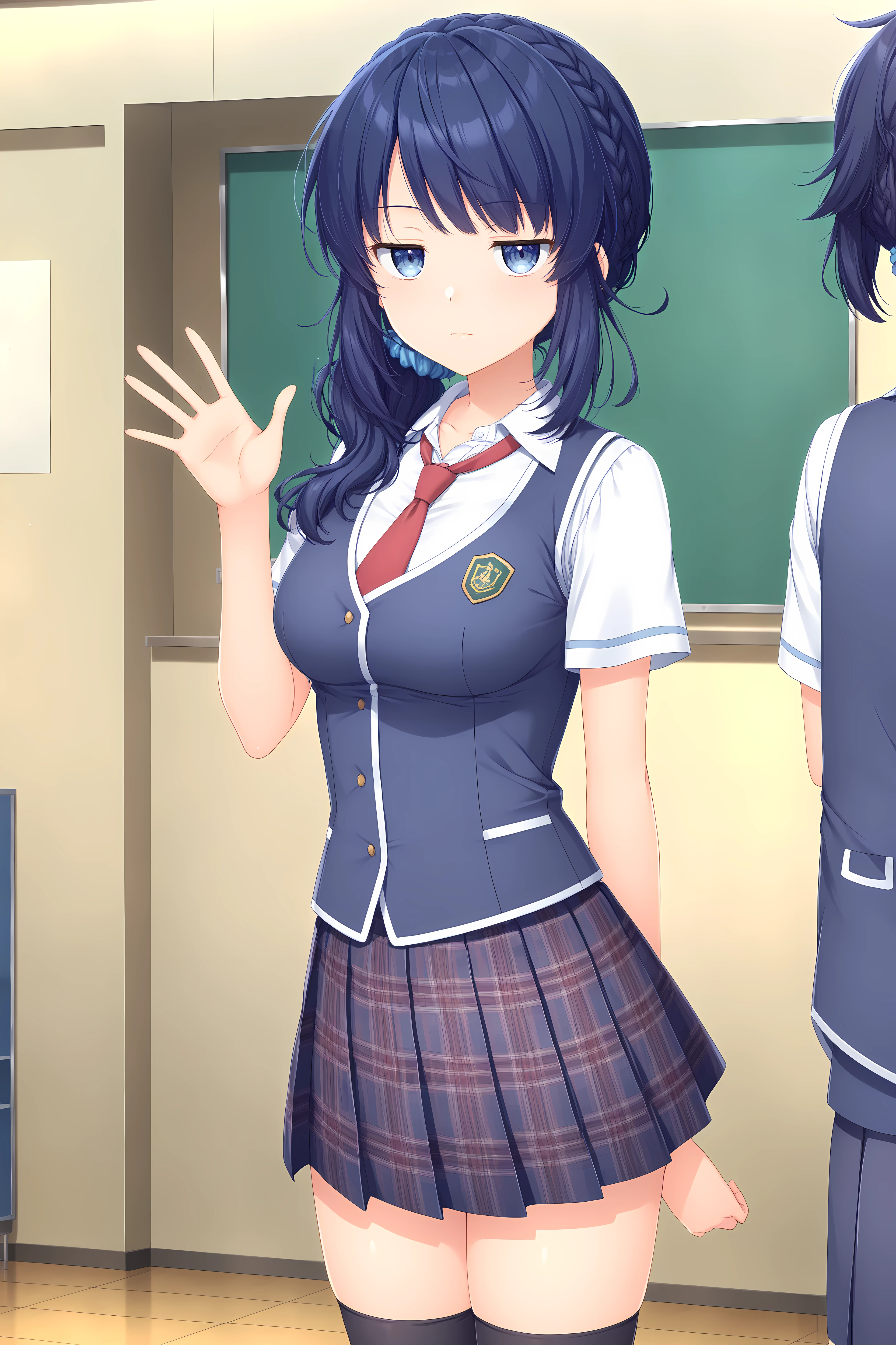 Base: Kiriha,blue hair,braid,blue eyes,long hair,bangs,scrunchie,blue scrunchie,medium breasts,