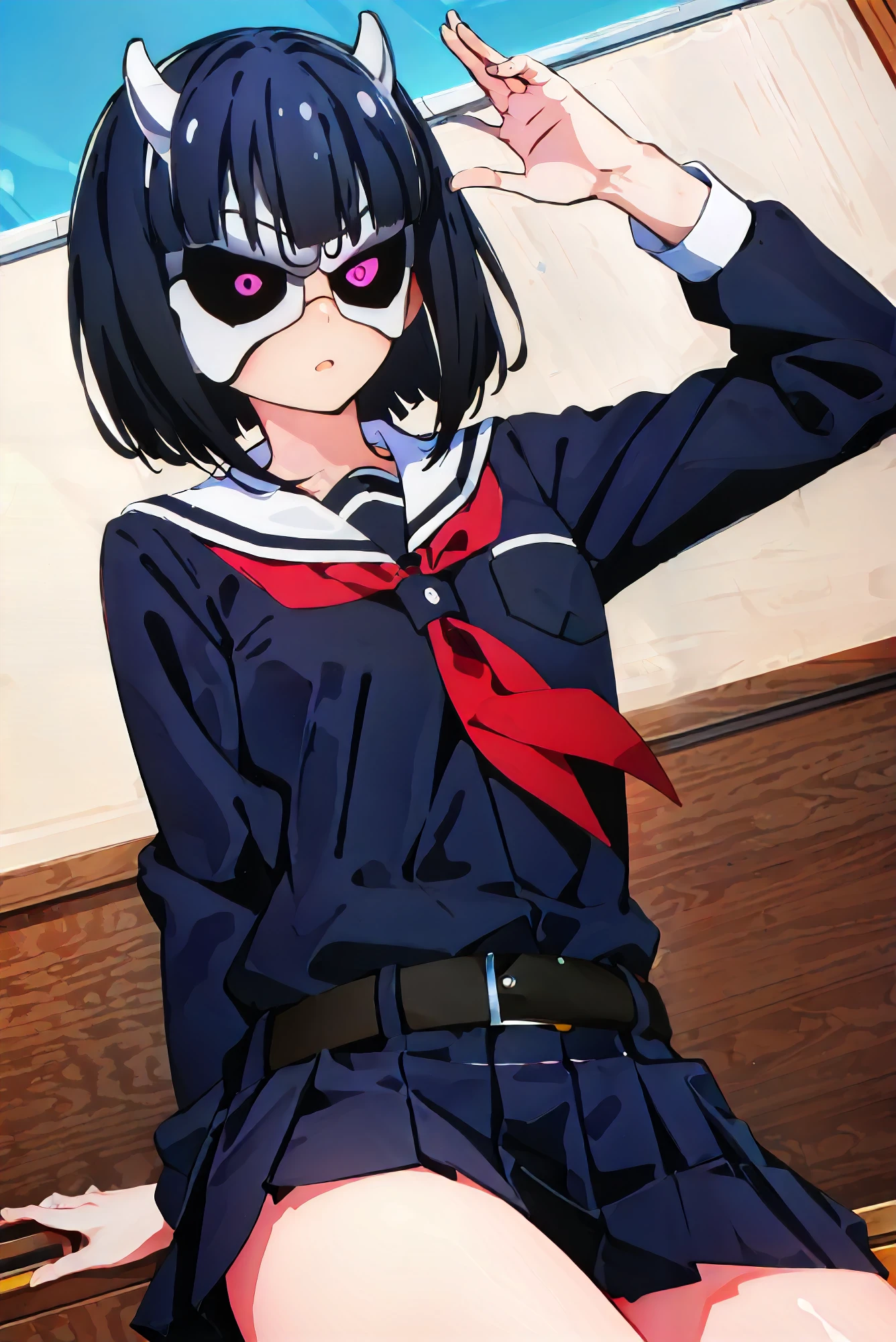 She is compatibel with her standart clothing style and every other one you like and also with her three masks:
