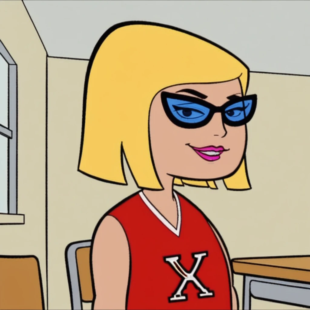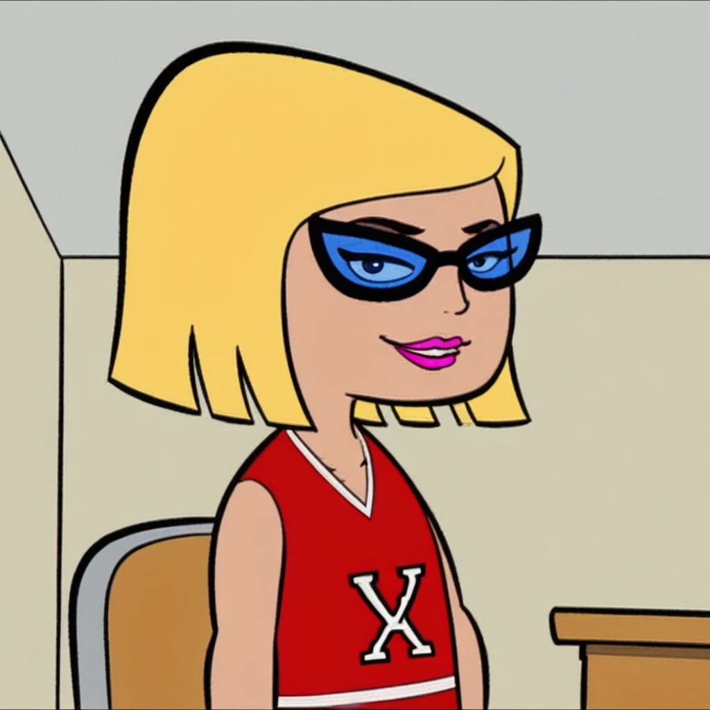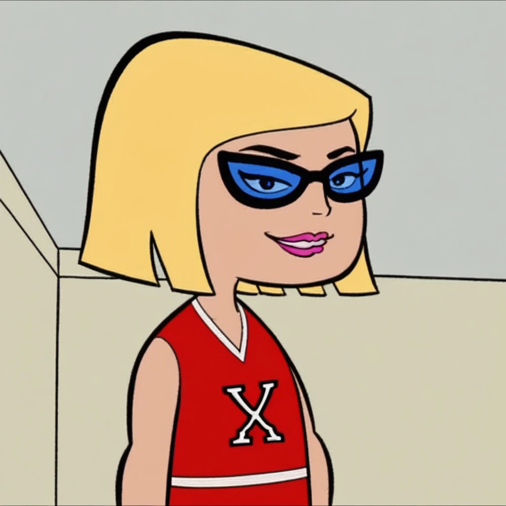 A Lora of Alexis Bixby, A Blonde Short Haired, Bbb Cut Cheerleader, from animated action crime television series "Fillmore" created by Scott M. Gimple for ABC Kids and Toon Disney in the Early 2000's.