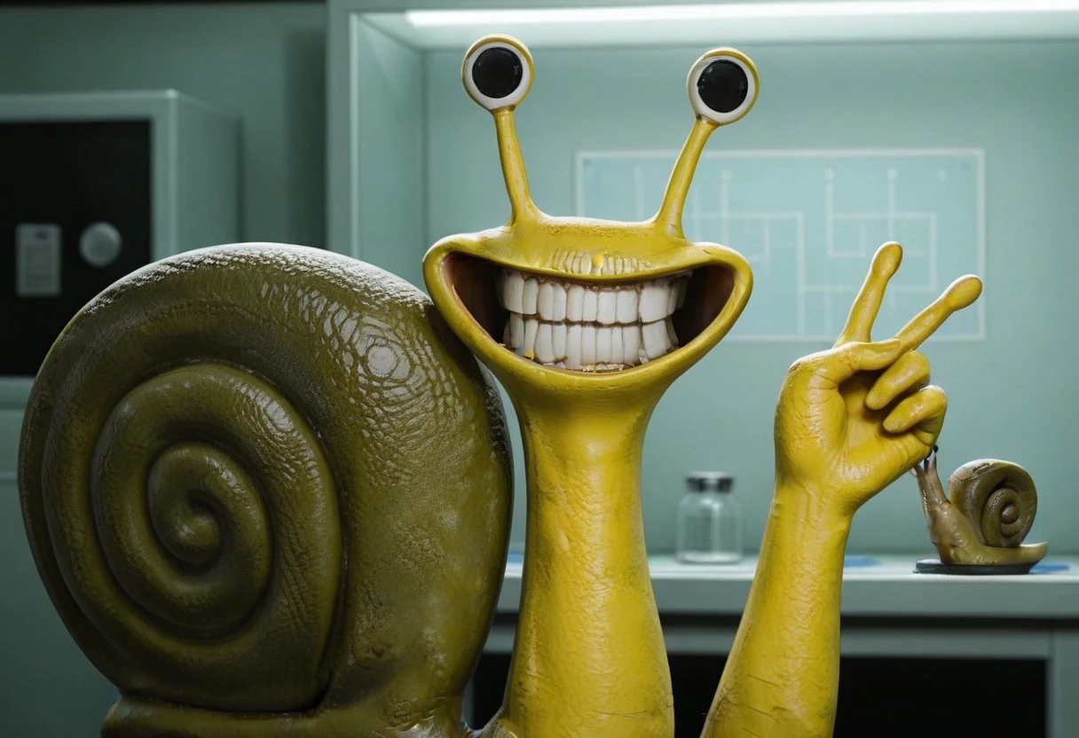 slowsaline, snail, yellow skin, black eyes