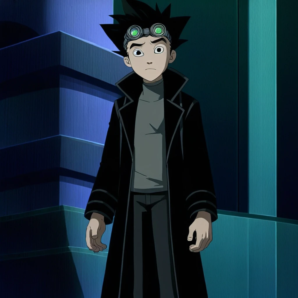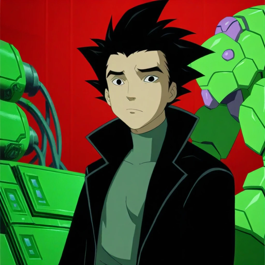 Hiro / toyman, 1boy, male focus, solo, black hair, black eyes, spiked hair,