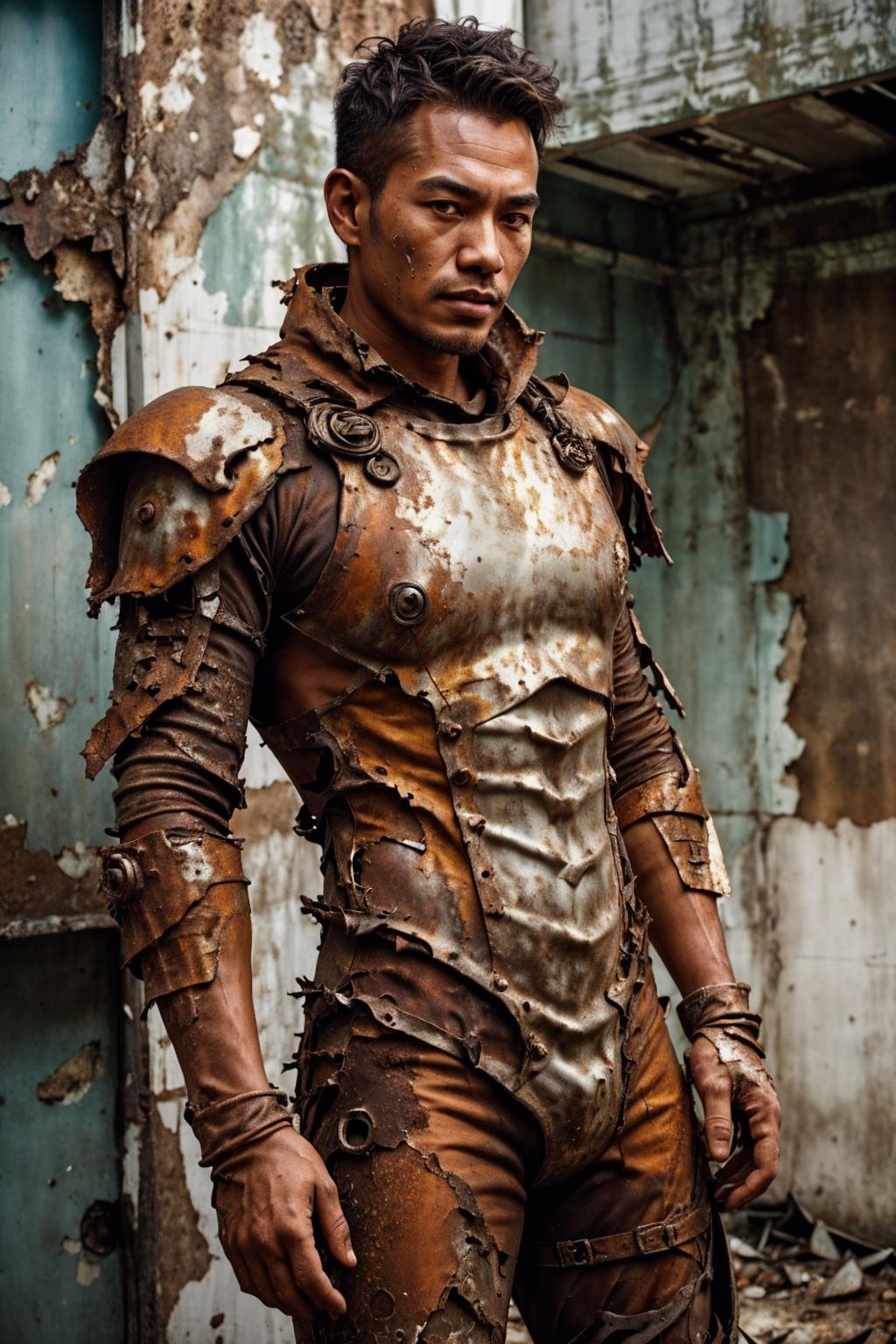 This LORA helps generate rust and corrosion effect on your armor and clothes. It affects both the metal part and the cloth part of the armors. I also recently discovered that some of my 'Armor Morph' LORAs can also affect non-clothing objects like for example coffee machine. So this model can probably do it as well..