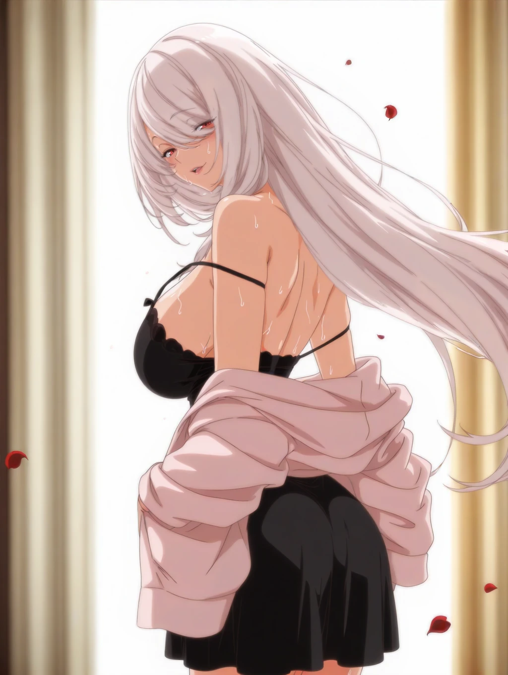 tags: nanli_il, long hair, one eye covered,large breasts, black babydoll,