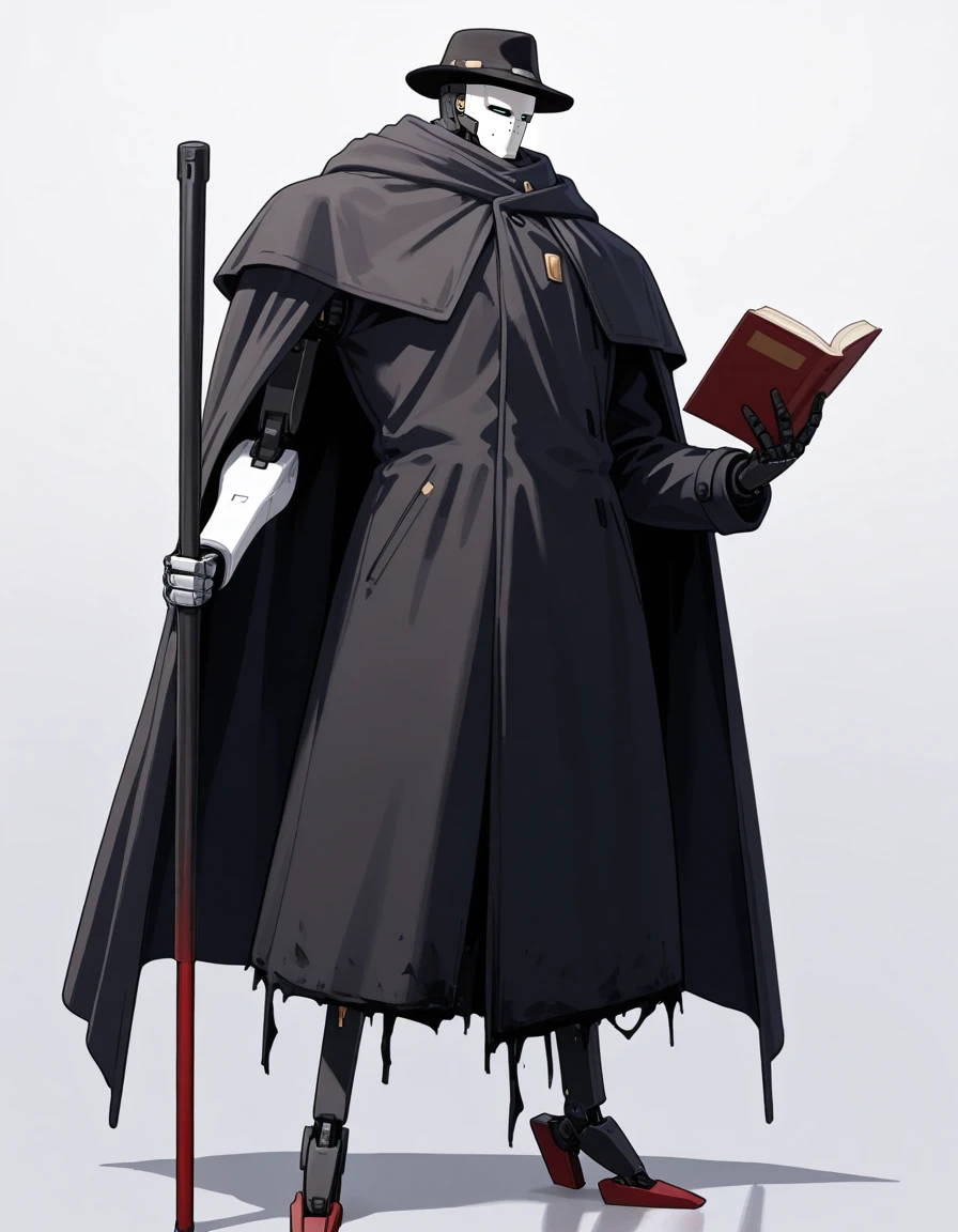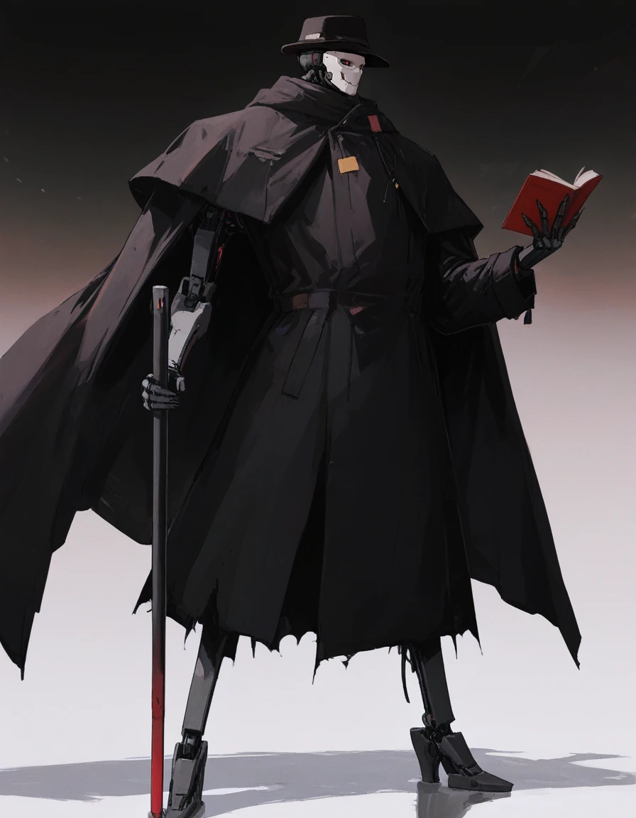 mai_pgr_gabriel,humanoid_robot,black_headwear,fedora,trench_coat,black_coat,black_cape,single_mechanical_arm,claws,holding_caneRecommend preferred Strength: 0.7~1.