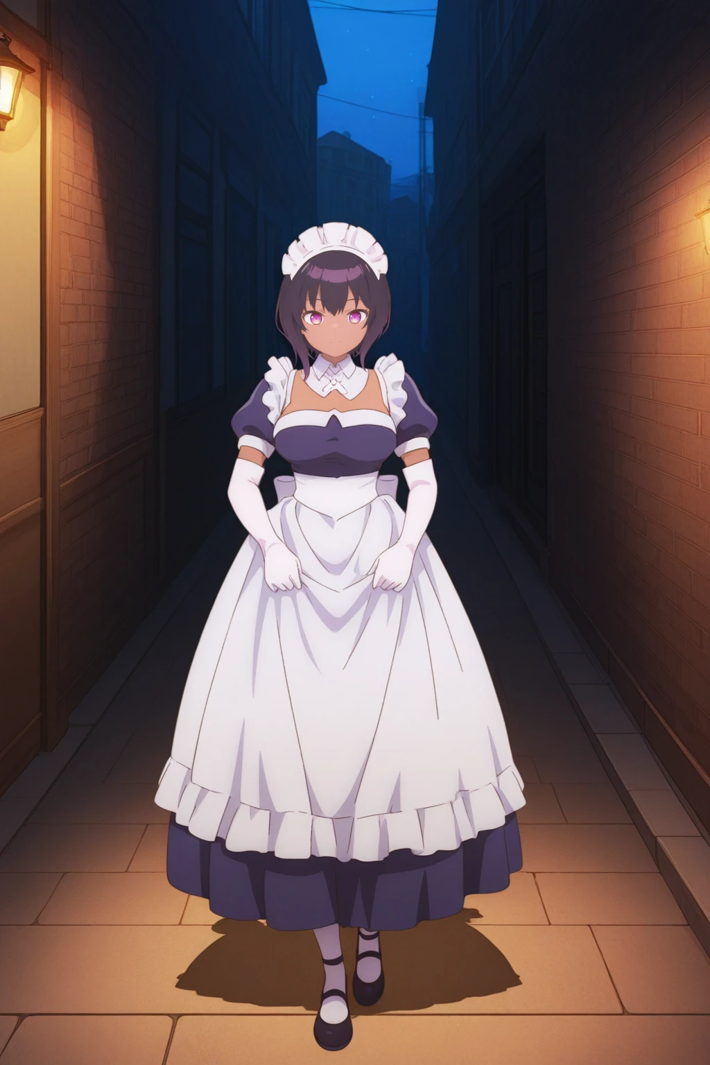 baseoutfit, gloves, elbow gloves, dark skin, maid, puffy short sleeves, mole, short sleeves, puffy sleeves, white gloves, maid headdress,
