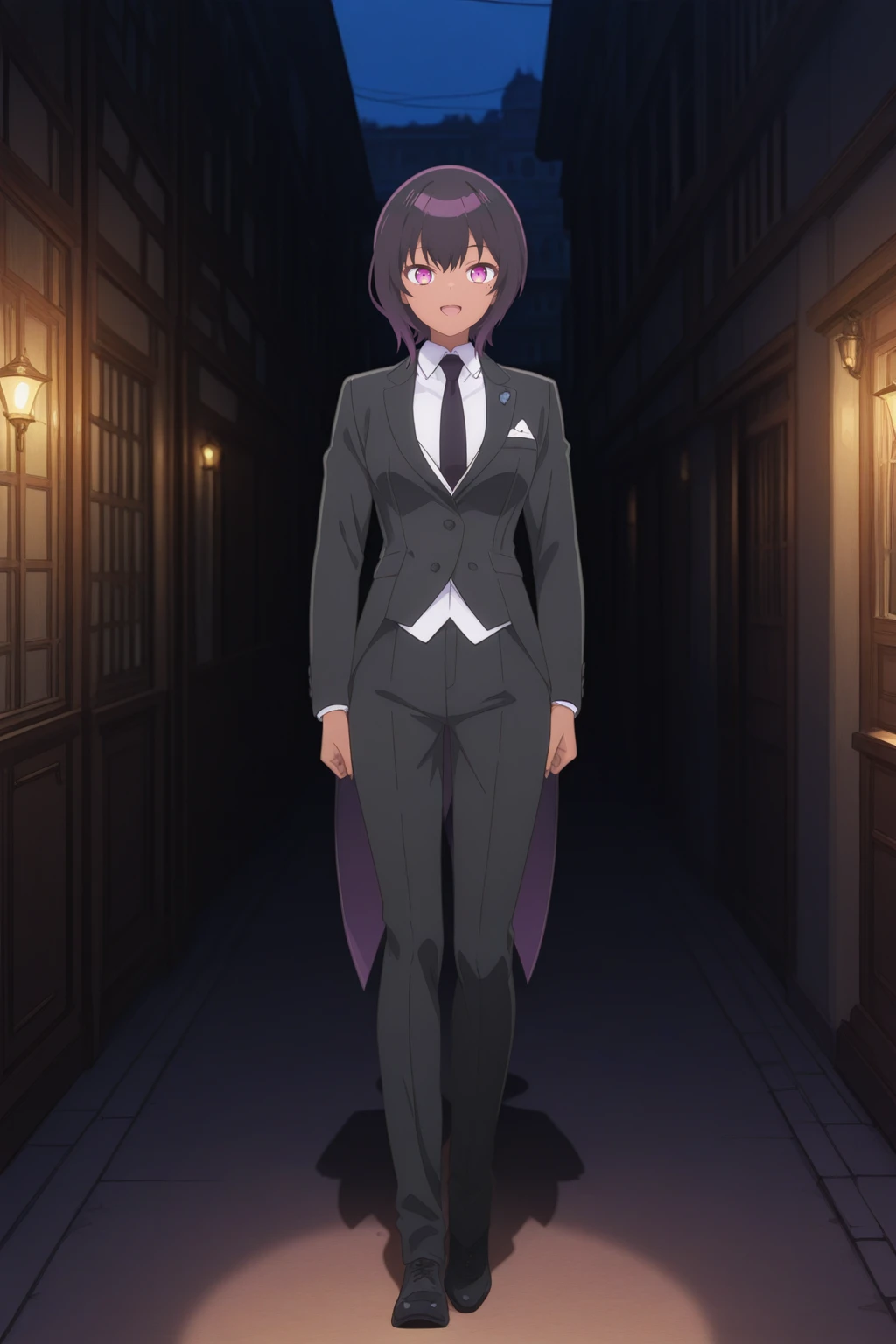 butlersuit, butler, necktie, mole under eye, shirt, mole, black pants, collared shirt,black shoes,
