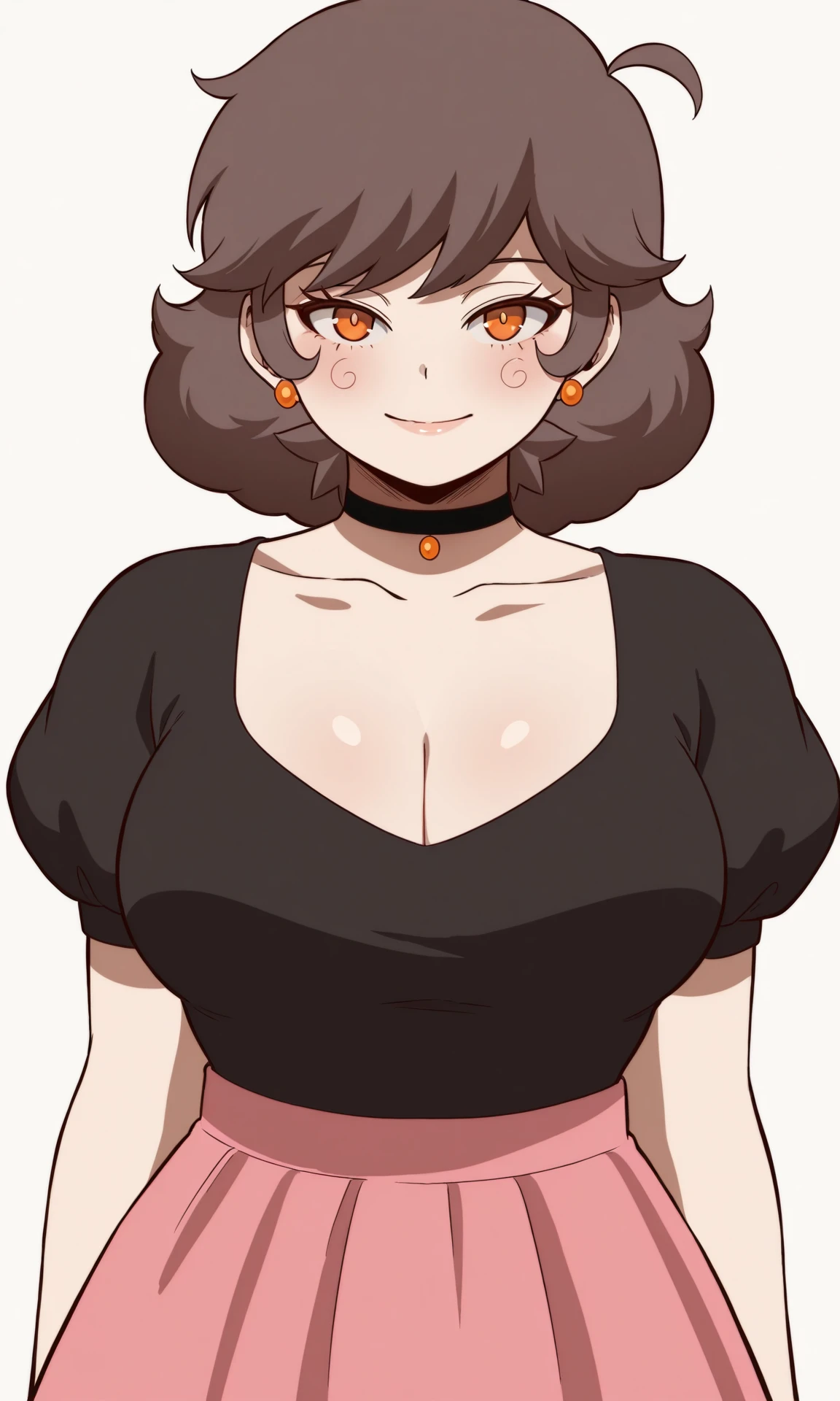 Adult: R1asM, breasts, short hair, large breasts, brown hair, thighs, parted lips, yellow eyes, orange eyes