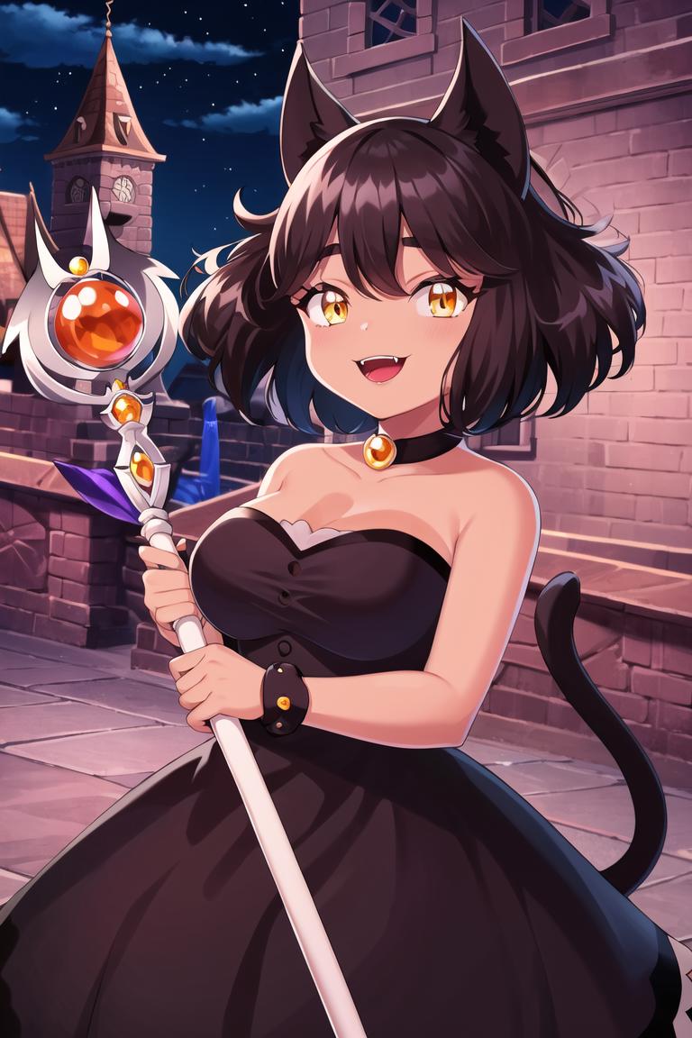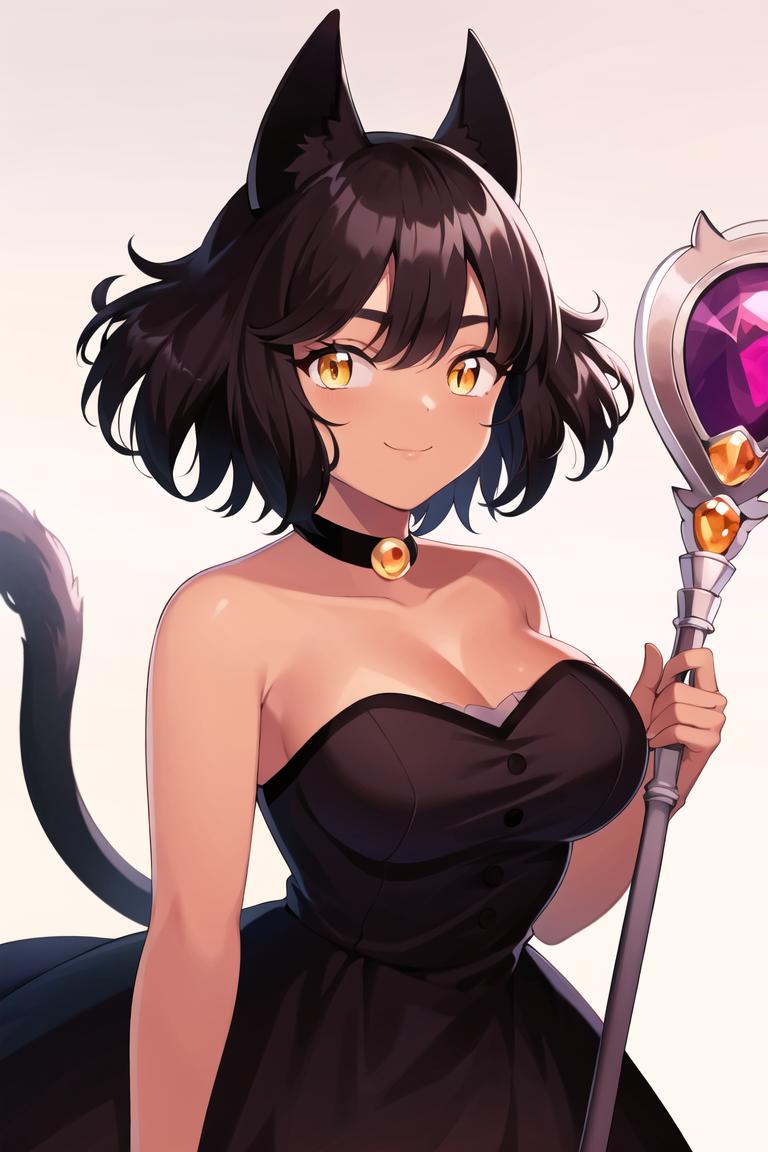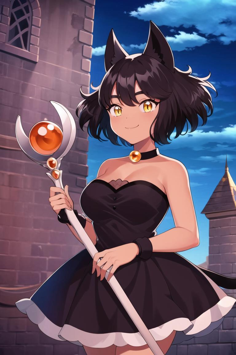 Should work with LoRA weight 1 - 0.8, Olive should be the trigger word but can also work without it, add cat girl to help with her cat ears and tail, also use tan and dark-skin to make her skin darker. Use dress (olive) and black dress to get her outfit from the show.