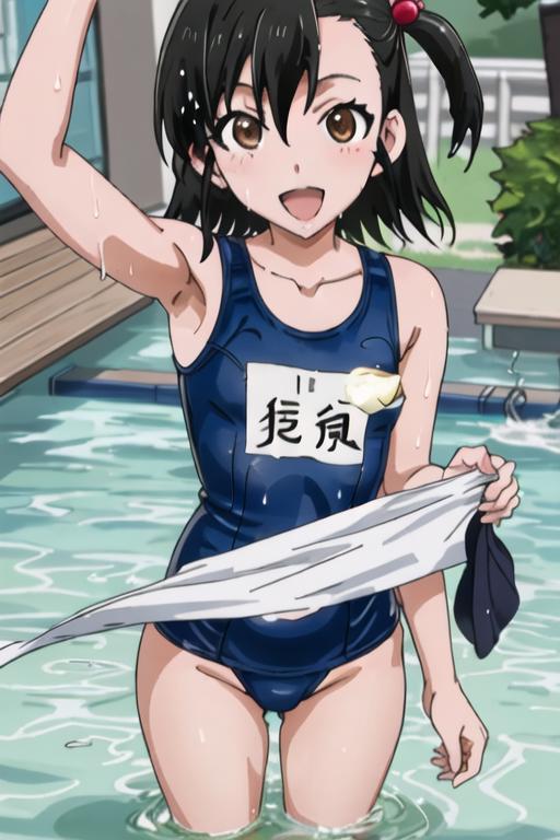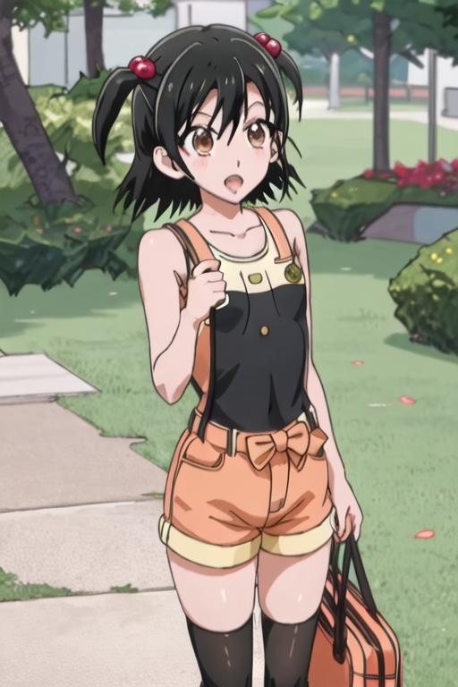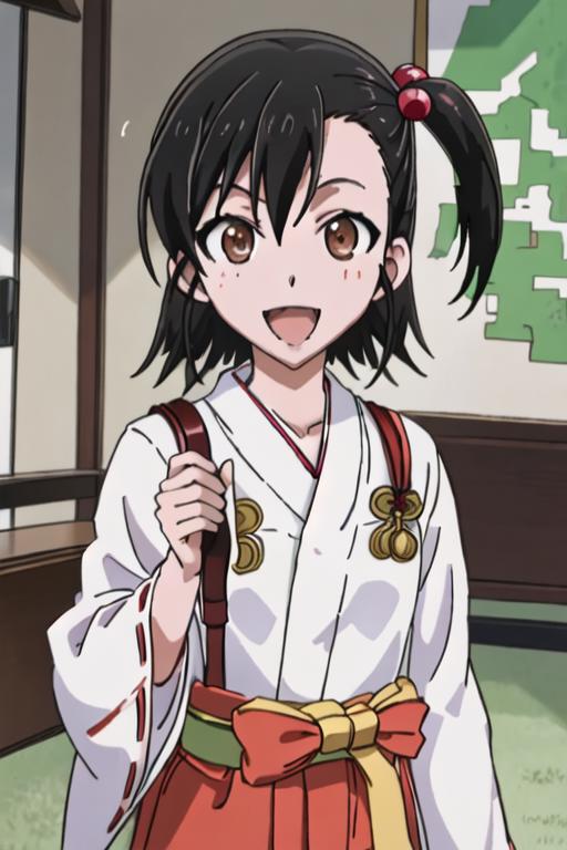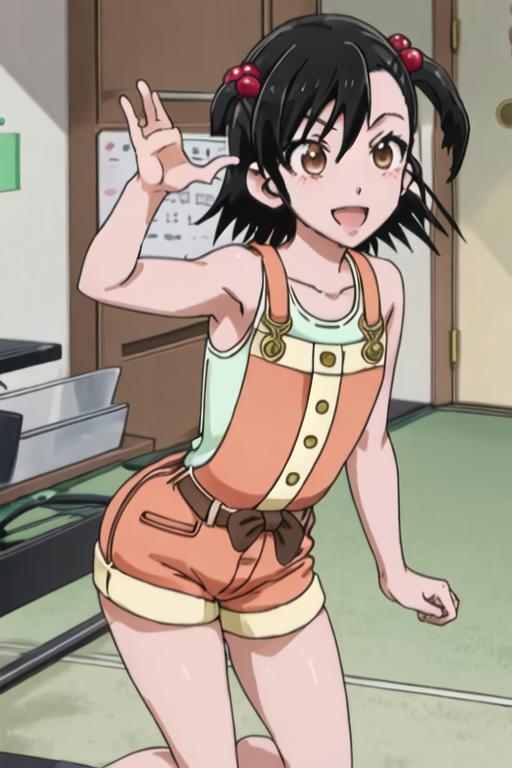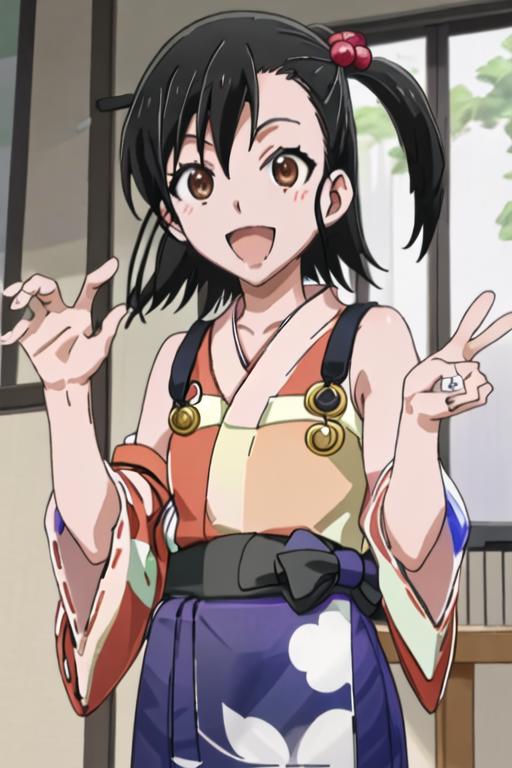 The trigger word is ashisu_sahono_mangakasantoassistantsanto, and the recommended tags are best quality, masterpiece, highres, solo, {ashisu_sahono_mangakasantoassistantsanto:1.15}, black_hair, short_hair, brown_eyes, open_mouth, hair_bobbles, hair_ornament, side_ponytail, smile.