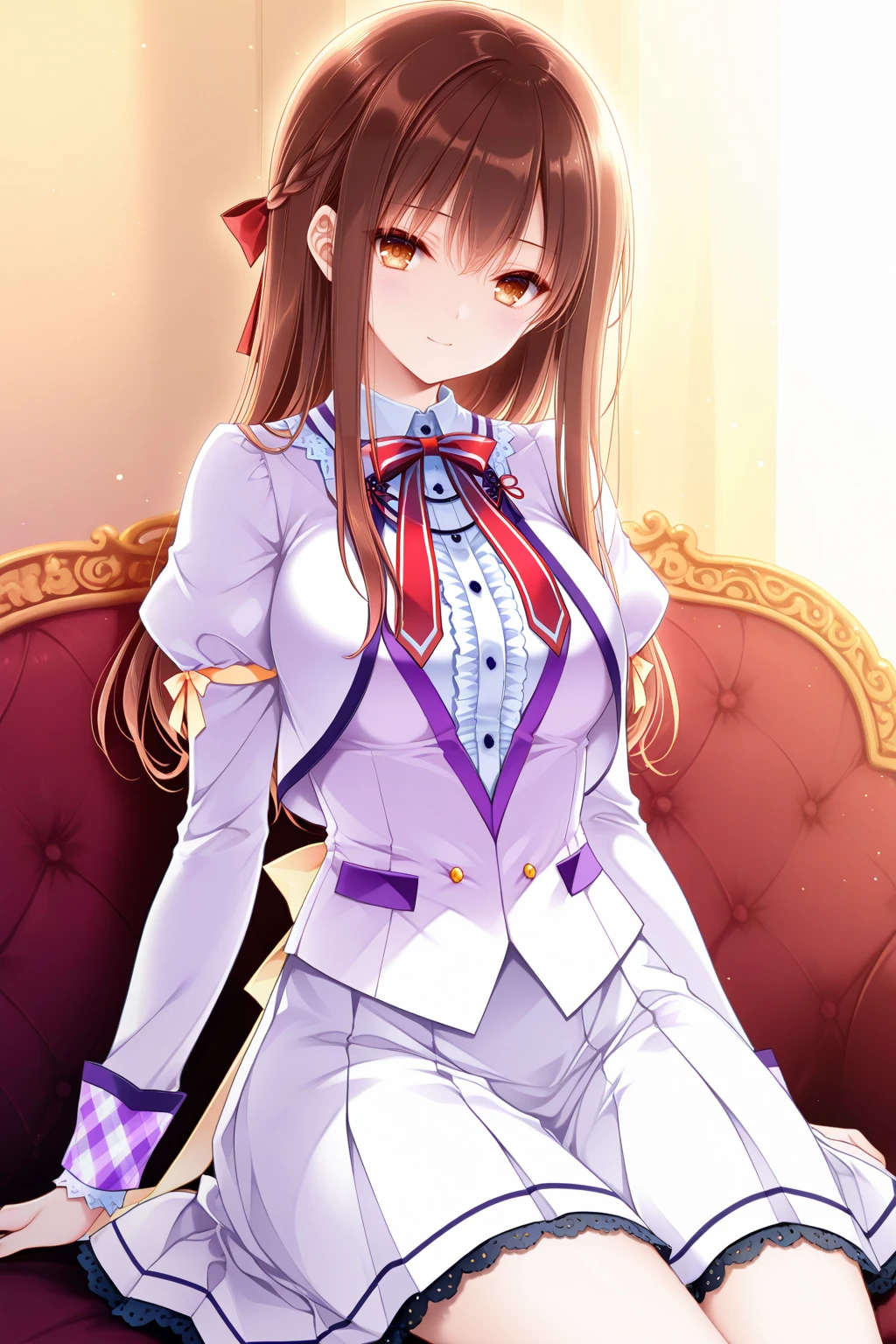 chihiro (\ensemble\),ribbon,brown eyes,brown hair,hair ribbon,long hair,