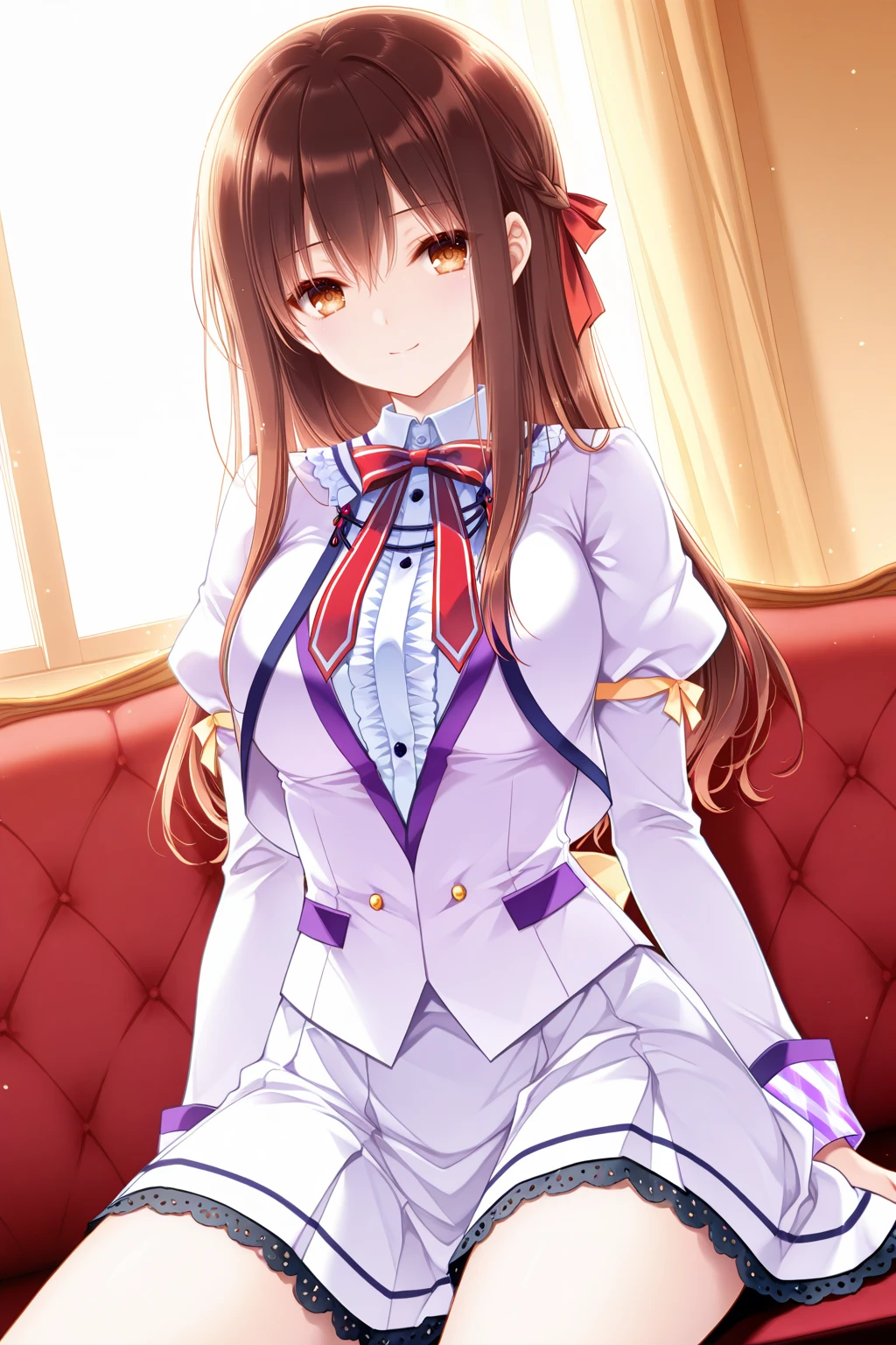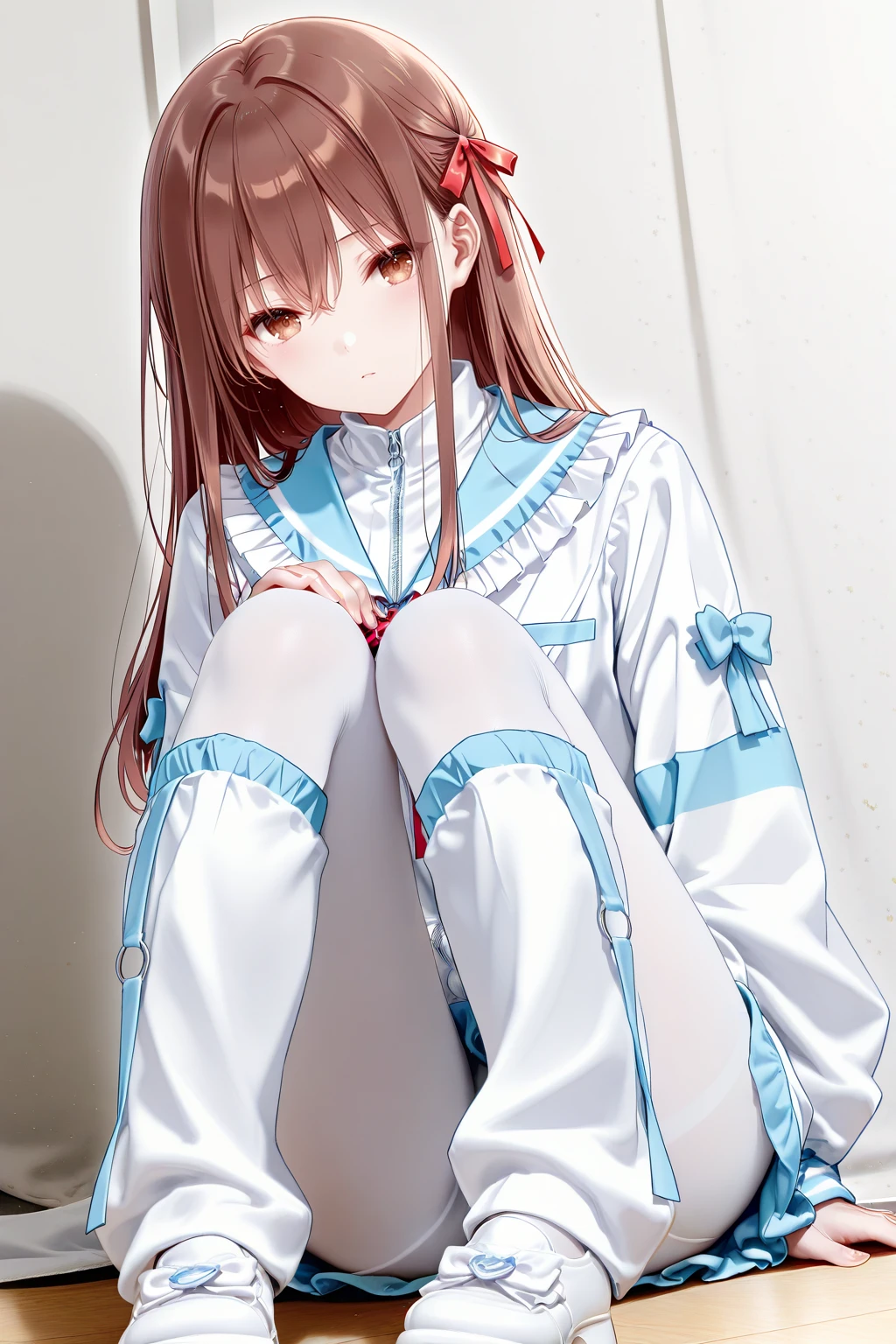 chihiro (\ensemble\),ribbon,brown eyes,brown hair,hair ribbon,long hair