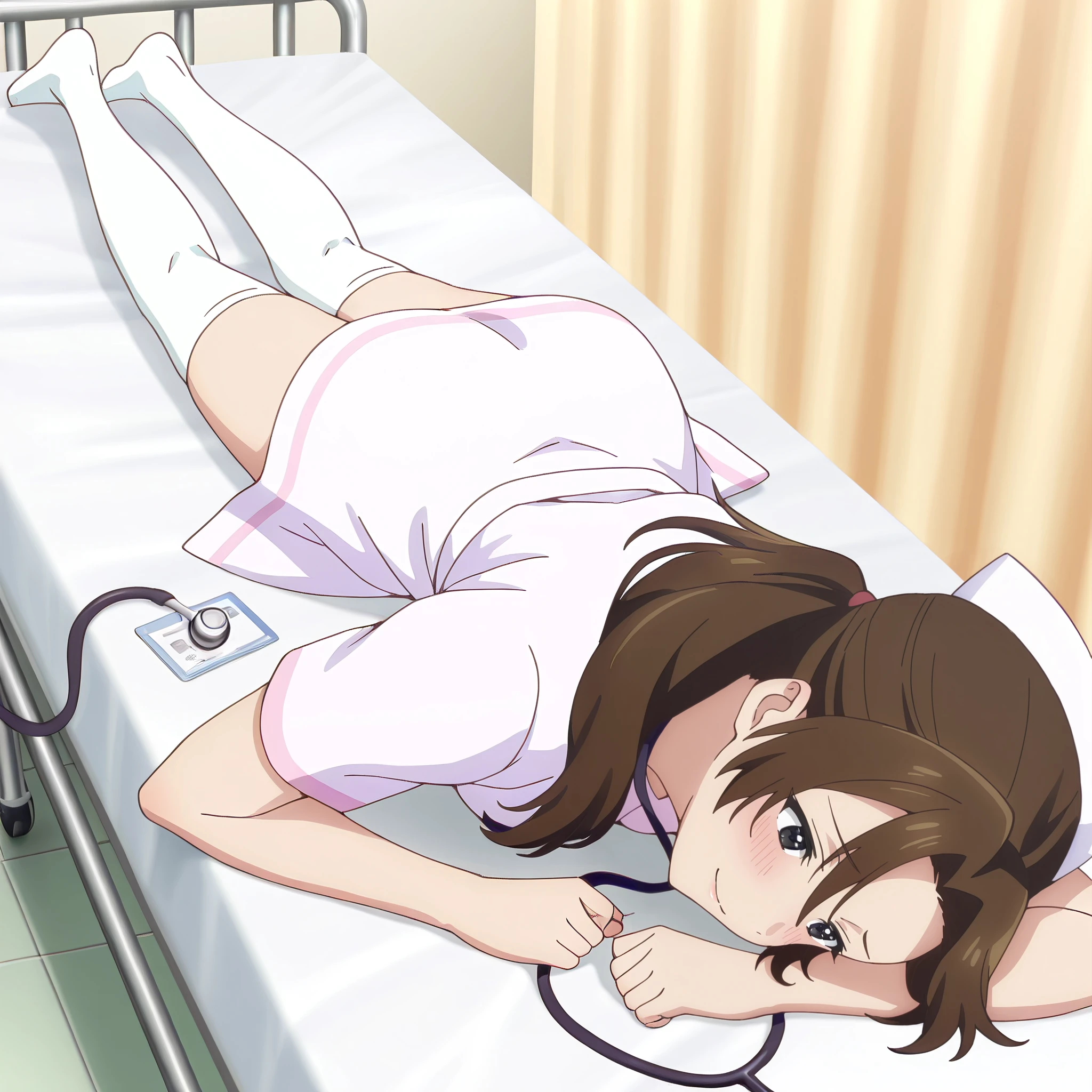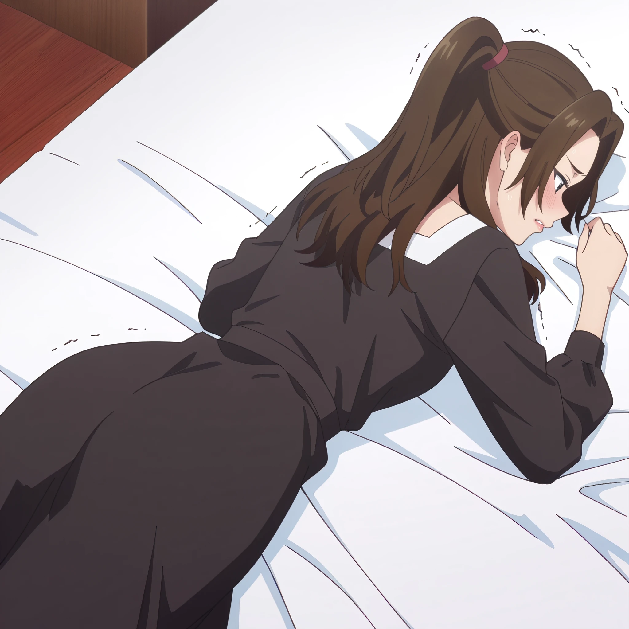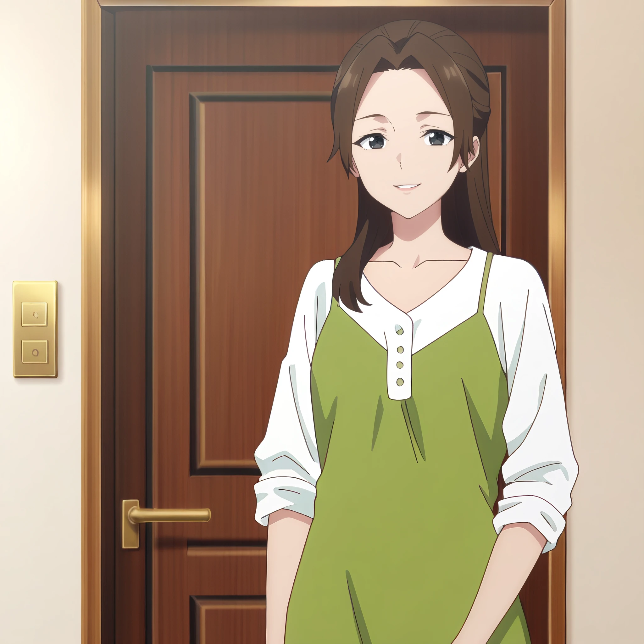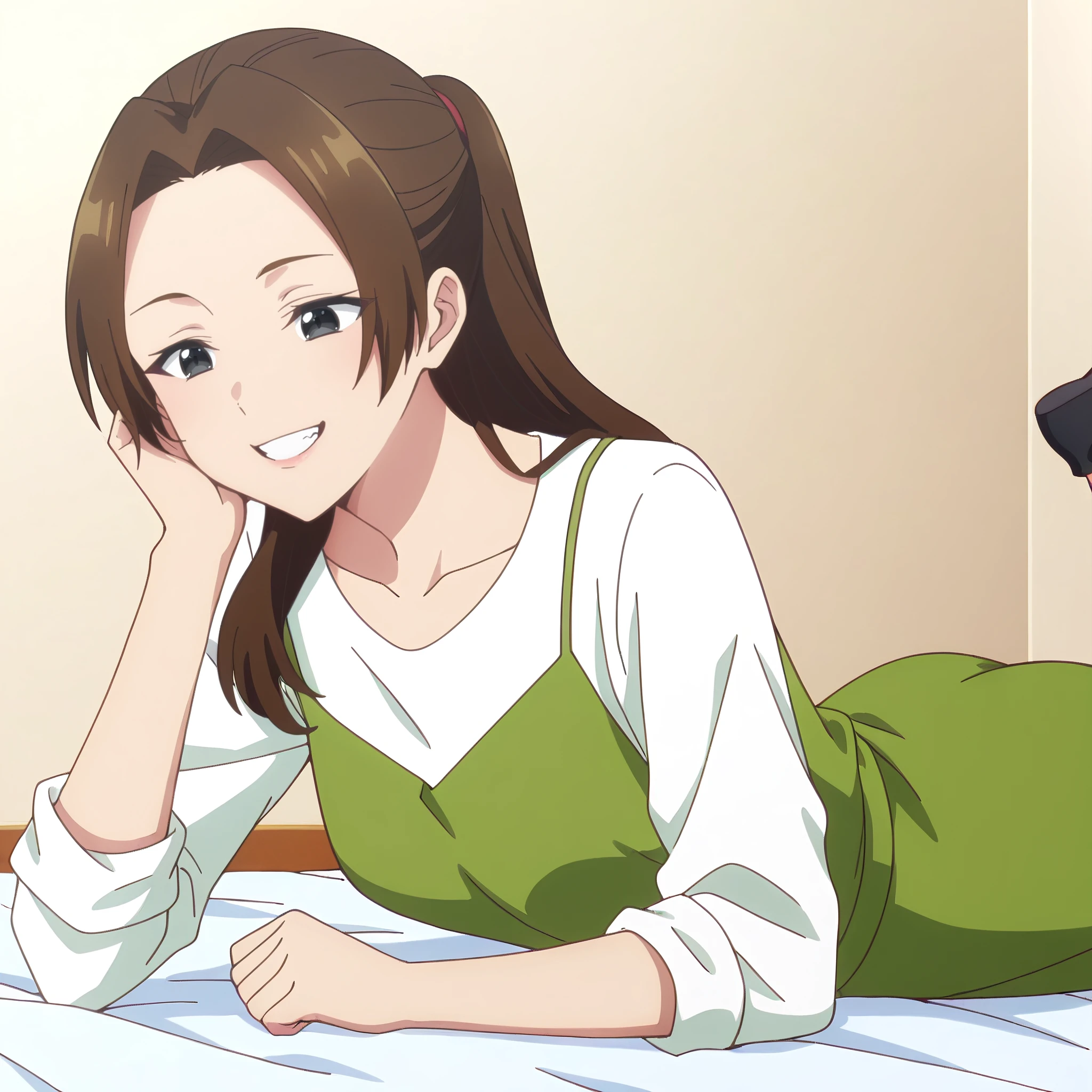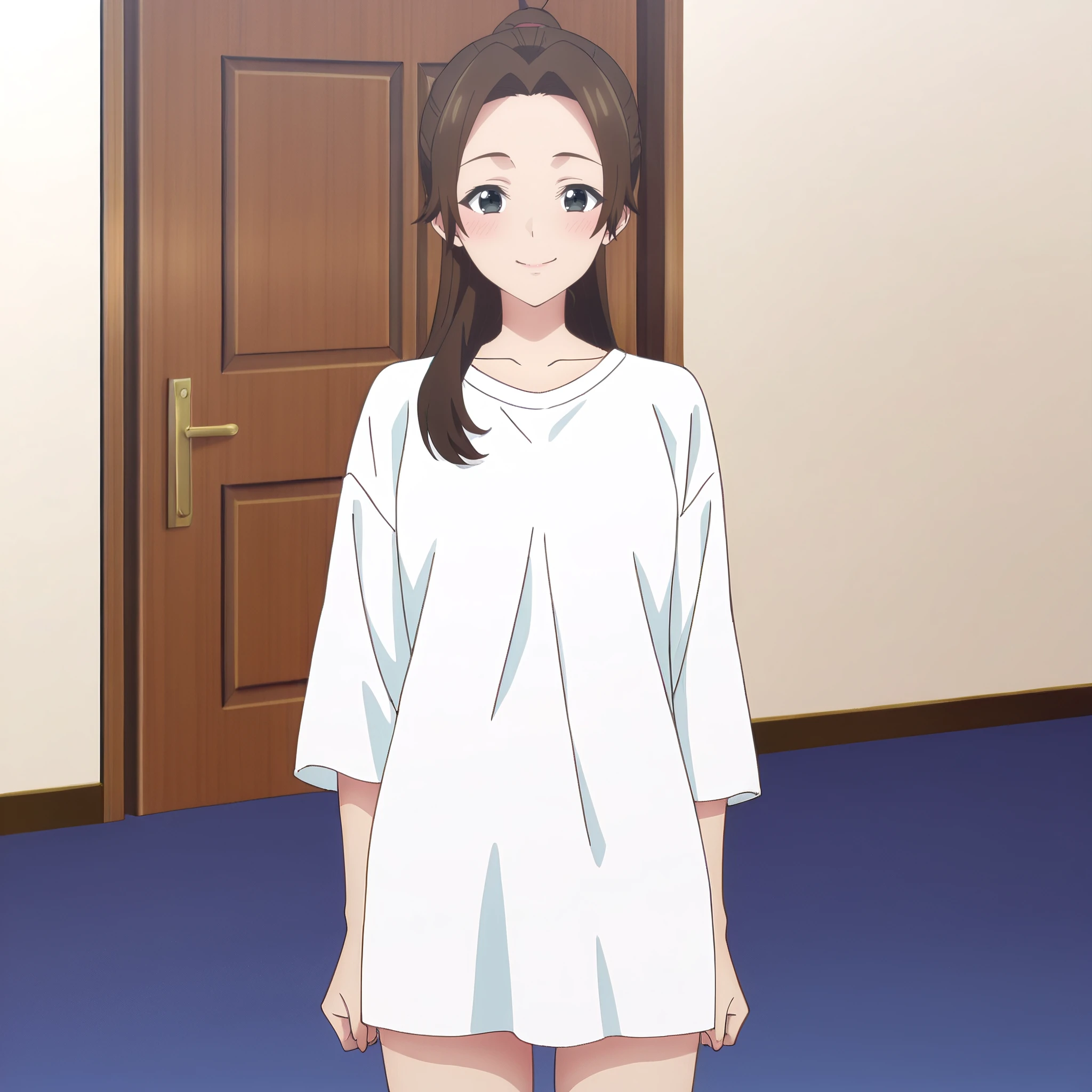 ATNMomoka, long hair, brown hair, bangs, black eyes, ponytail, parted bangs, hair tie, hair pulled back, hair intakes,