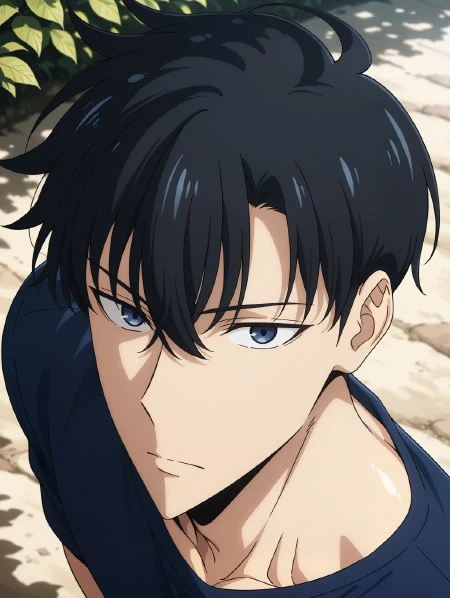 Sung Jinwoo, sung jin-woo, black hair, blue eyes, anime coloring