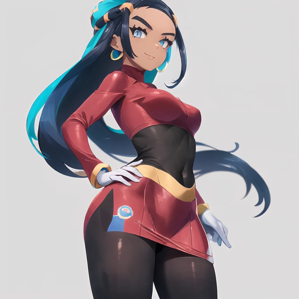 Clothing: pantyhose, red skirt, covered navel, crop top, red jacket, boots, bodysuit under clothes, skin tight, black pantyhose, cropped jacket, boots