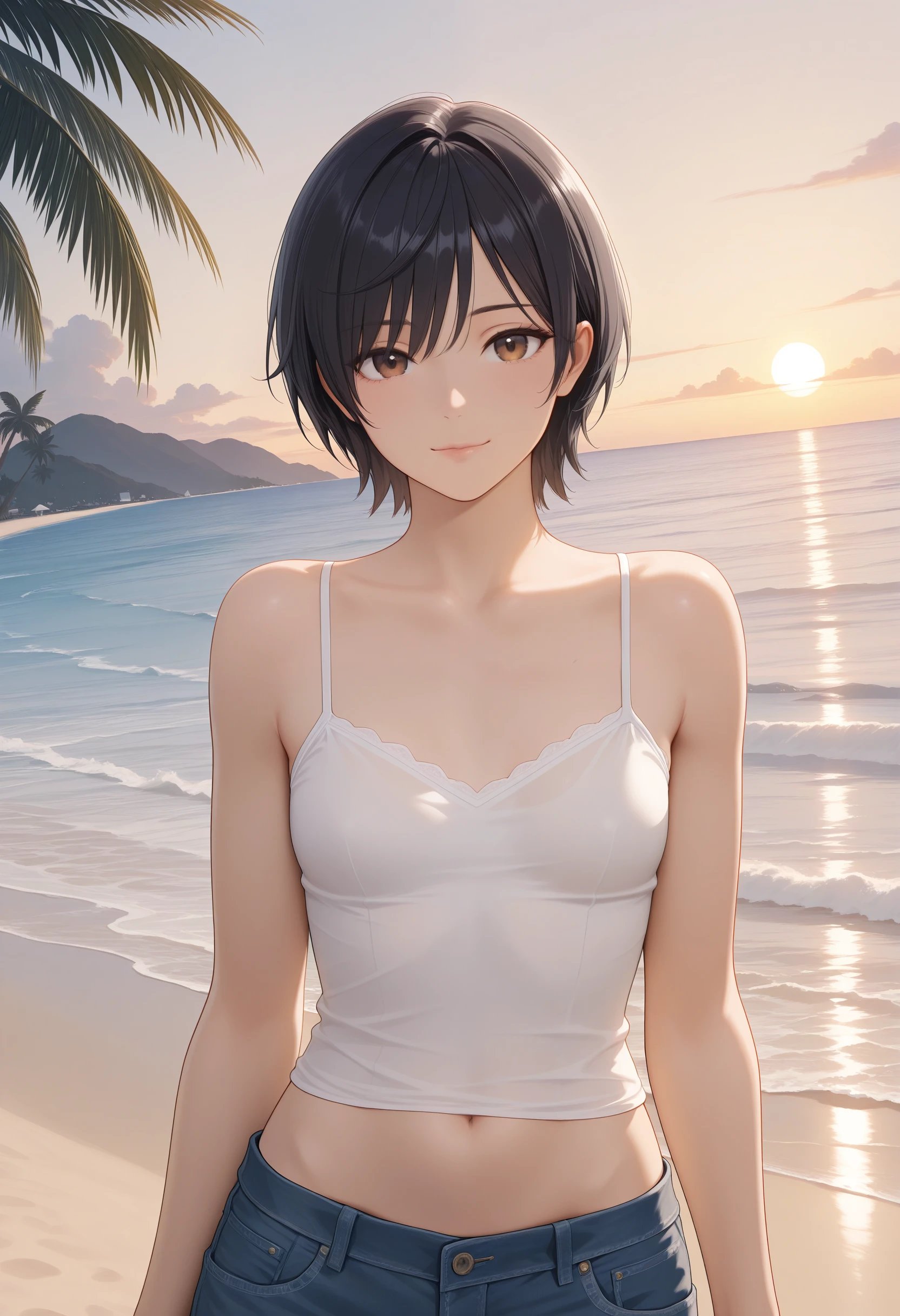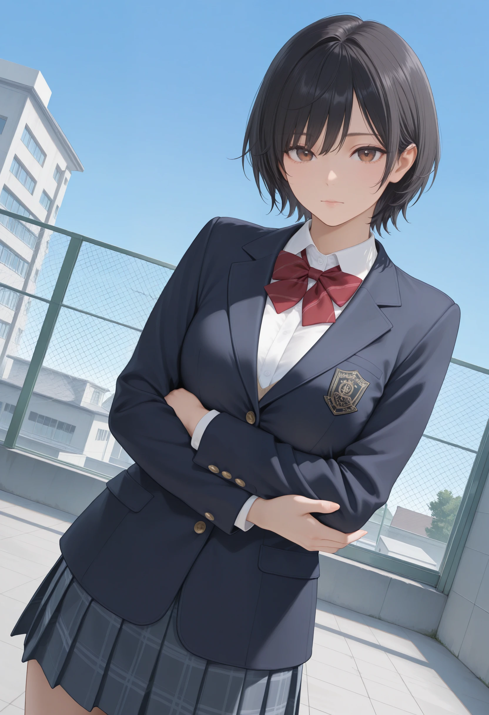• Short Hair:"brown eyes,black hair,short hair,small breasts,aged up"
