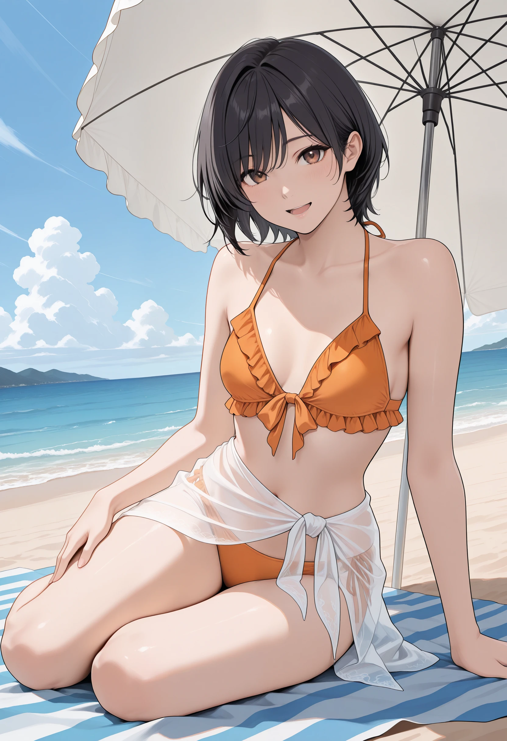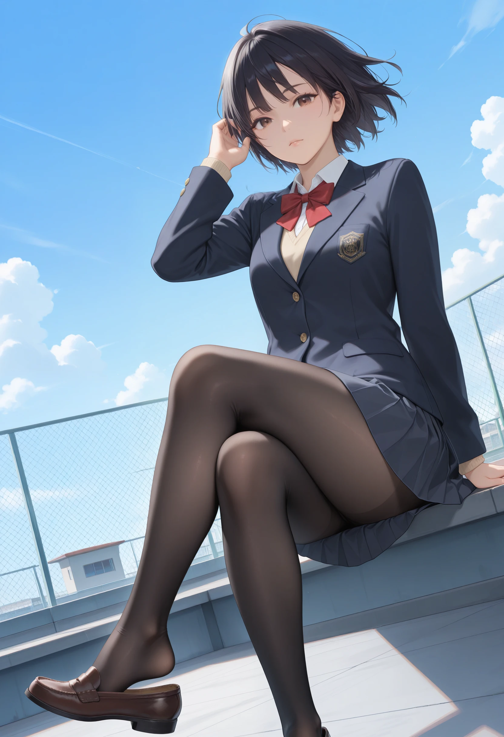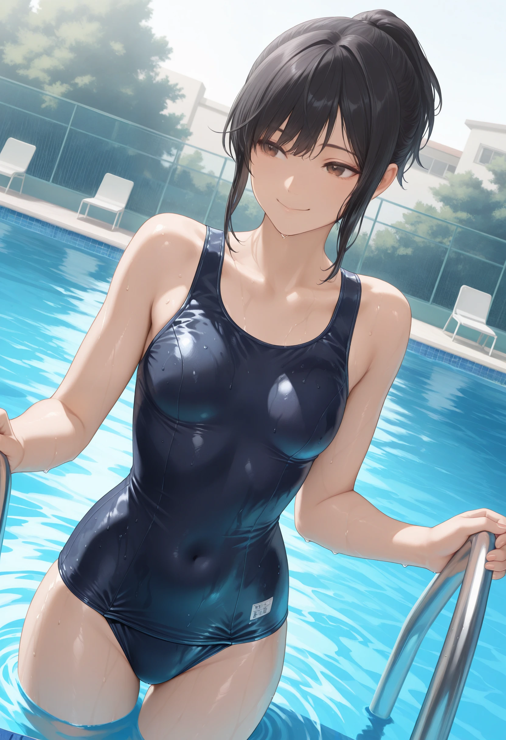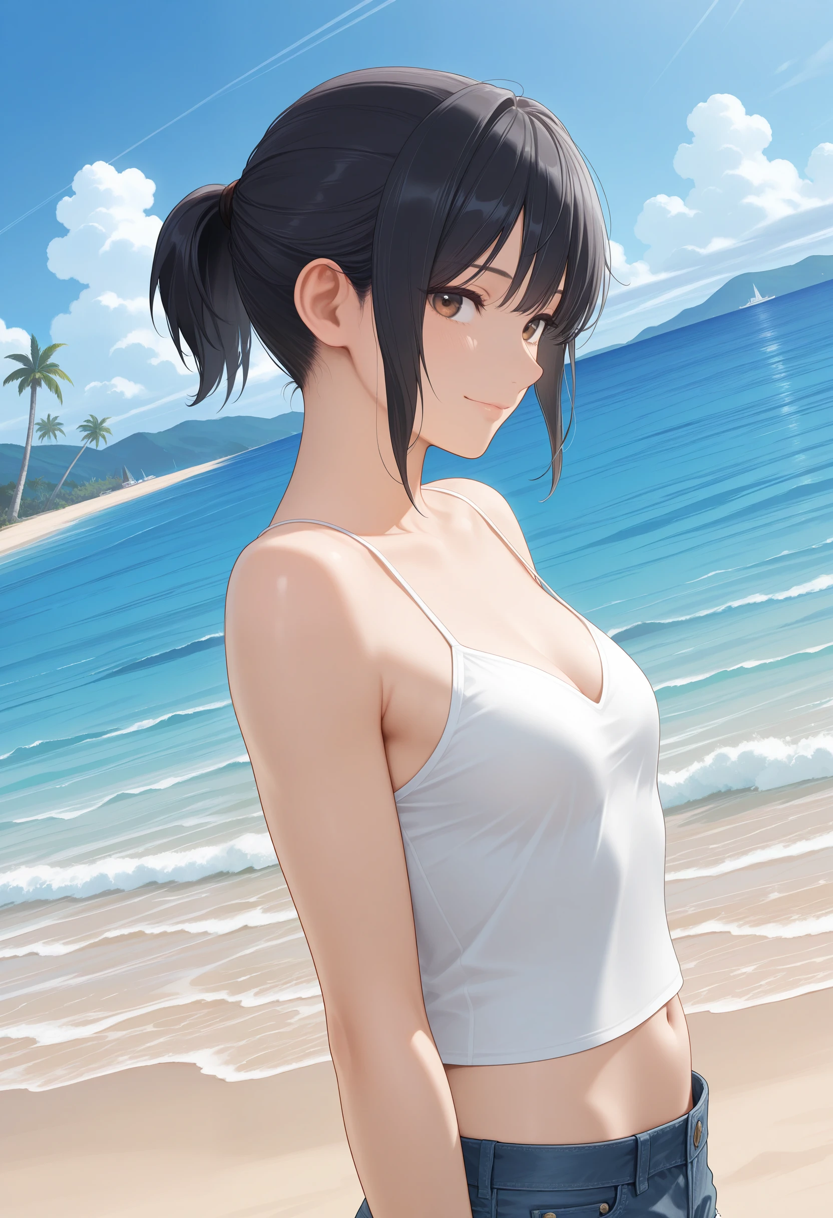• Short Ponytail:"brown eyes,black hair,short ponytail,sidelocks,small breasts,aged up"
