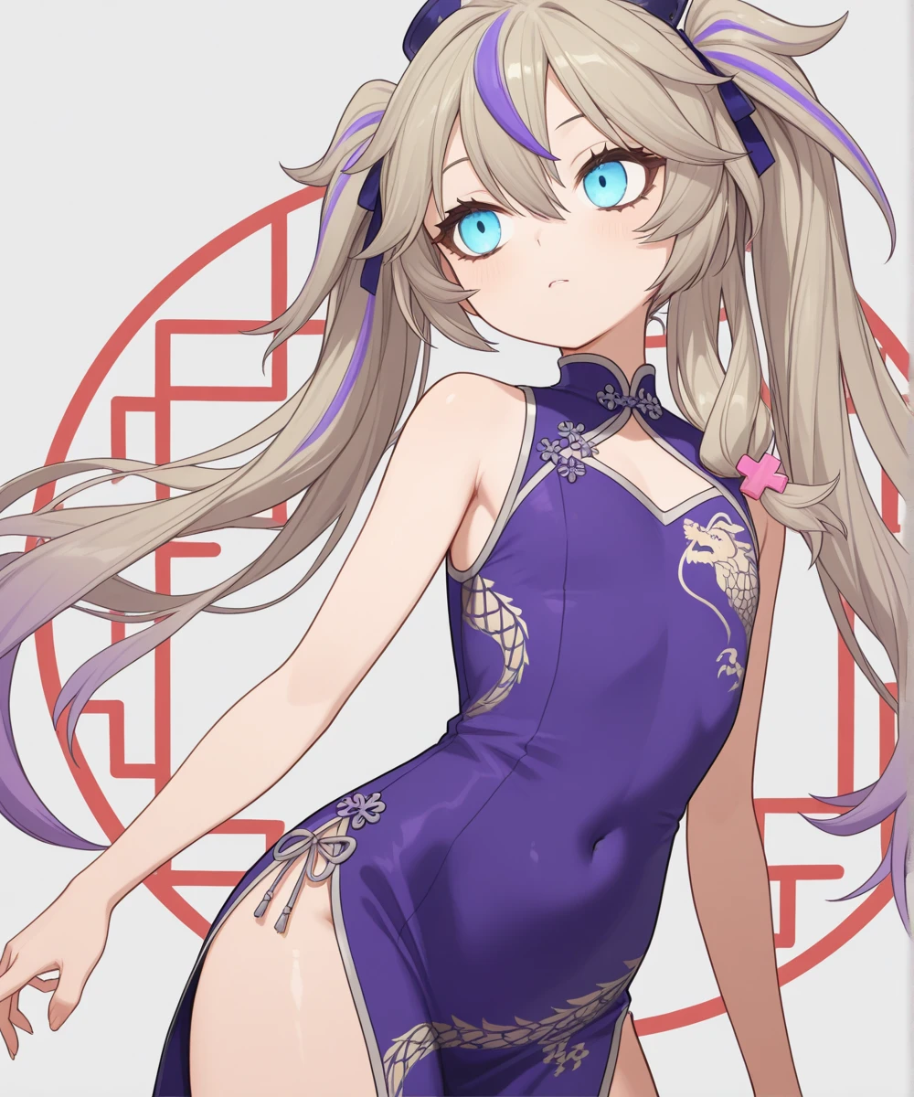 kasukabe_tsukushi,Long eyelashes, Lower eyelashes, purple mesh bangs, Flaxen Hair, blue eye,2021Cos Trigger word