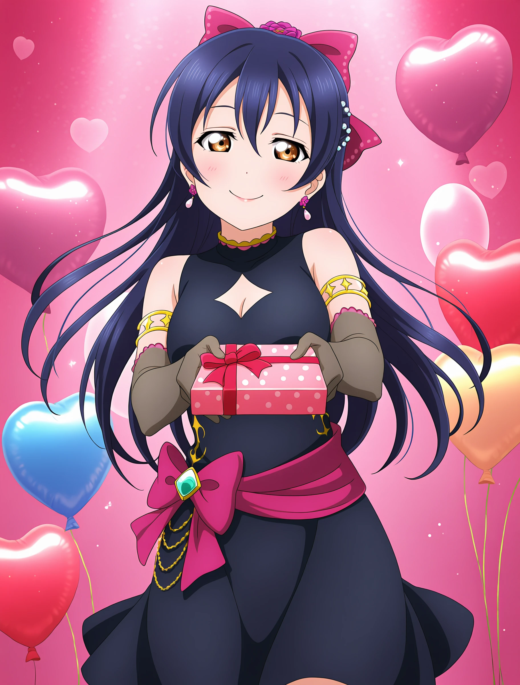 sonoda umi, long hair, soruge hair ribbon, dot print ribbon, bead hair ornament, hair flower, flower earrings🚫 Negative / ネガティブ
