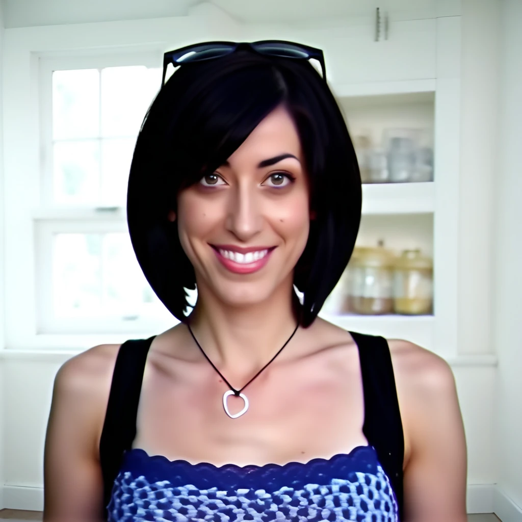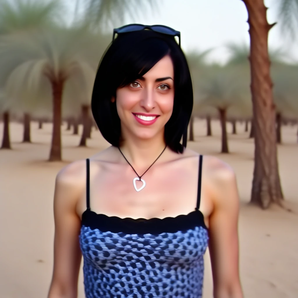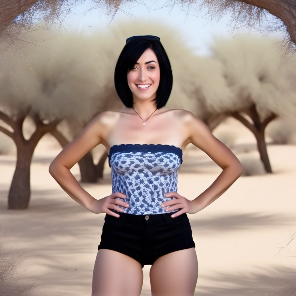 OF_1, wearing black short shorts and a vest top with blue and white print <LoRa: Everyday Outfit #1 - Shorts n Stripes: 1.0>