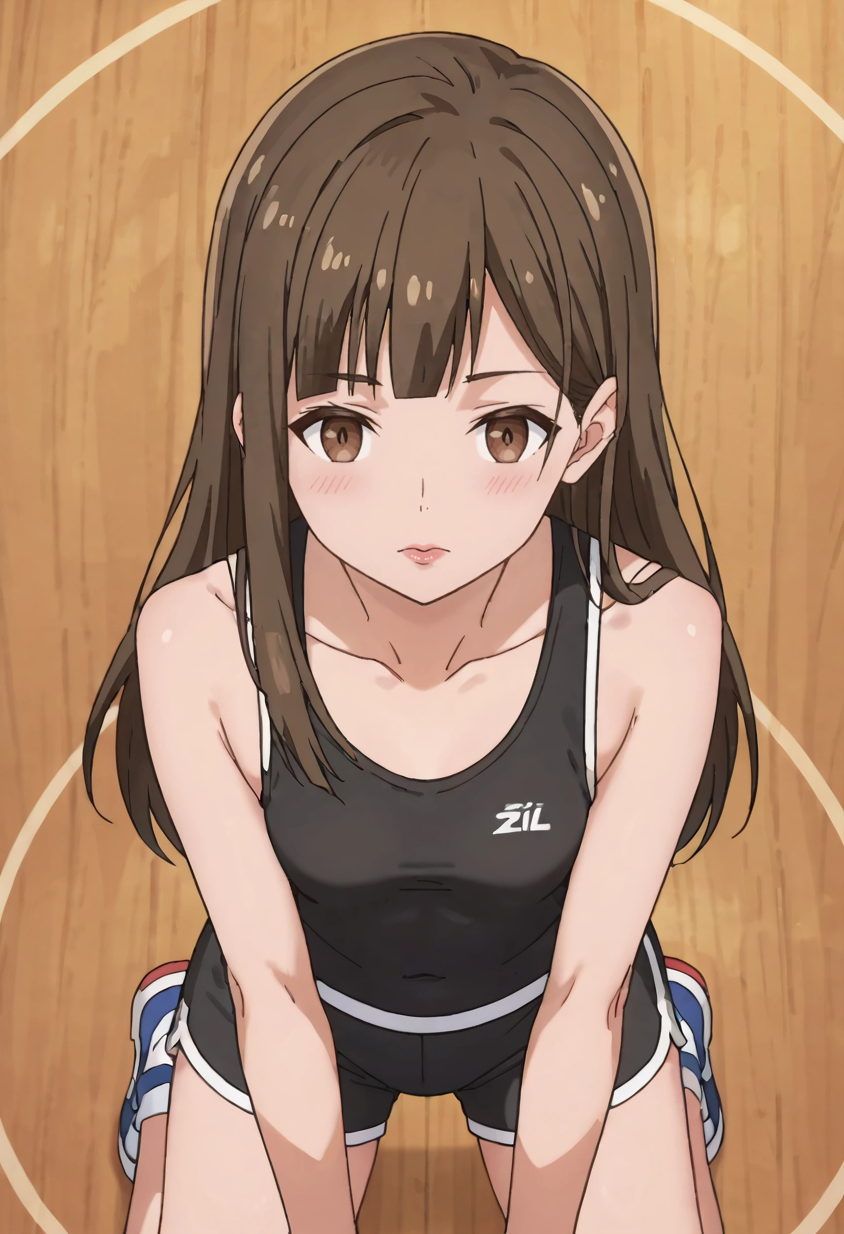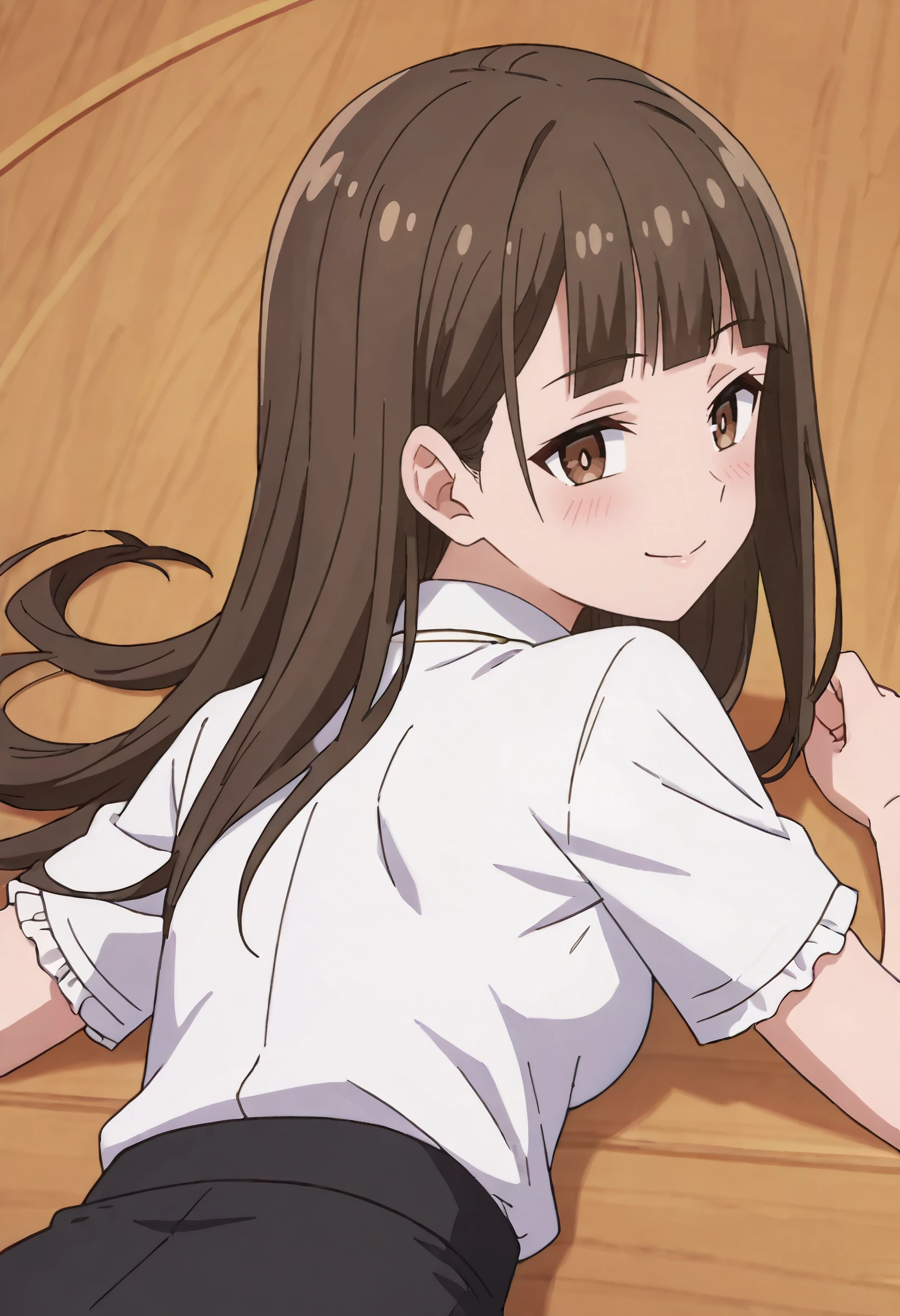 SNSReceptBrown, long hair, brown hair, brown eyes, blunt bangs,