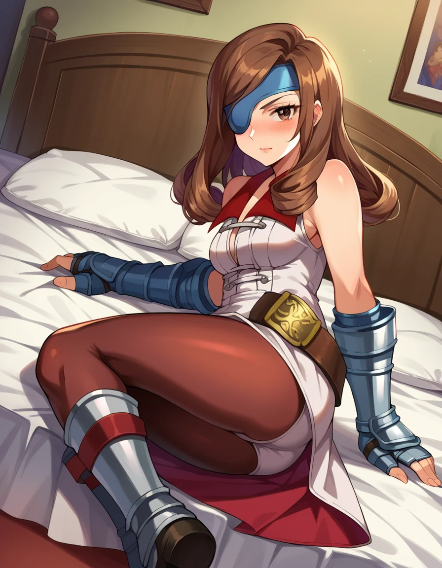 beatrix, brown eyes, brown hair, drill hair, eyepatch,