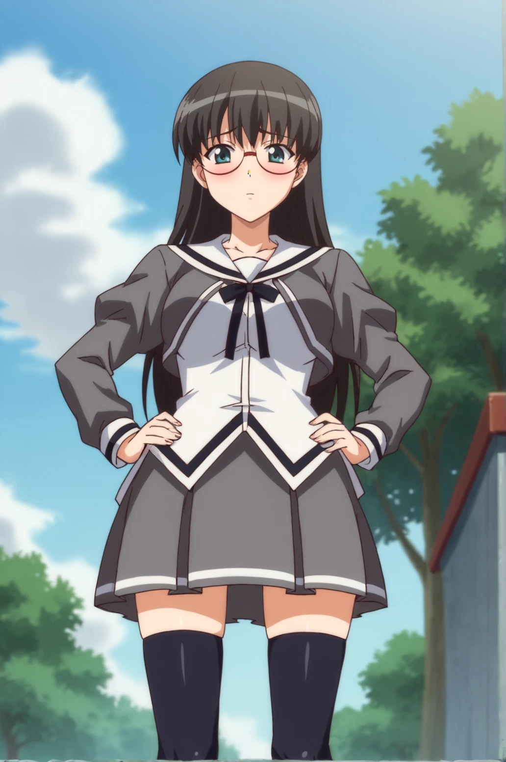 Trigger Words Optionnal: glasses, school uniform, serafuku, black thighhighs