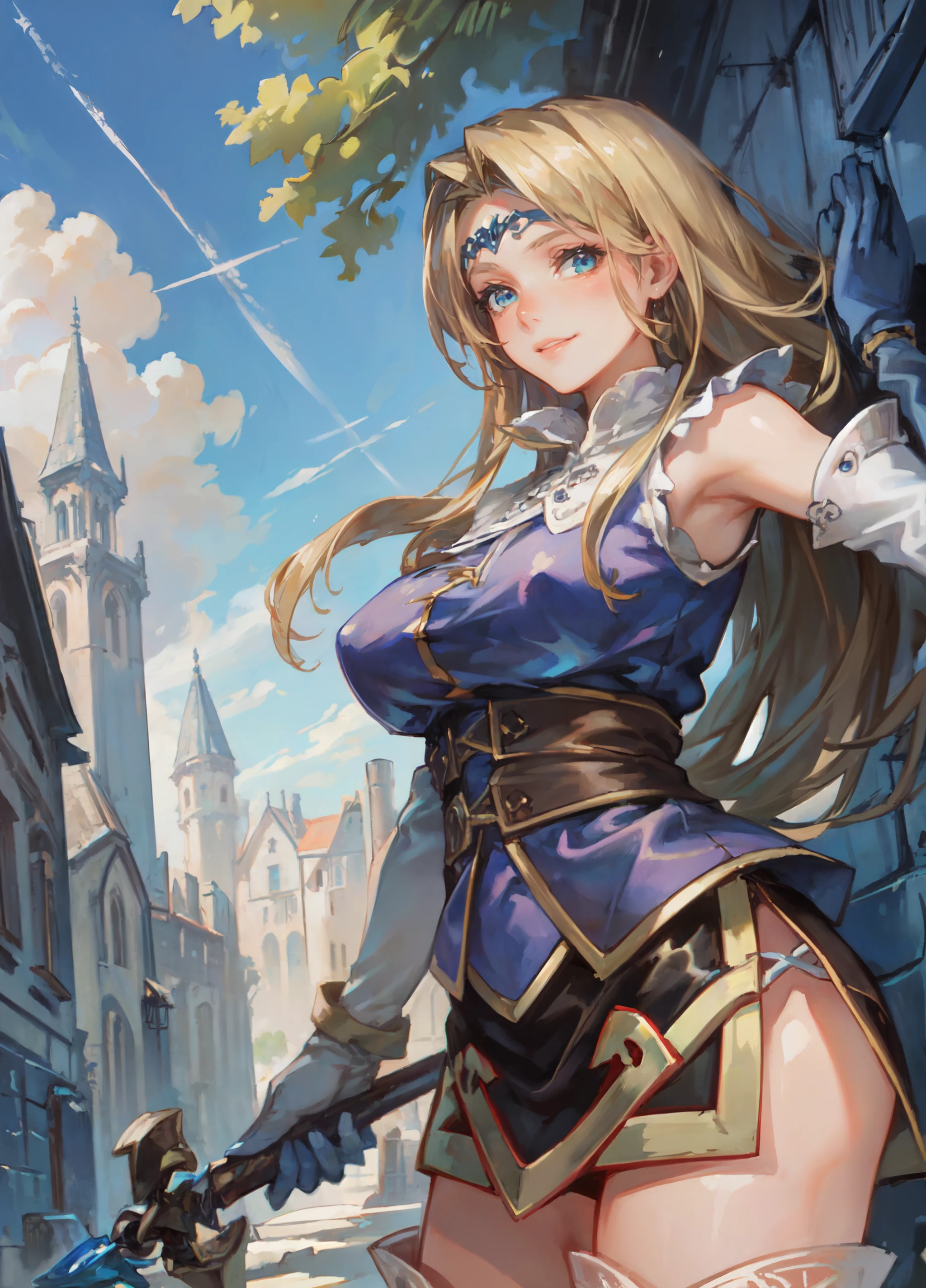 MystinaVP, sleeveless shirt, skirt, gloves, circlet, thighhighs, boots, jewelry,