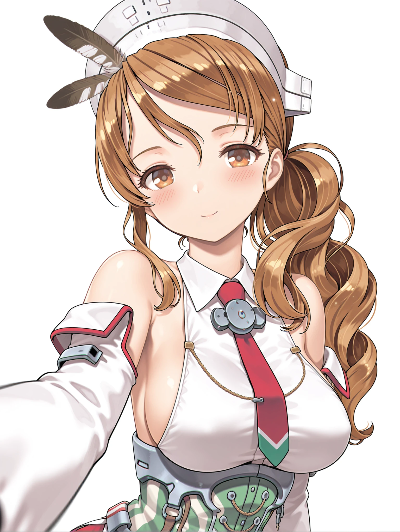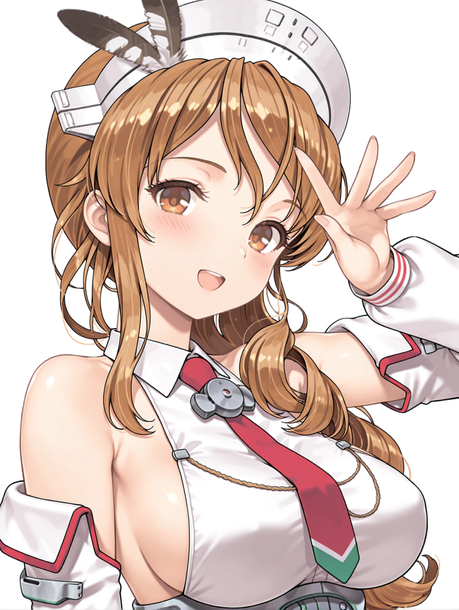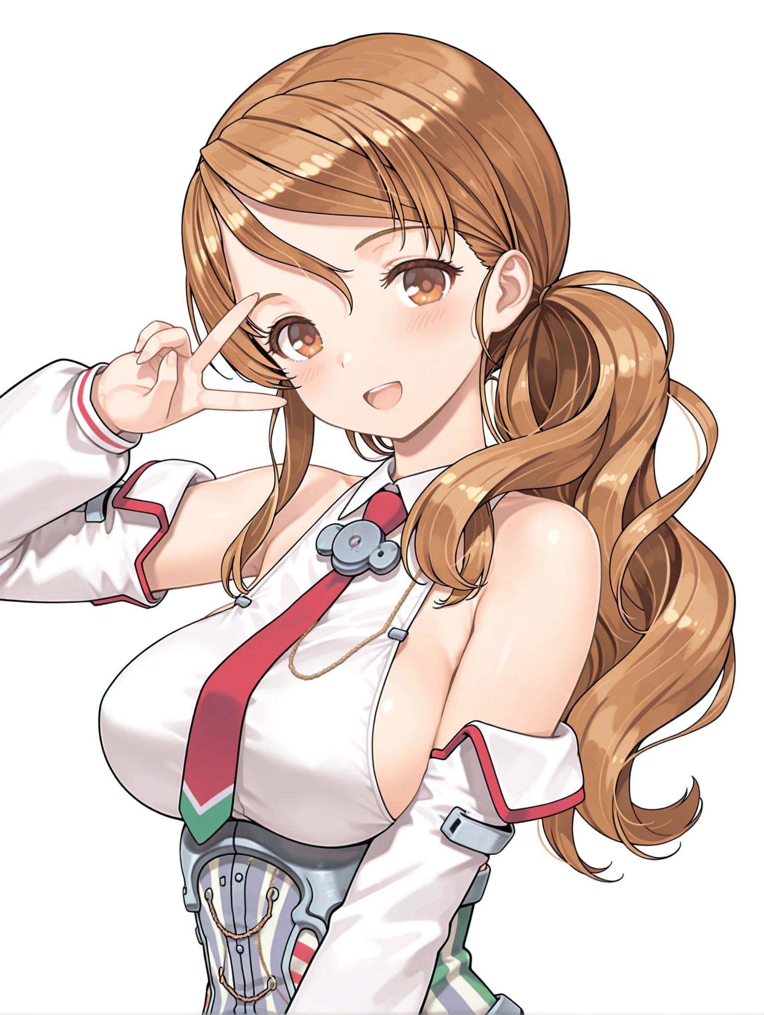トリガーワード ・BB_littorio,brown hair,wavy hair,brown eyes,low ponytail,