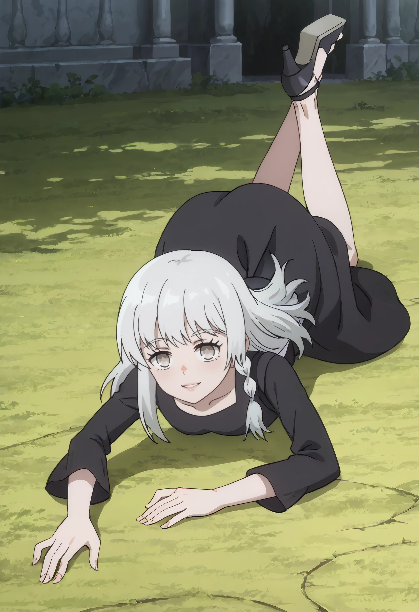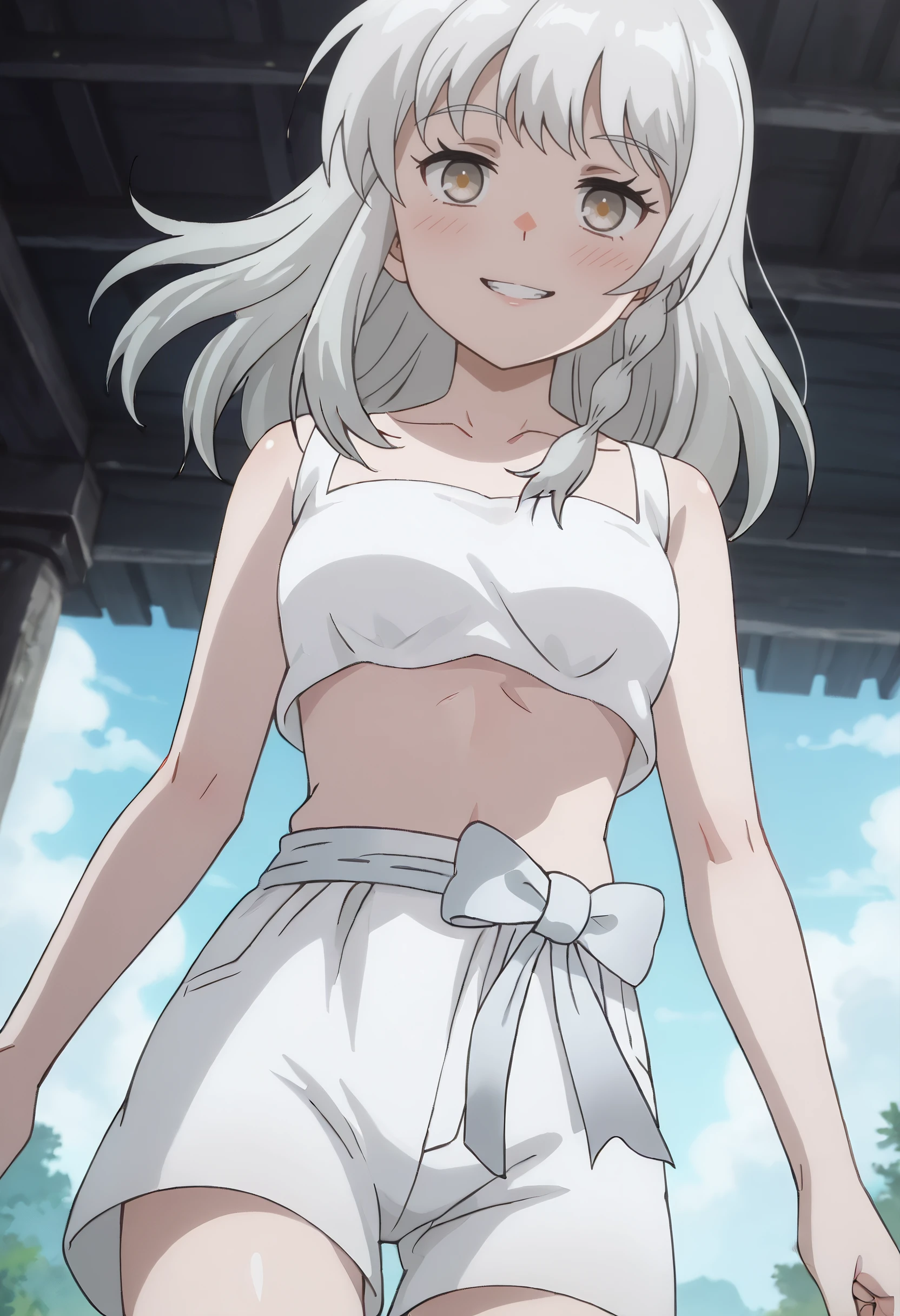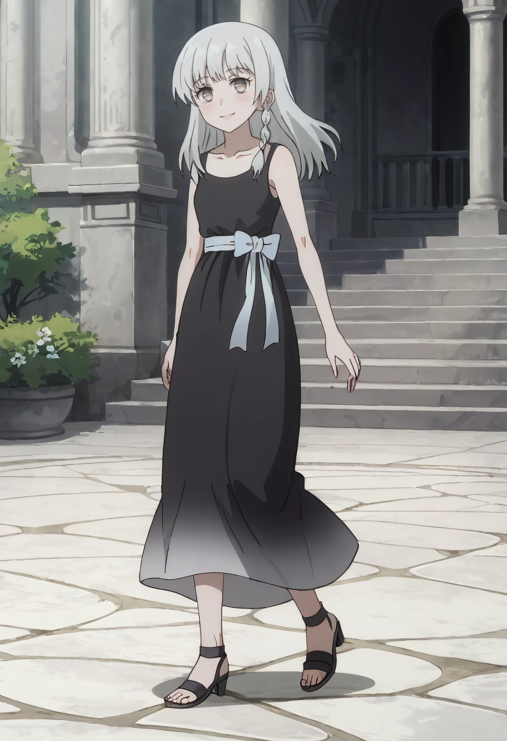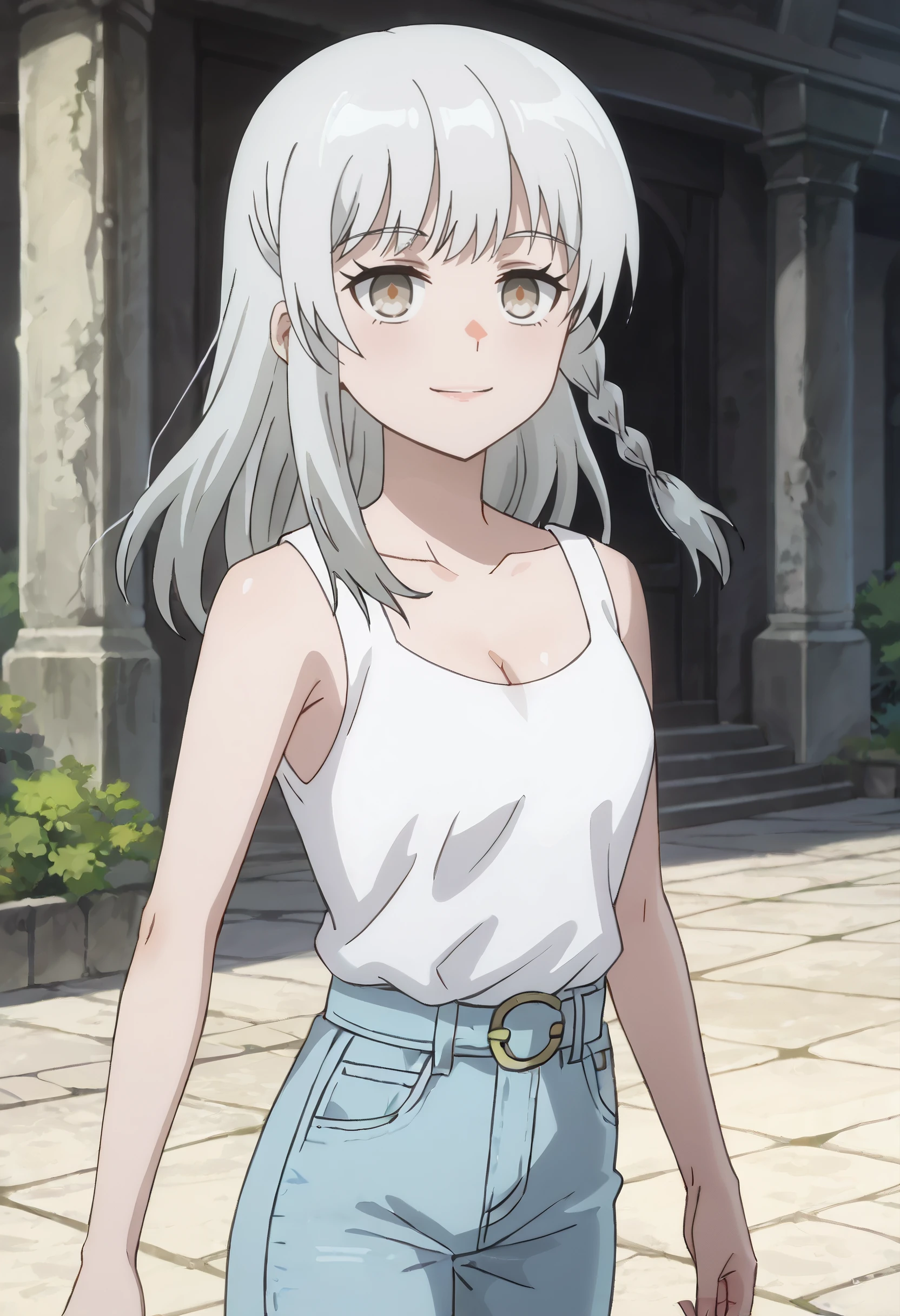 AMGSerena, long hair, bangs, braid, eyebrows visible through hair, brown eyes, white hair,