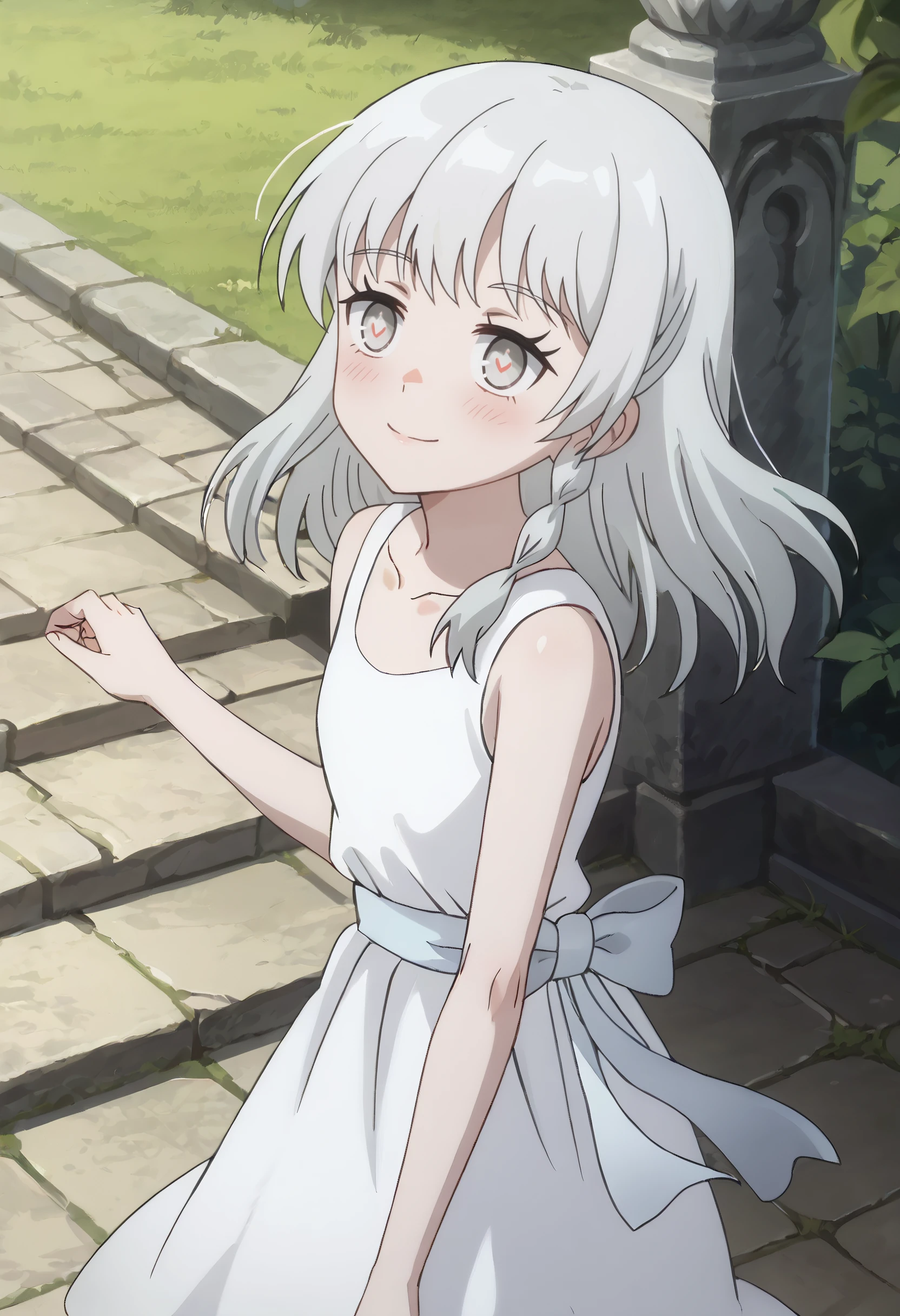 collarbone, dress, sleeveless, white dress, bare shoulders, sleeveless dress, bow, bare arms, white bow,