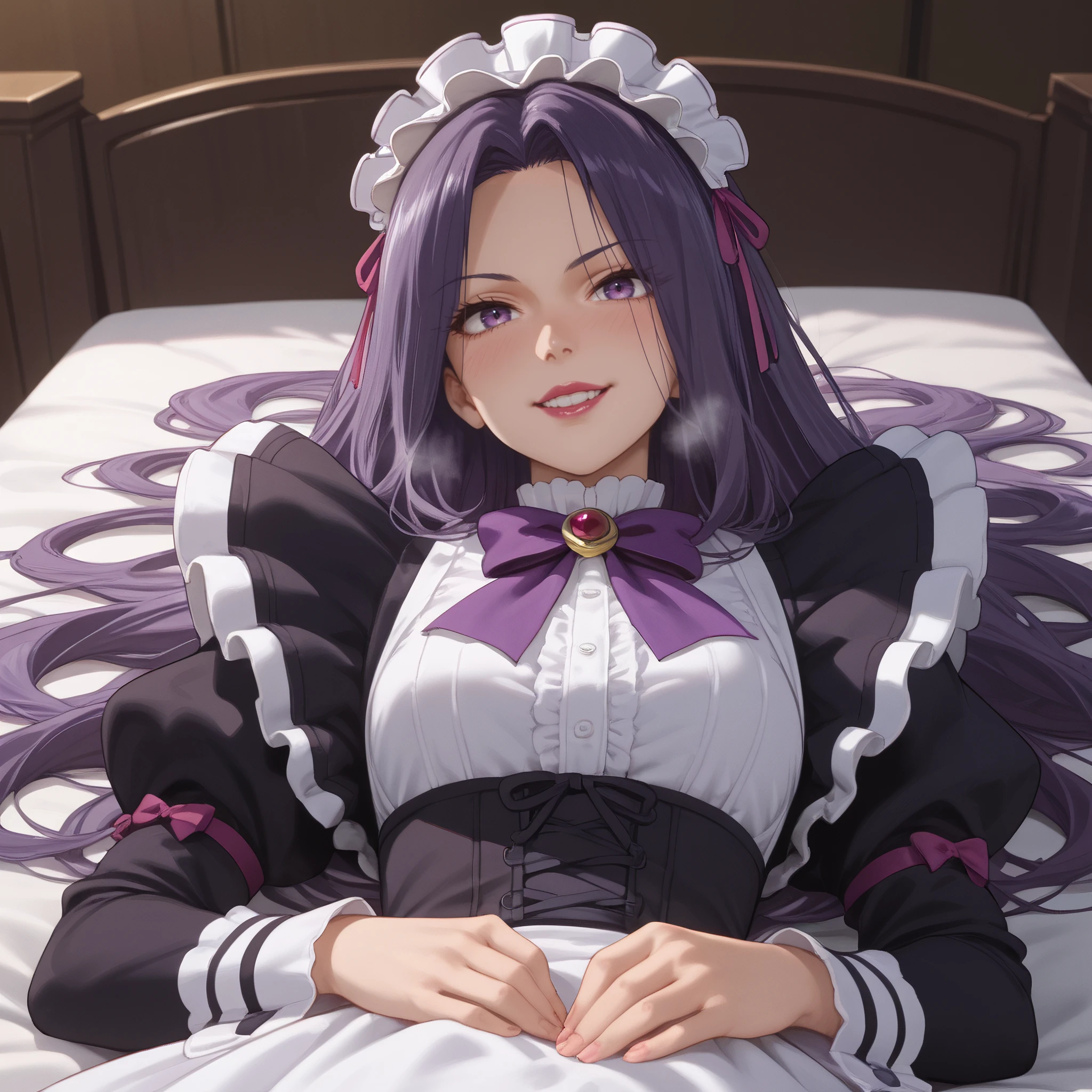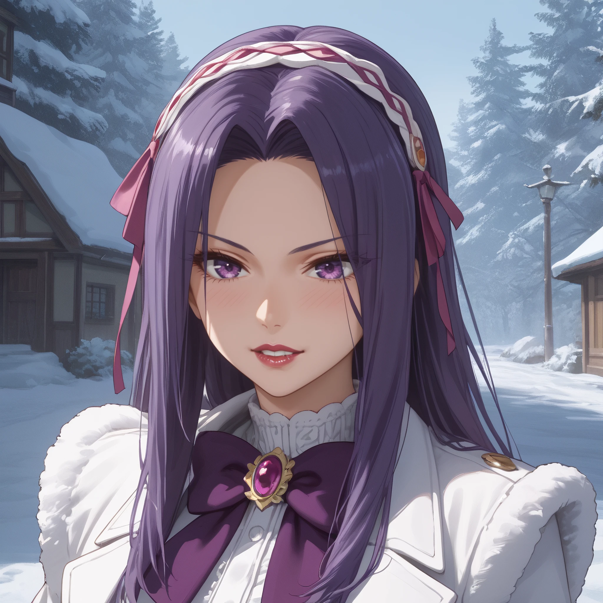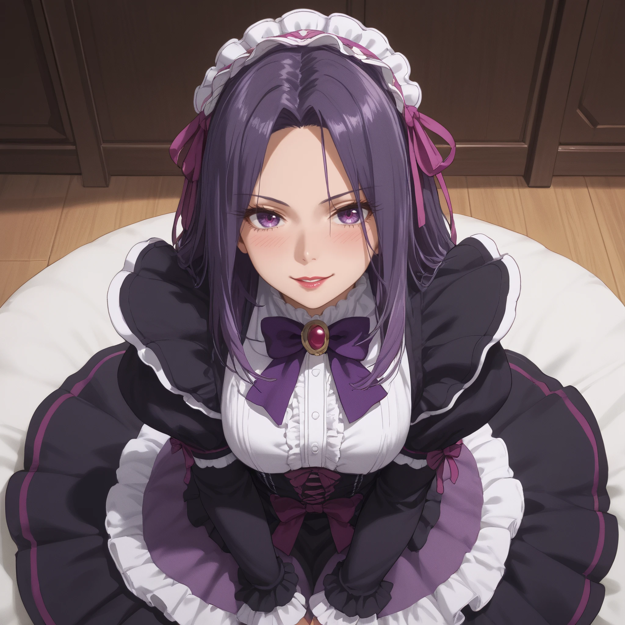 AMWNagi, long hair, purple hair, purple eyes, ribbon, bangs, hair ribbon, very long hair, bow, parted bangs, lipstick, purple bow, hairband,