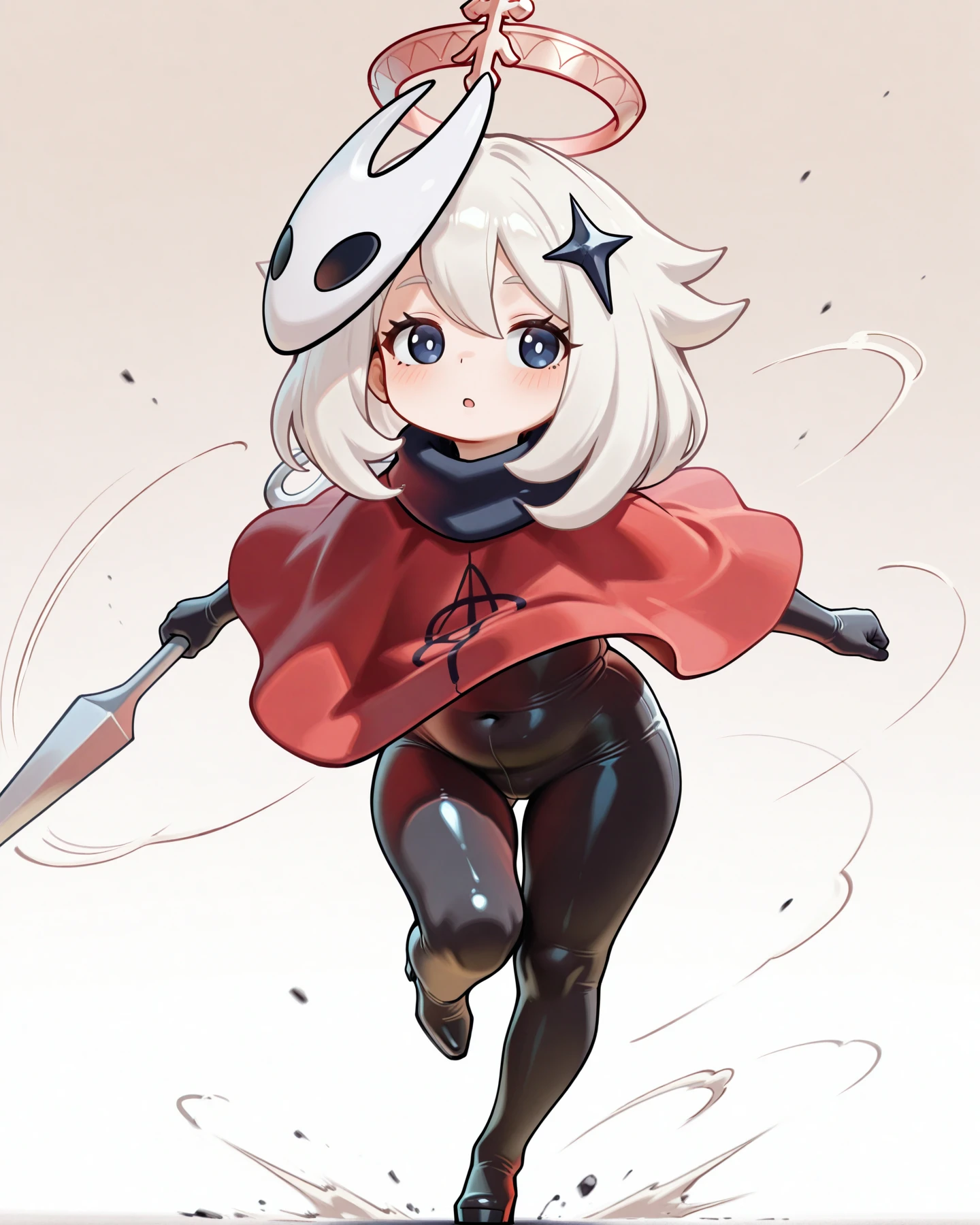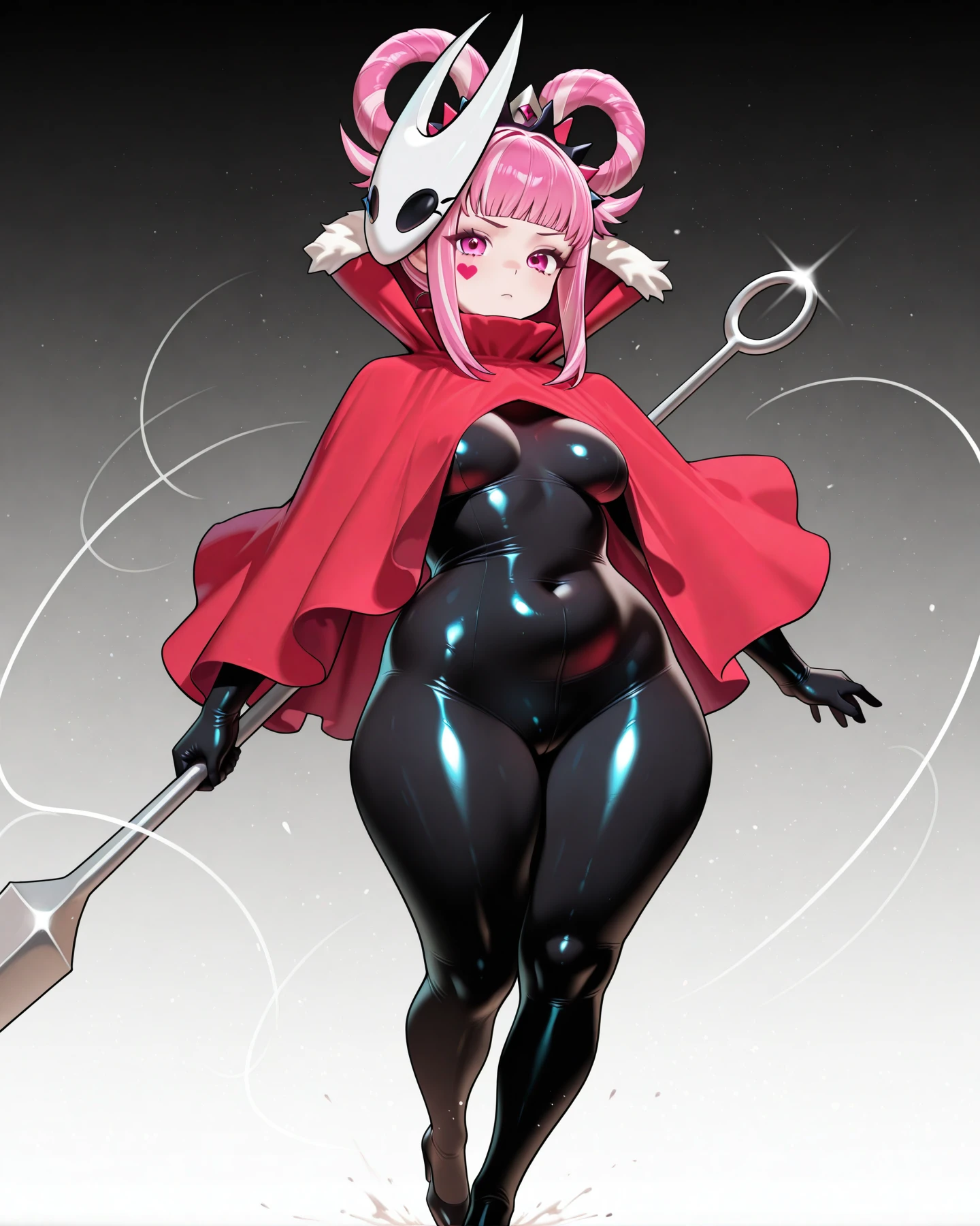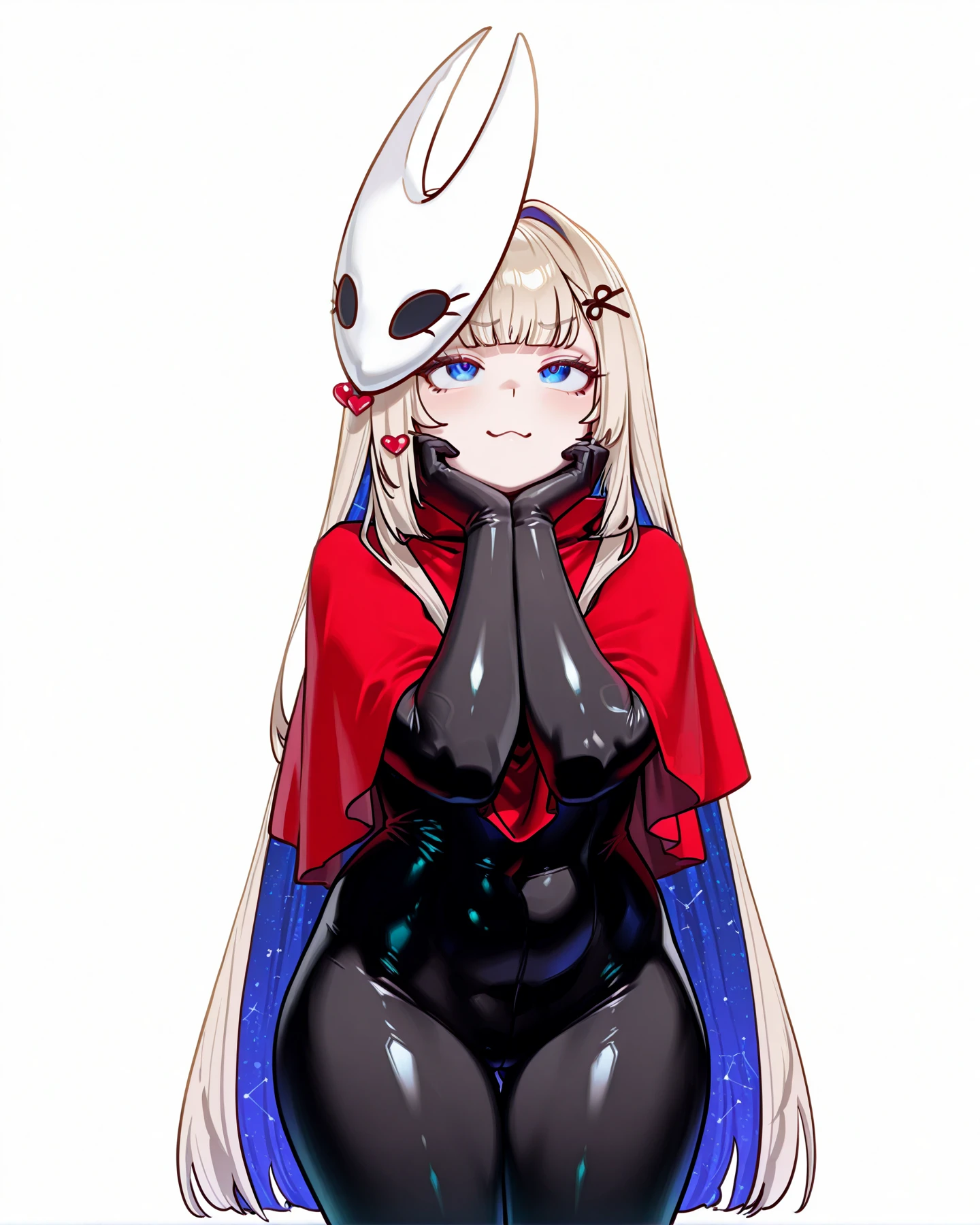 red poncho, skintight bodysuit, skindentation, black latex bodysuit, black gloves, black heelsuit, high heels bodysuit, hornet white mask, mask on head,