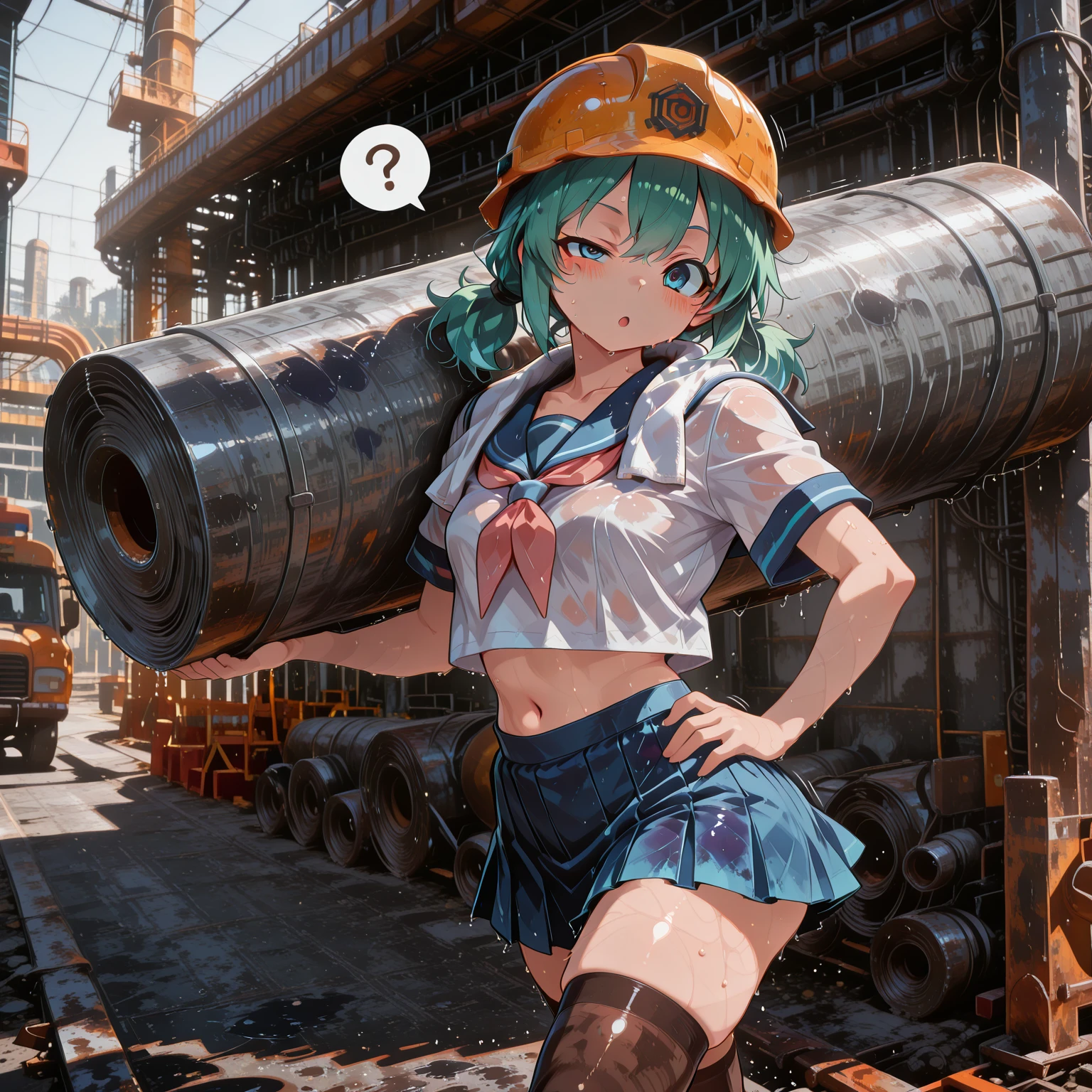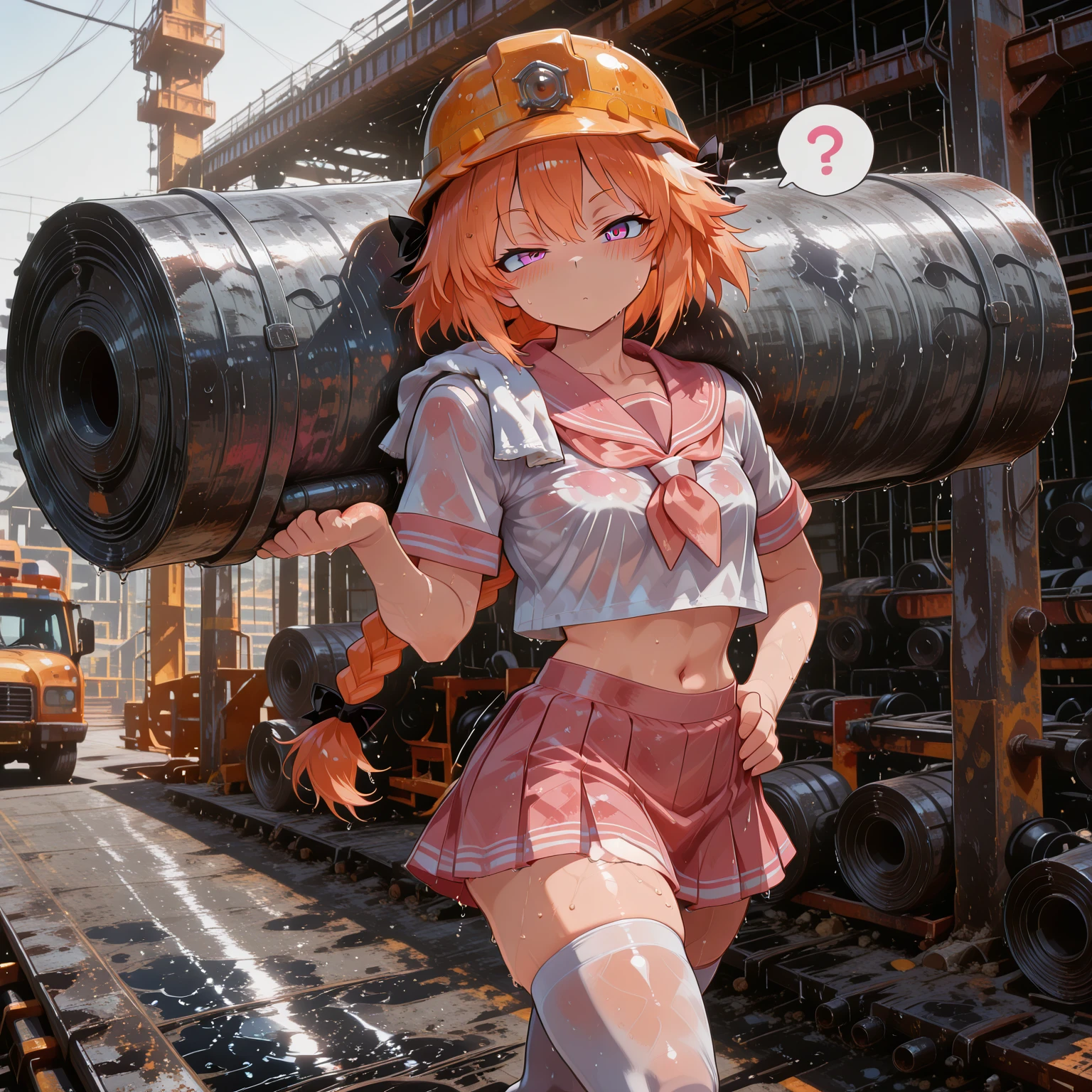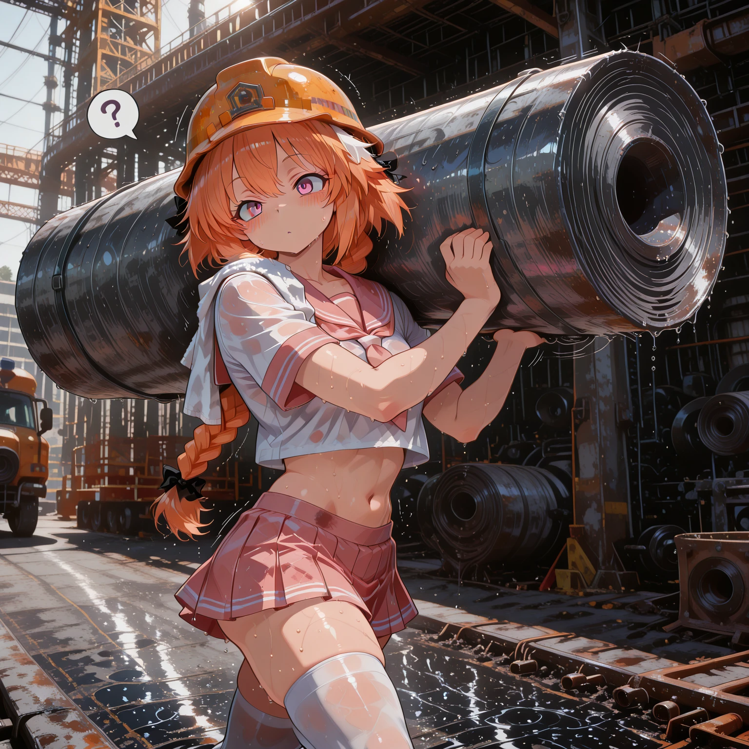 The weather is heating up, so your waifu has decided to go to a construction site to haul steel coils and save up the money to buy you a 5090 setup.