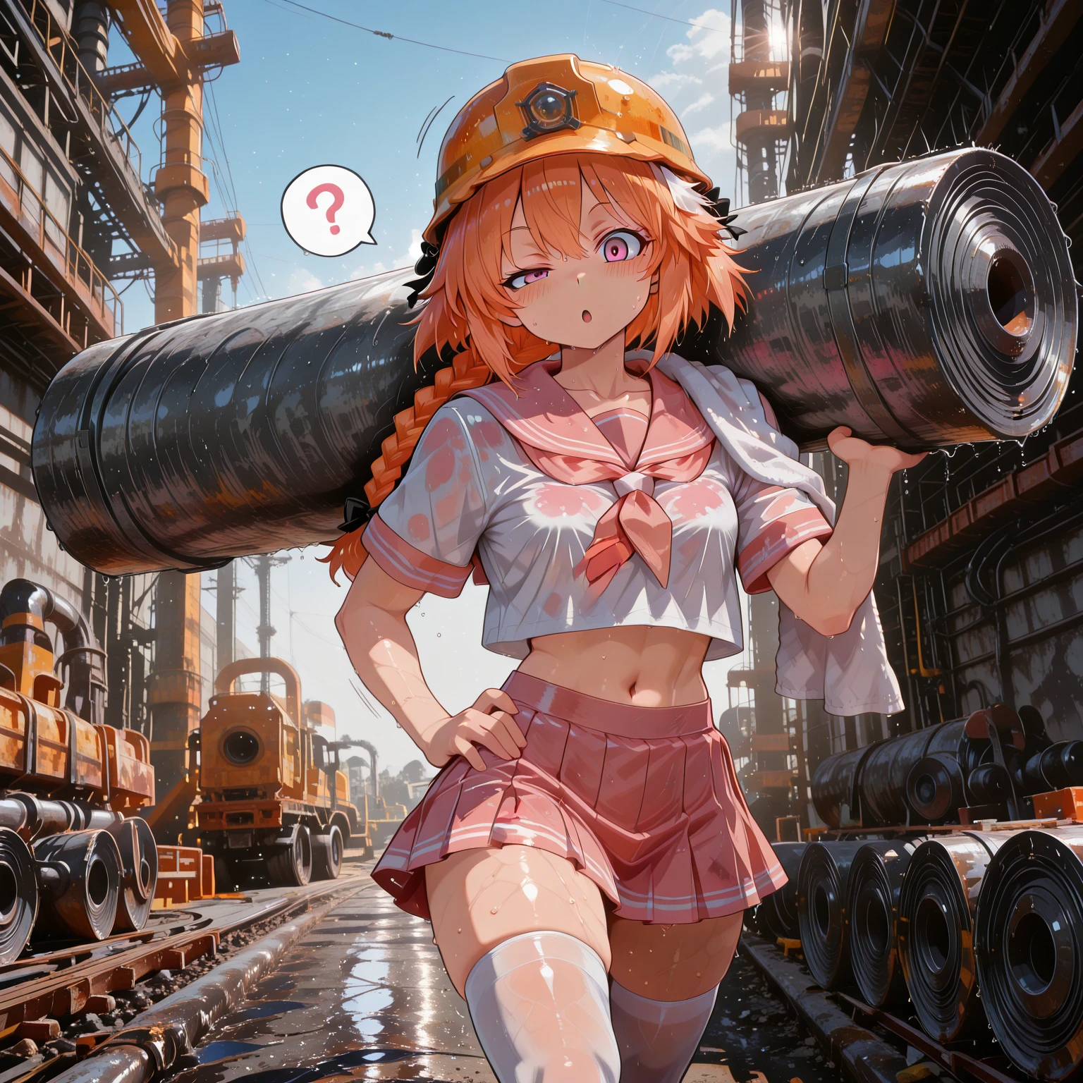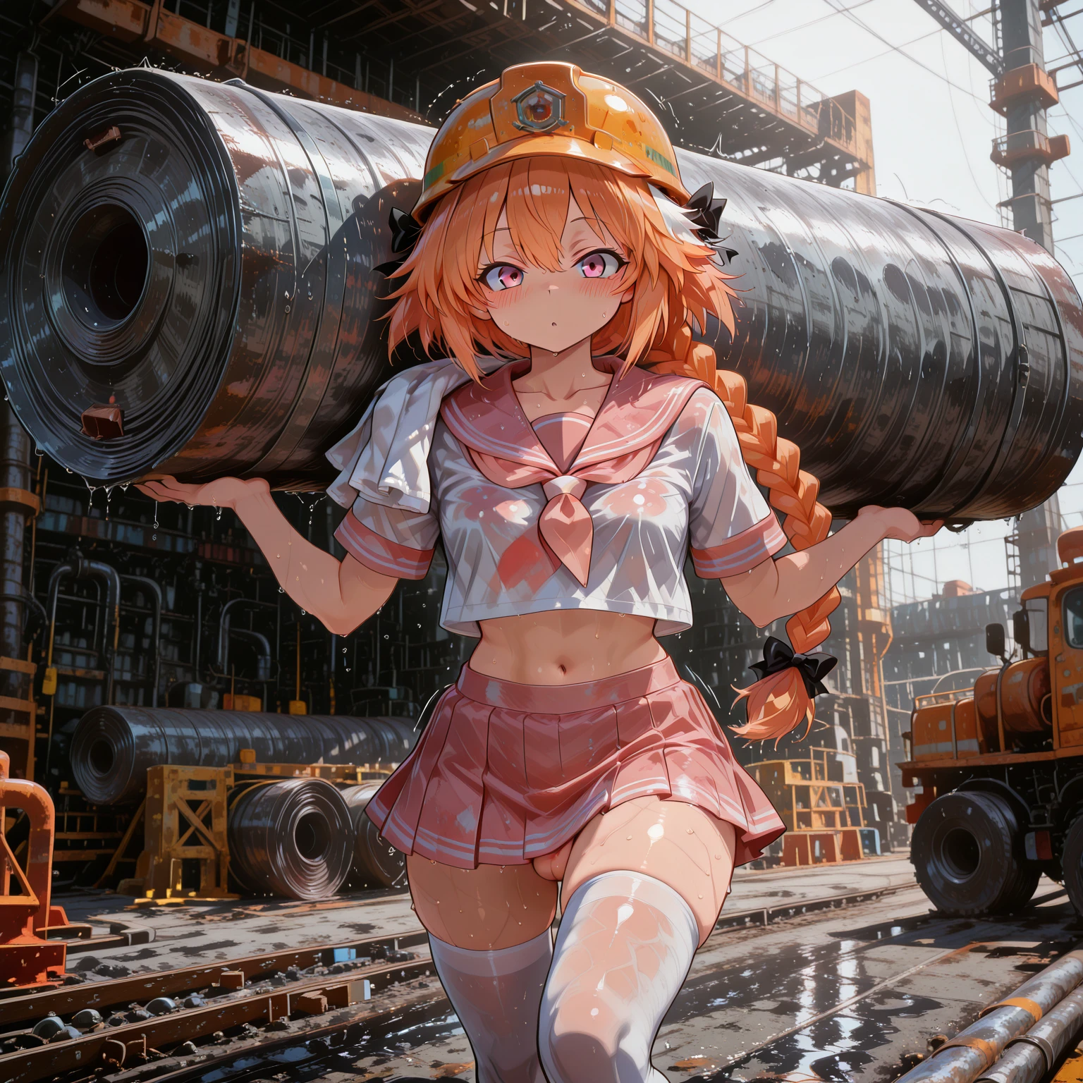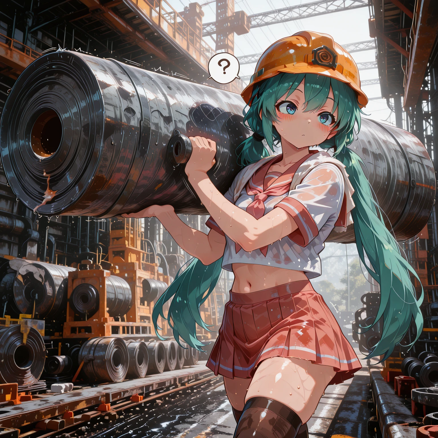 The weather is heating up, so your waifu has decided to go to a construction site to haul steel coils and save up the money to buy you a 5090 setup.