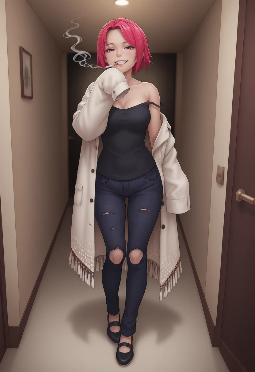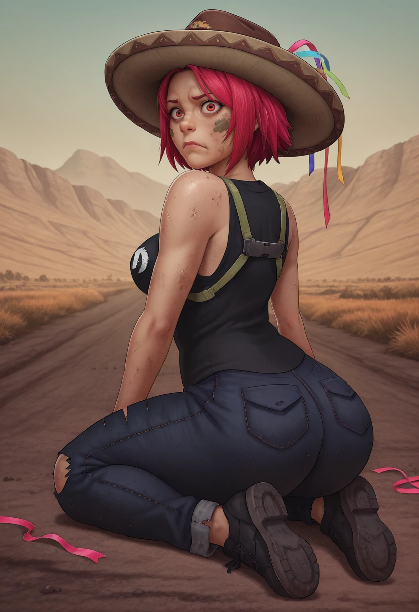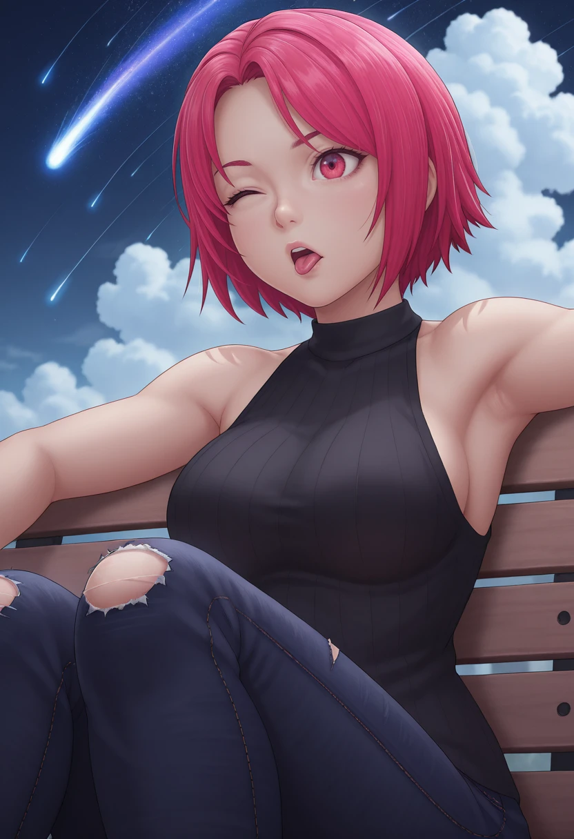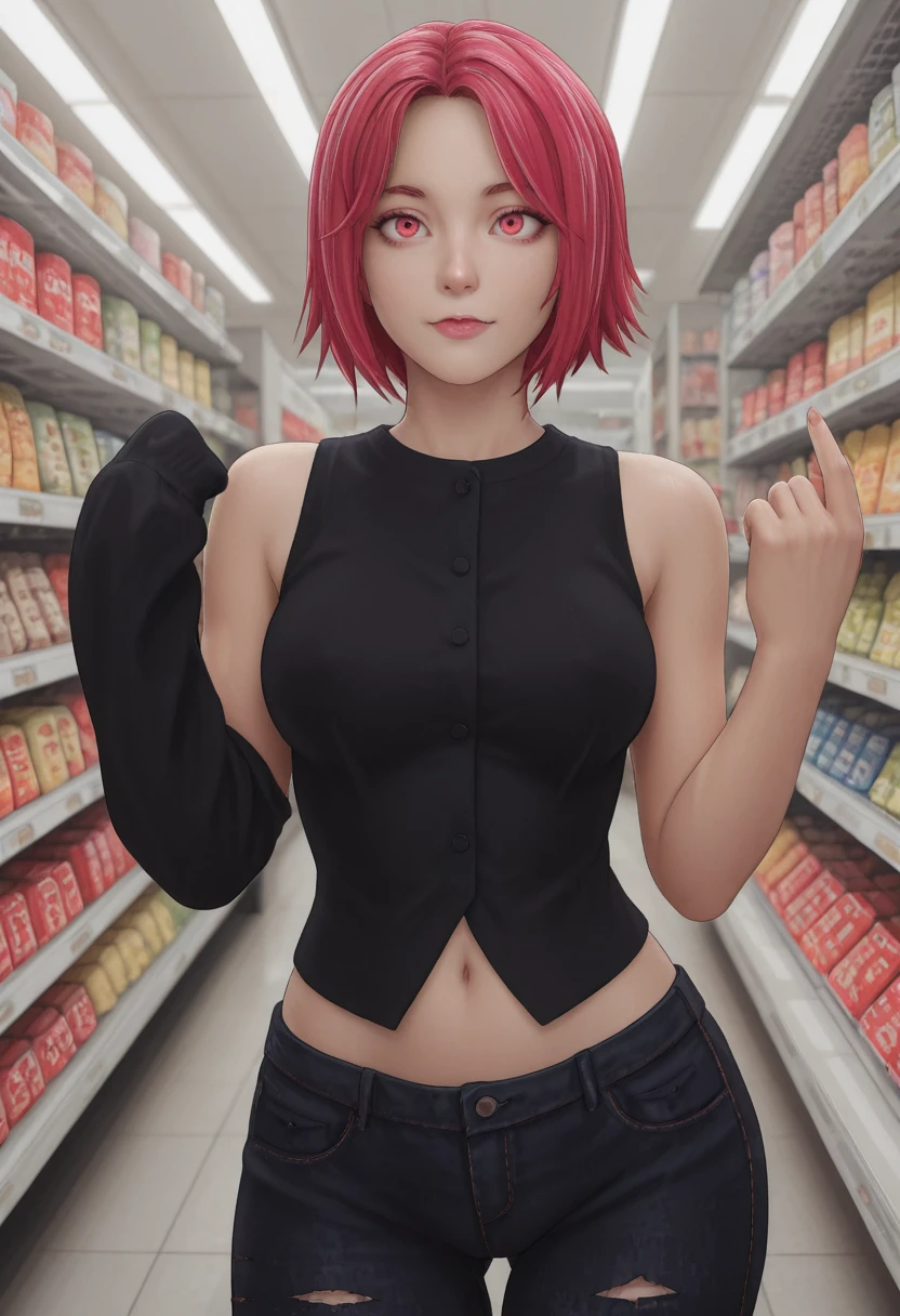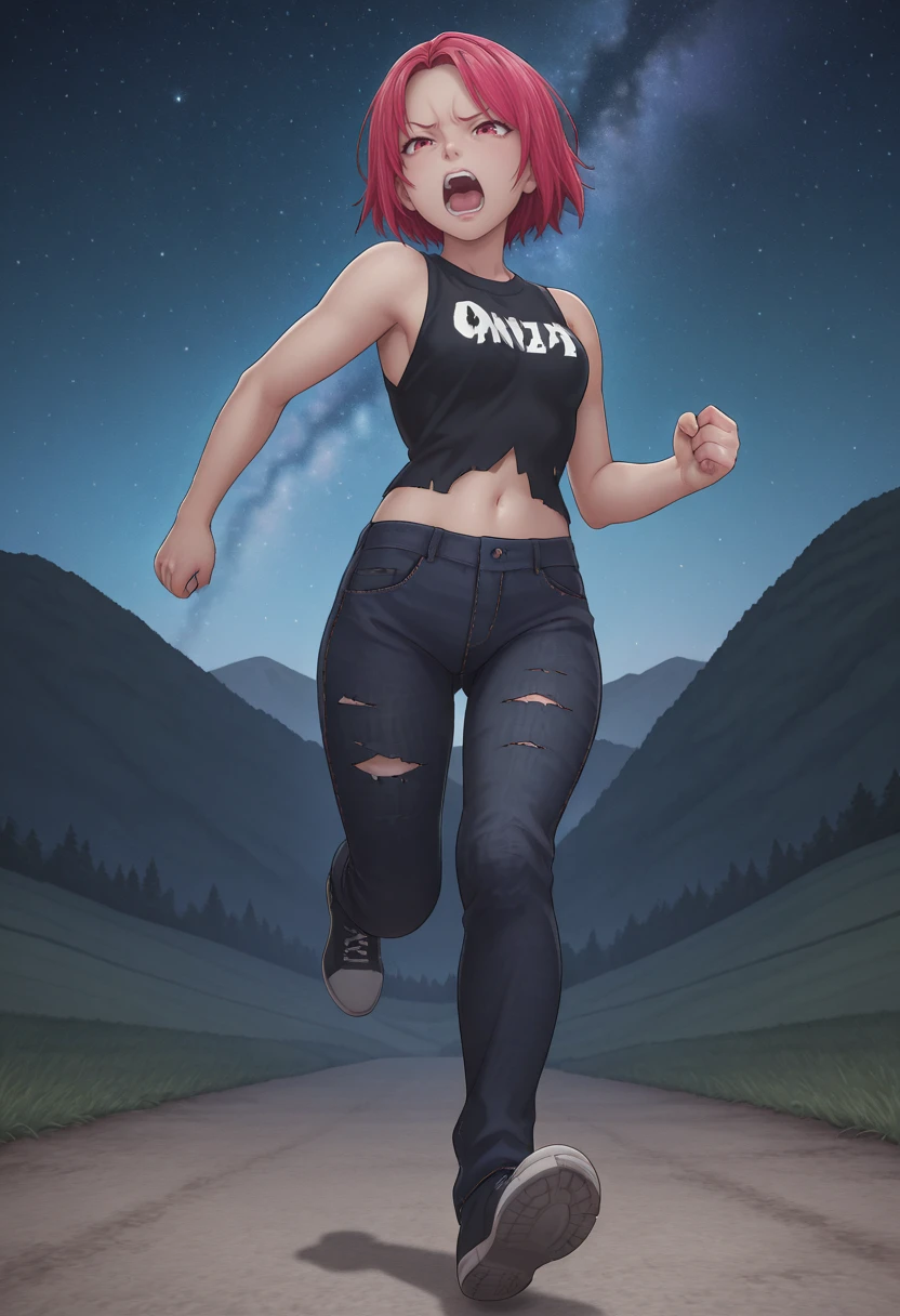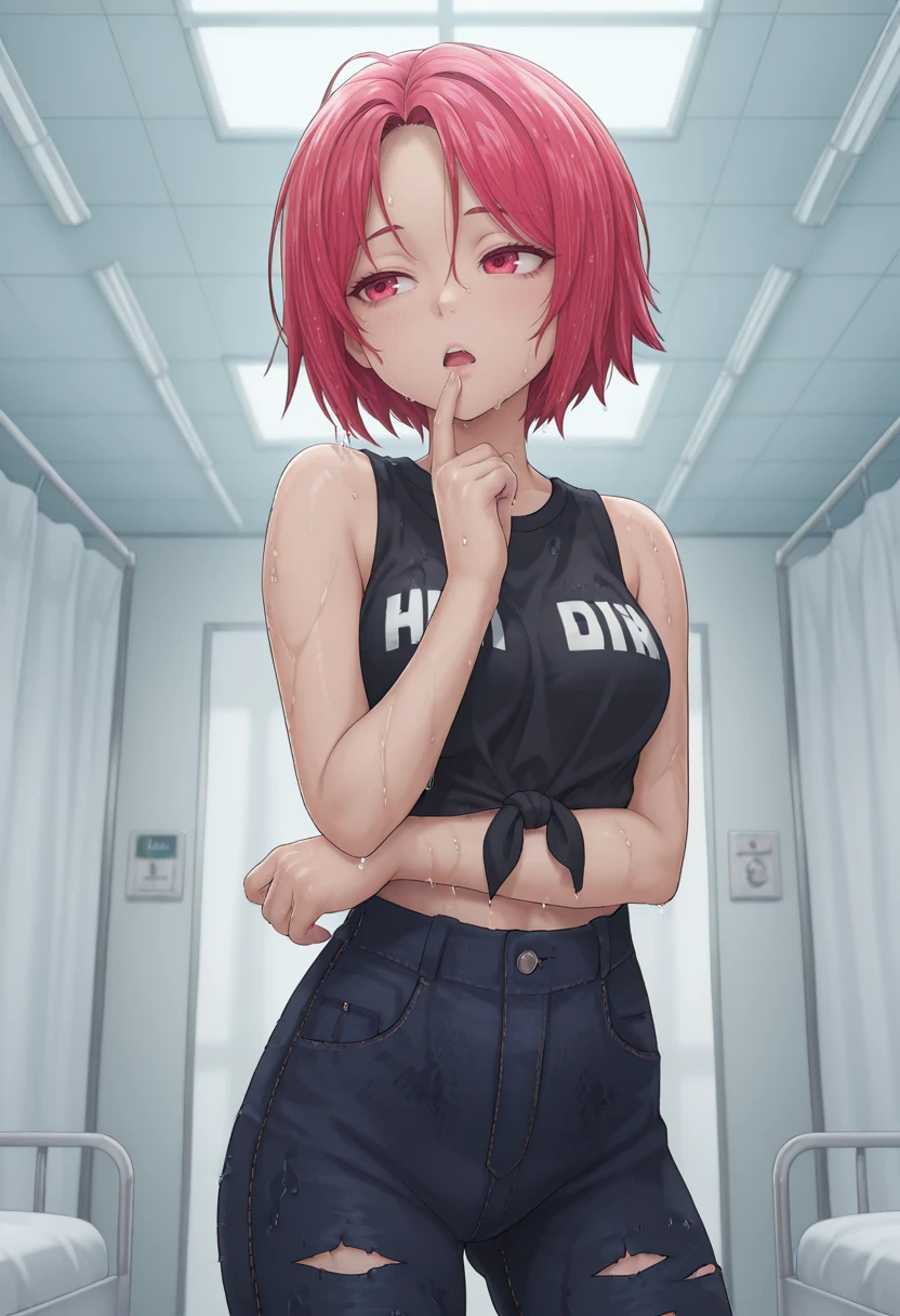 jeans, torn pants, black shirt, sleeveless