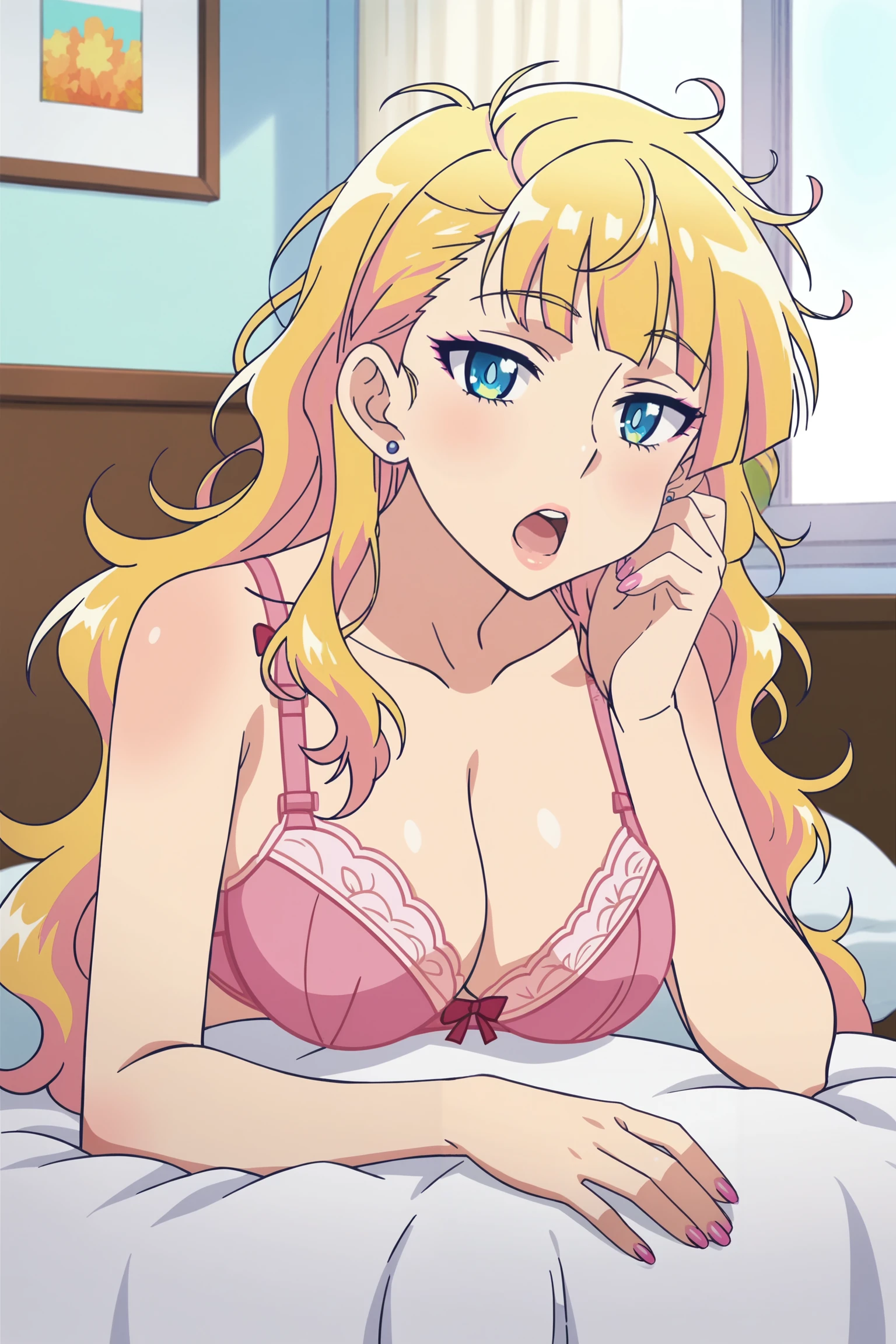 · Underwear only, pink panties, pink bra