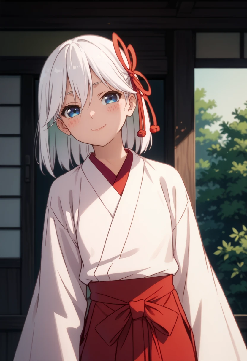 outfit: japanese clothes, miko, hakama skirt, red hakama, white kimono, wide sleeves