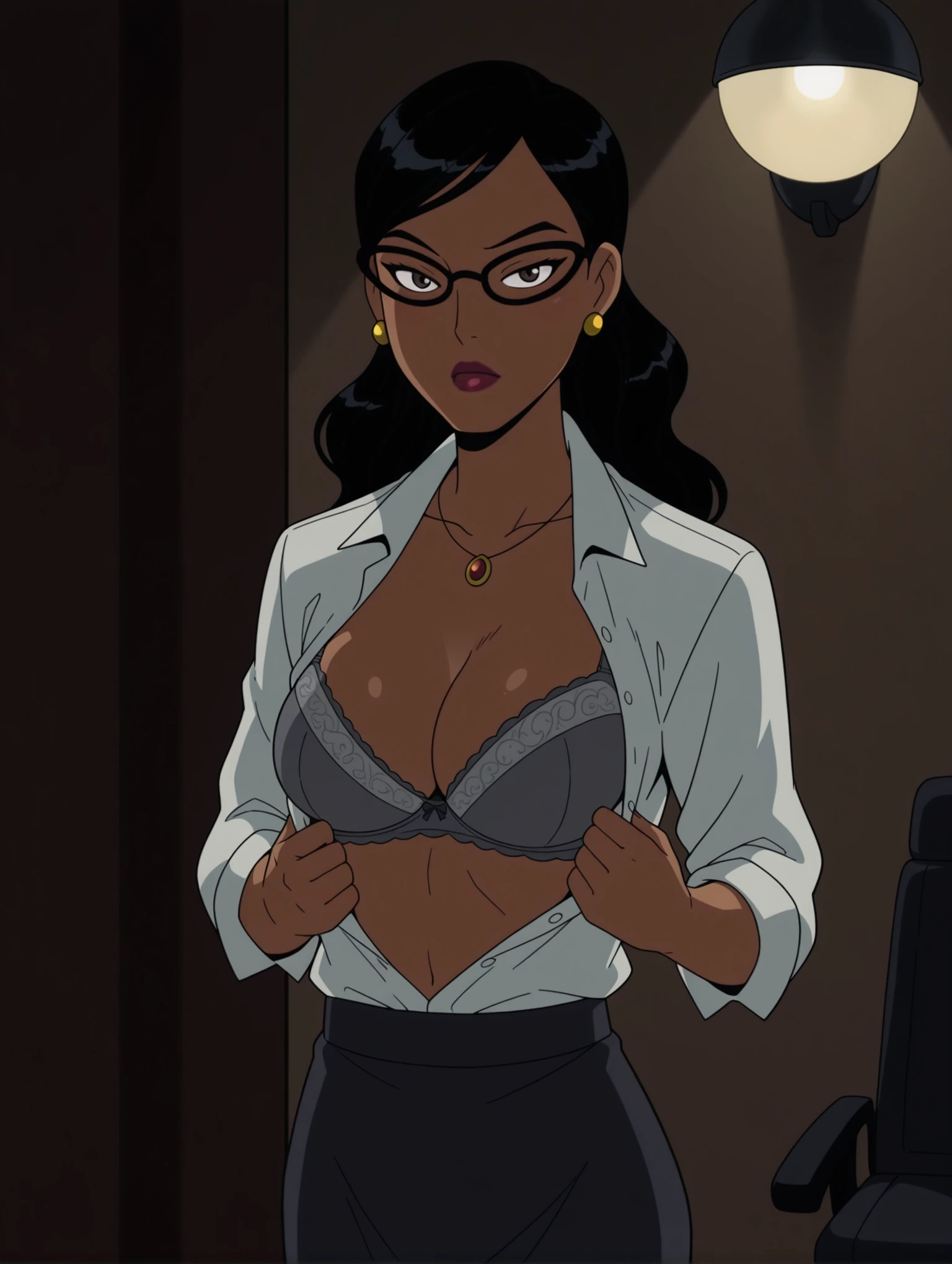 Ms. Li from Batman Under the Red Hood. Unfortunately all of the images used to train the lora are taken from the movie which the setting is at night so its hit or miss if you are going to get the desire lighting you want. Skin color kinda fluctuates. You can try the following, "dark-skin female, (Olive-brown skin:0.6)" - feel free to test away. I personally like the olive brown sometimes.