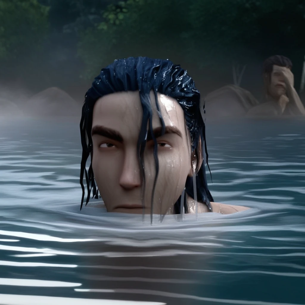 partially submerged, headshot