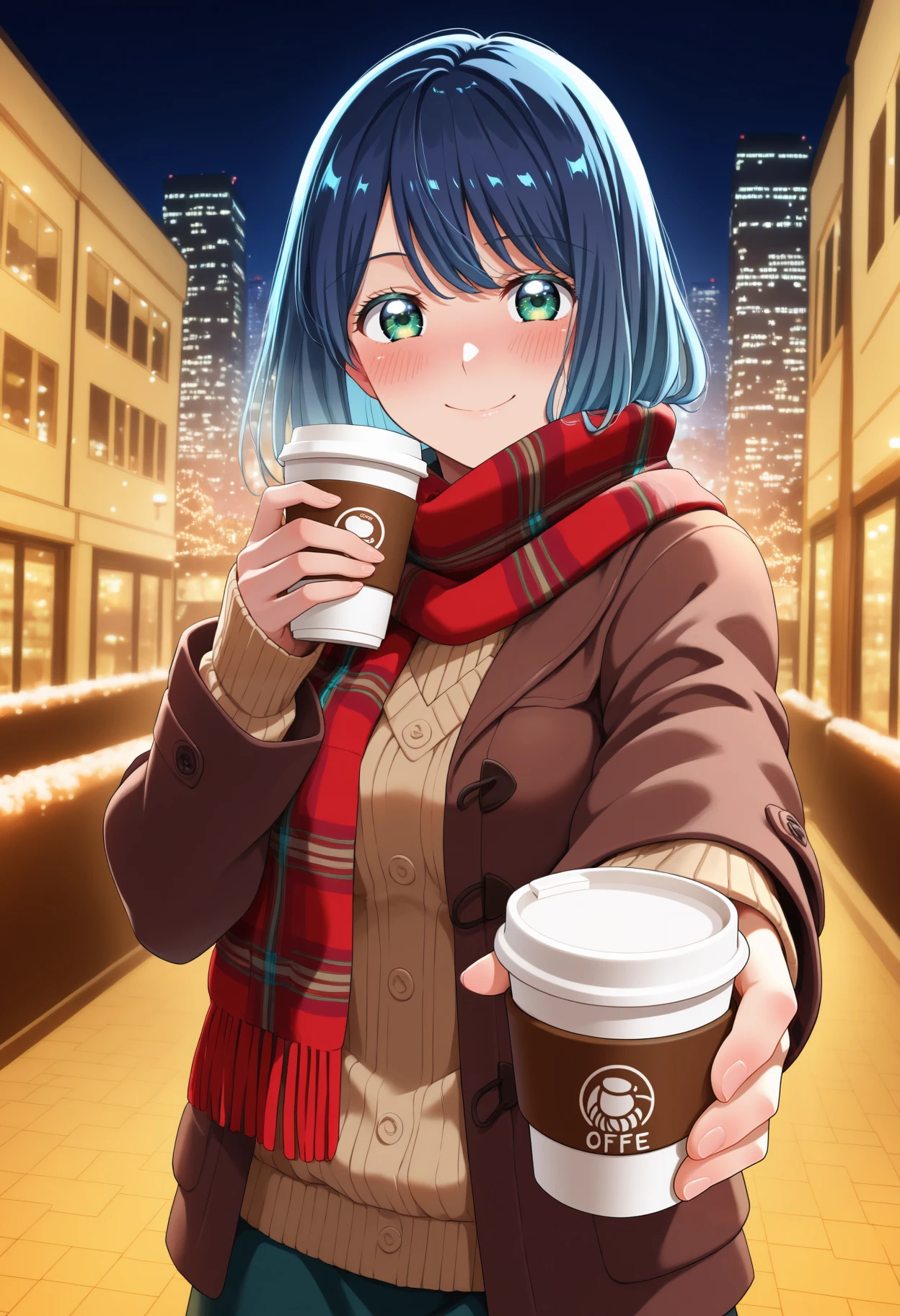 A concept of a character sharing/giving an object/food/drink to the viewer, they hold one for them, and one for the viewer