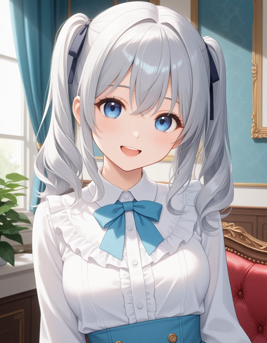 Upper body, 1girl, Solo, Long hair, :D, Looking at viewer,