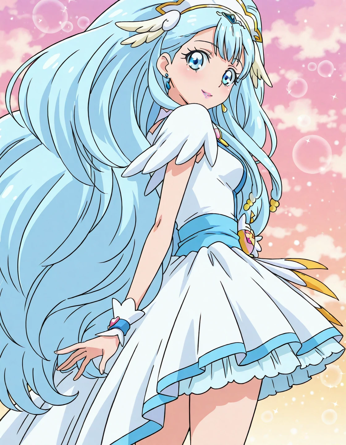 anime screencap,solo,1girl,cureange,angecostume, lipstick,smile, <lora:cureange_IL:0.8>,high definition,amazing quality,best quality,very aesthetic,masterpiece,absurdres,